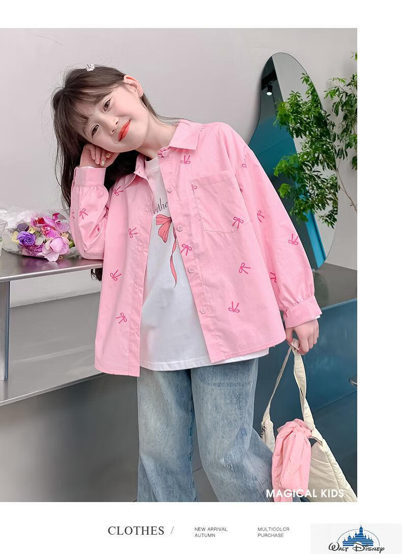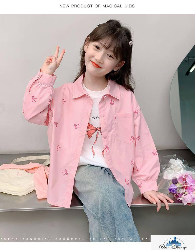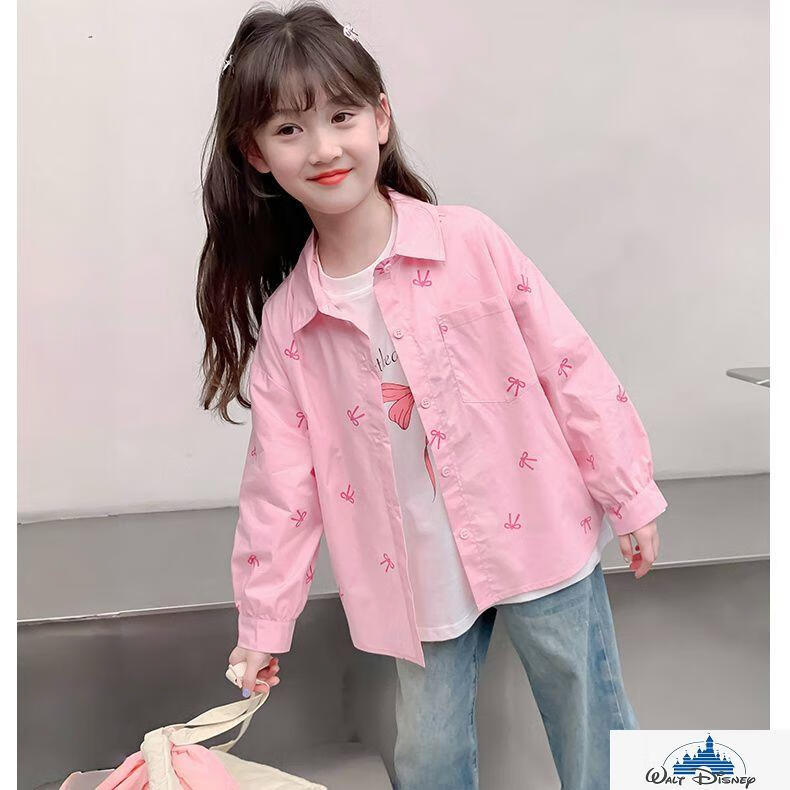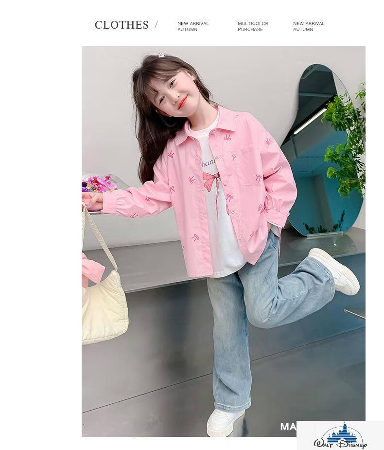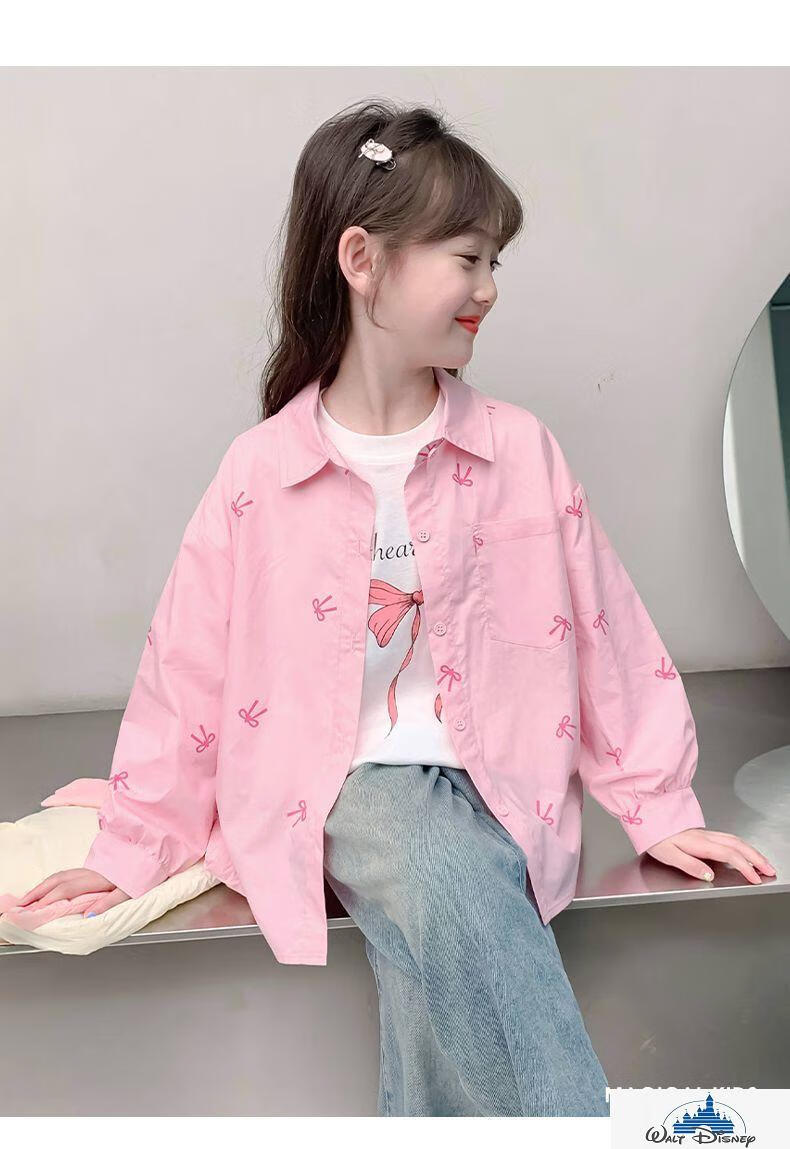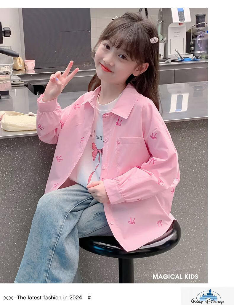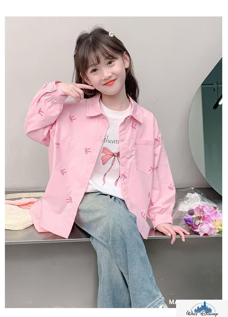 Disney Girls Autumn Jacket 2025 New Children's Clothes Little Girls Autumn Cotton Shirt Cardigan Children's Spring and Autumn Shirt Pink Printed Shirt 140