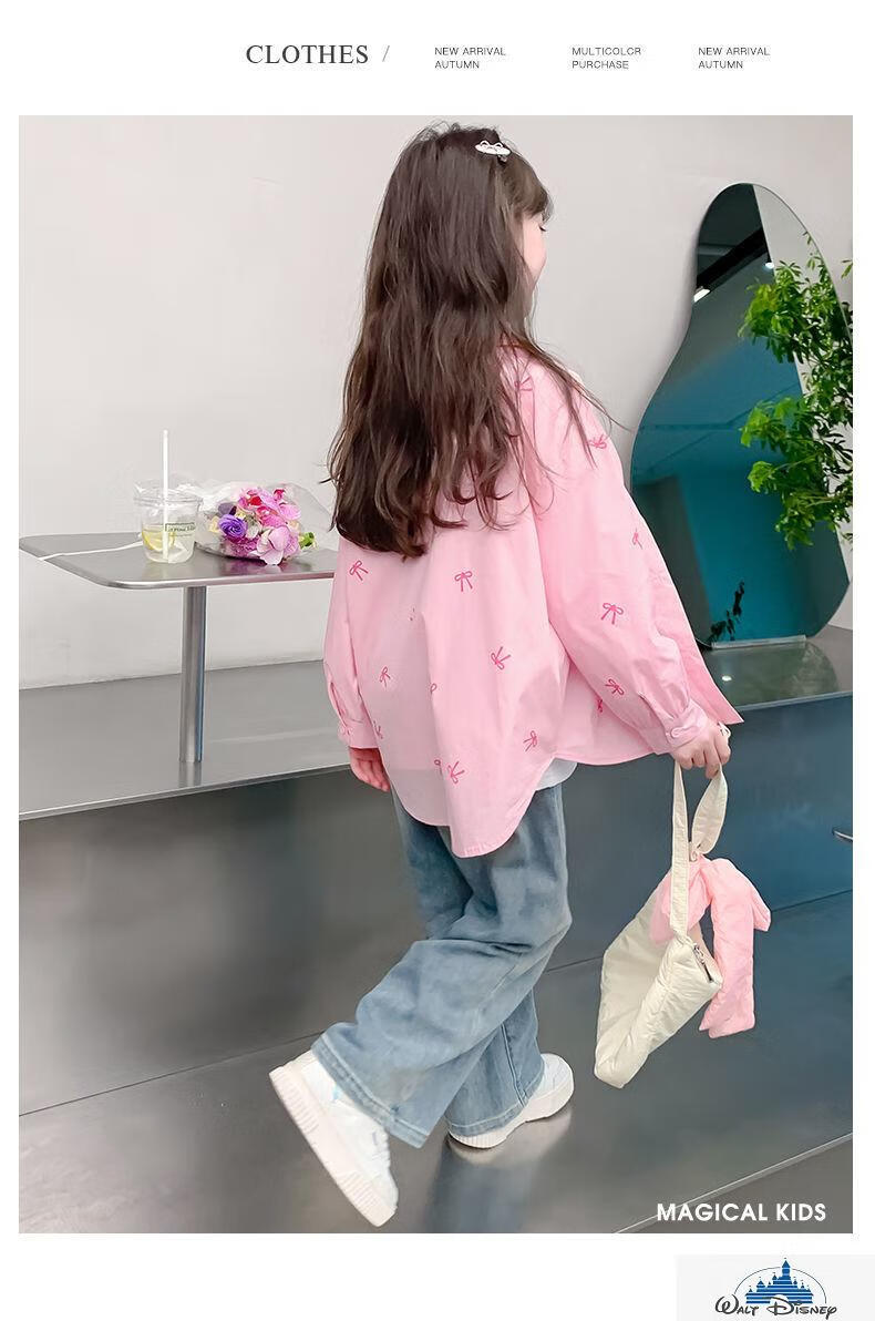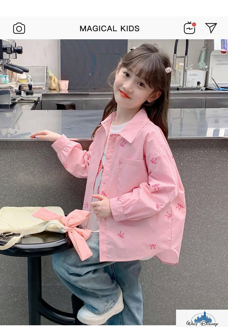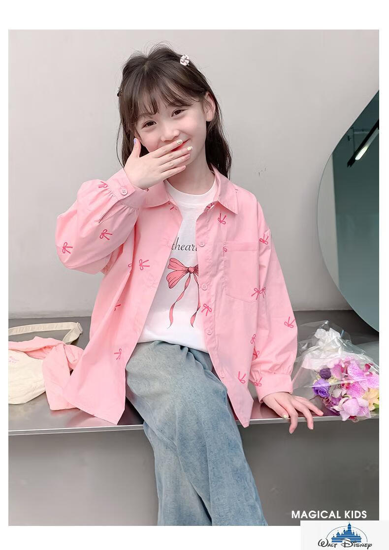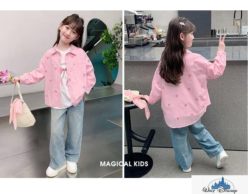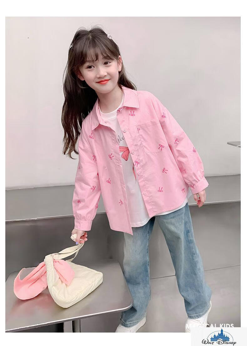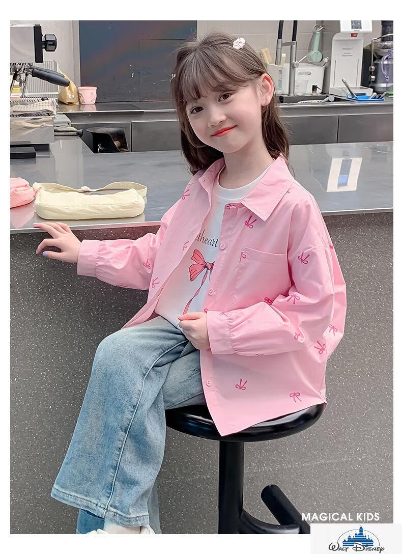 Disney Girls Autumn Jacket 2025 New Children's Clothes Little Girls Autumn Cotton Shirt Cardigan Children's Spring and Autumn Shirt Pink Printed Shirt 140