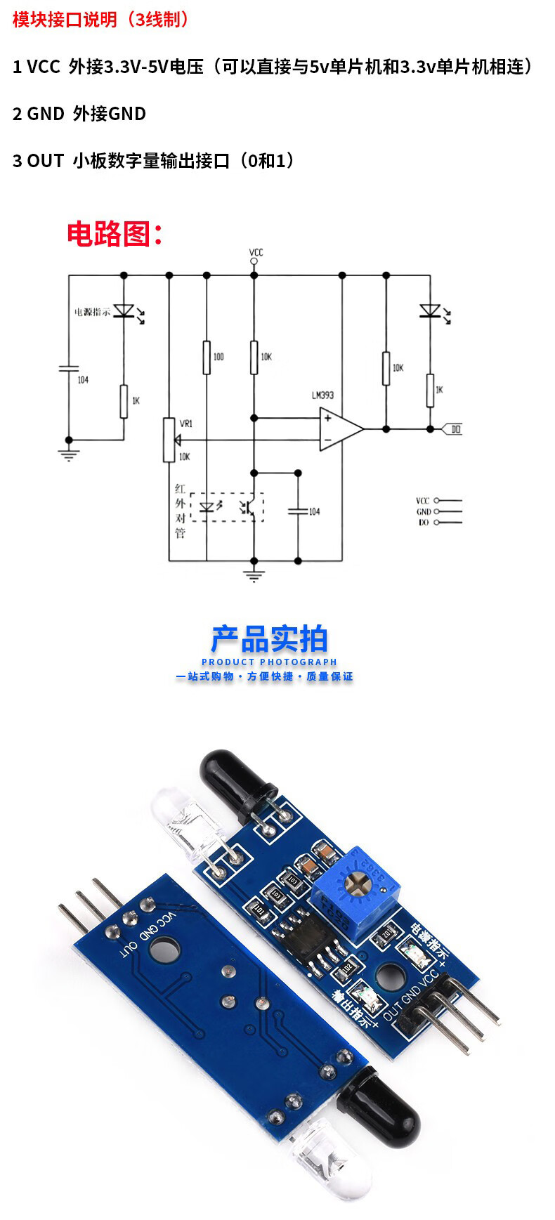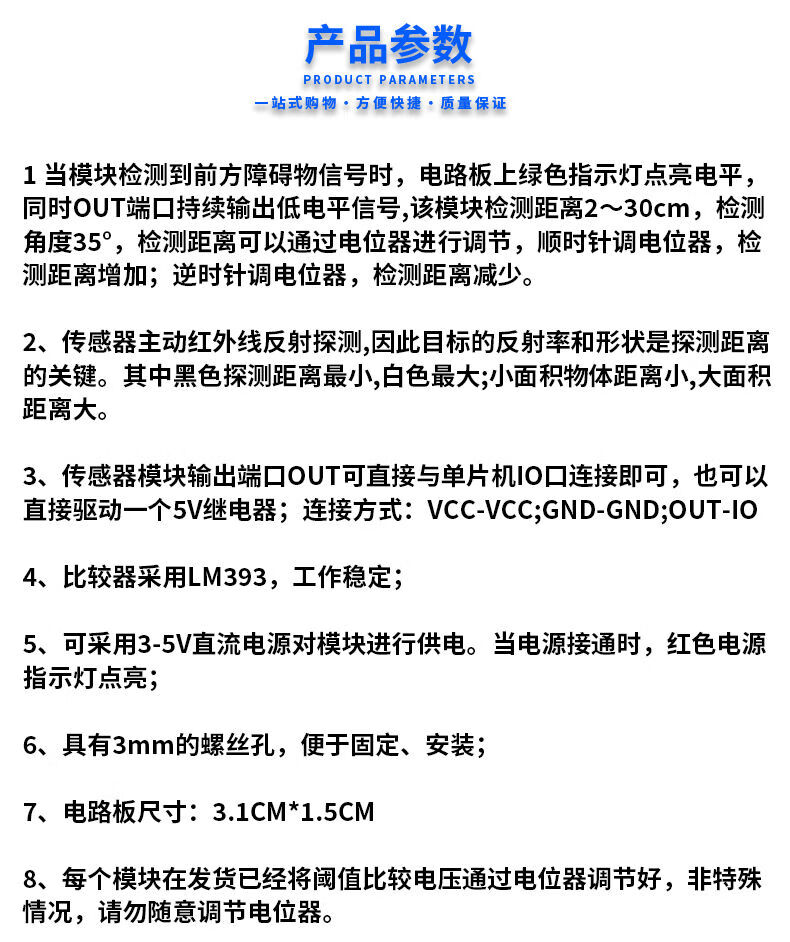 Smart car infrared obstacle avoidance module, barrier sensor, adjustable distance, tube reflection, tracking module TCRT5000