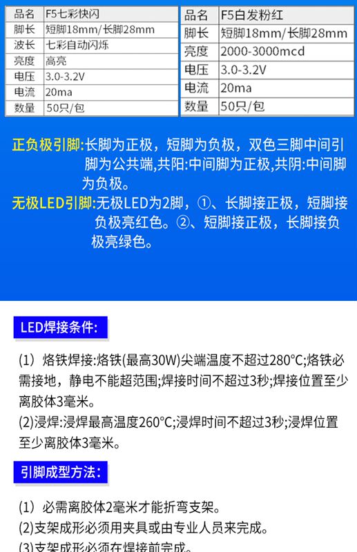 DZQJ 3mm 5mm LED bulb light-emitting diode F3 F5 red green orange yellow blue white purple in-line lamp beads F3 foggy red (50 pieces)