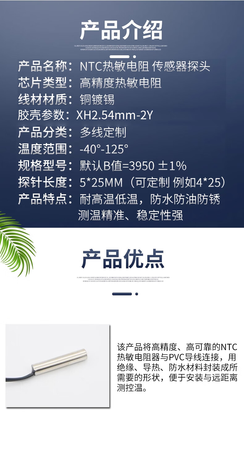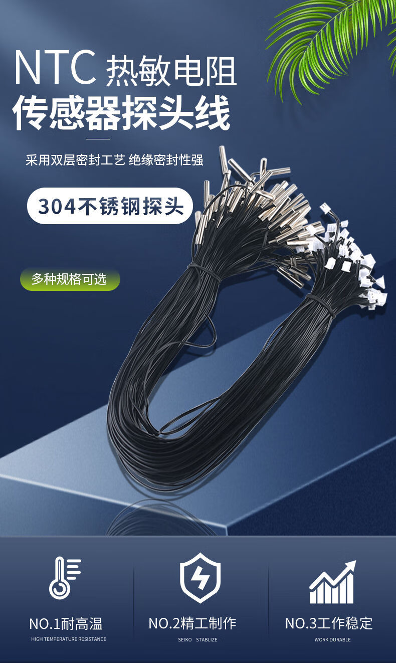 DZQJ NTC thermistor waterproof type 3470 air conditioning refrigerator temperature sensor 5K10K50K100 10K 3950 (1 meter) NTC thermistor temperature sensor