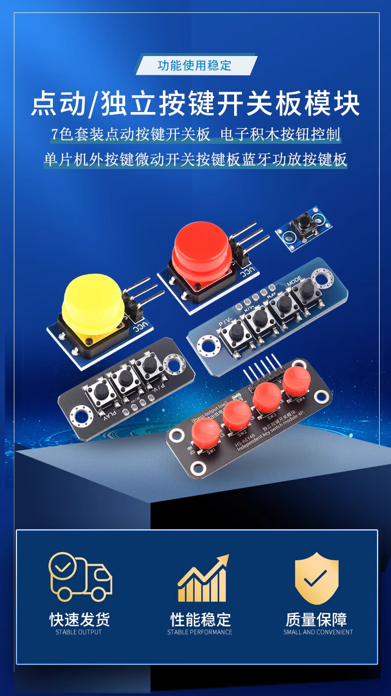DZQJ large button module light touch with cap 5-color set inching button switch board electronic building block button control small button (red cap) electric button switch key module