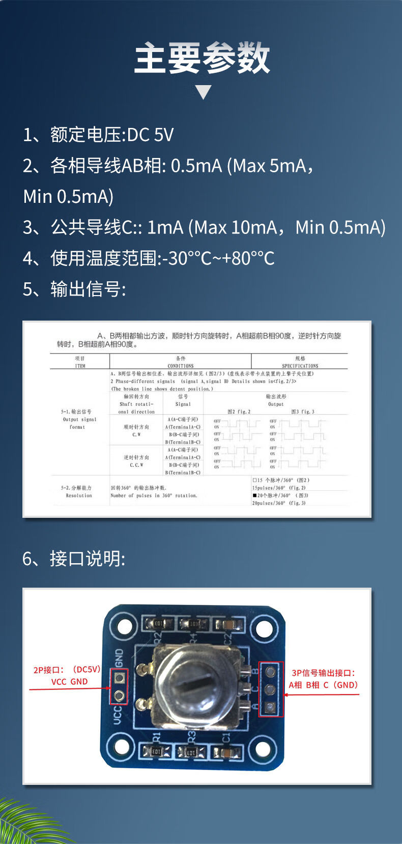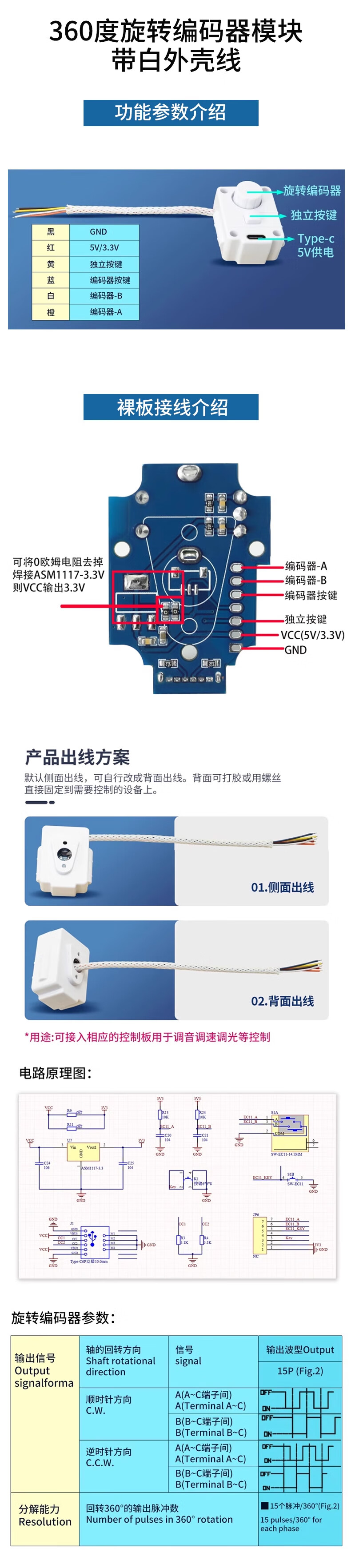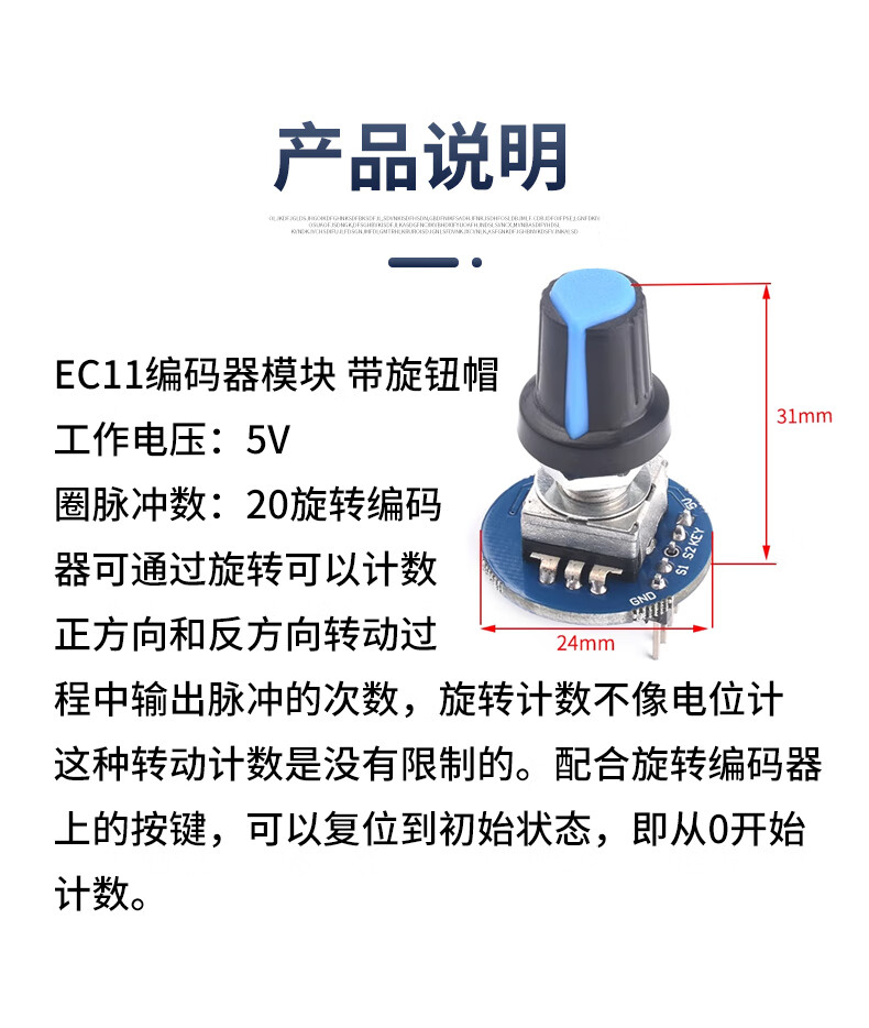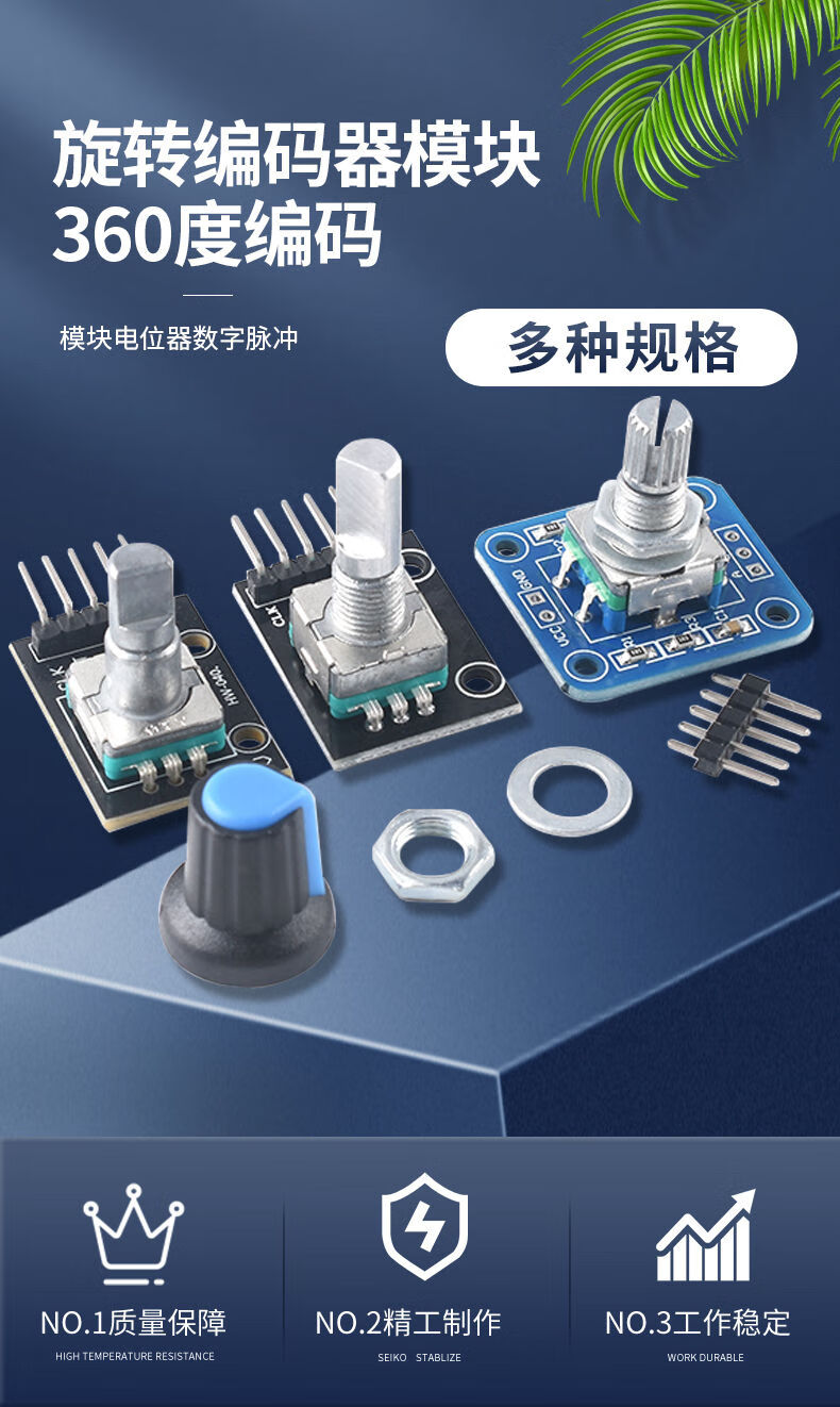 Rotary encoder module with screen 360-degree encoding FOR module potentiometer digital pulse output long/short handle EC11 encoder module with knob cap