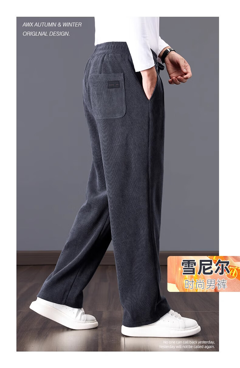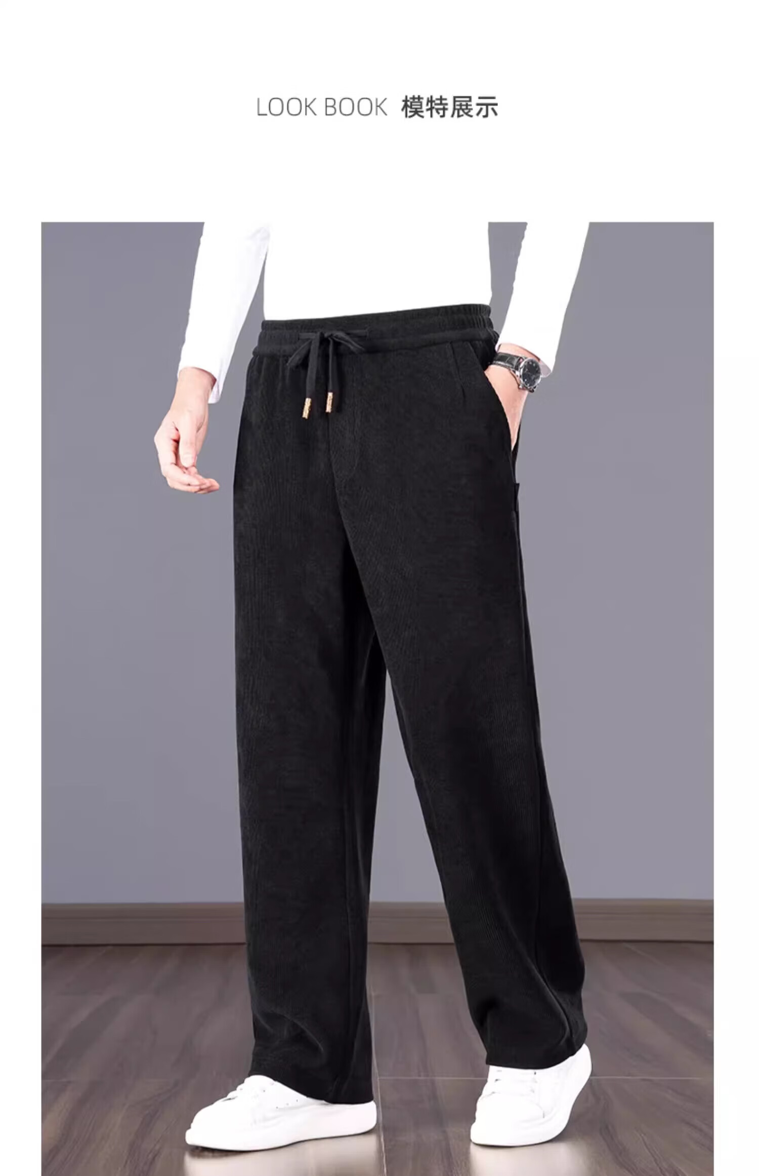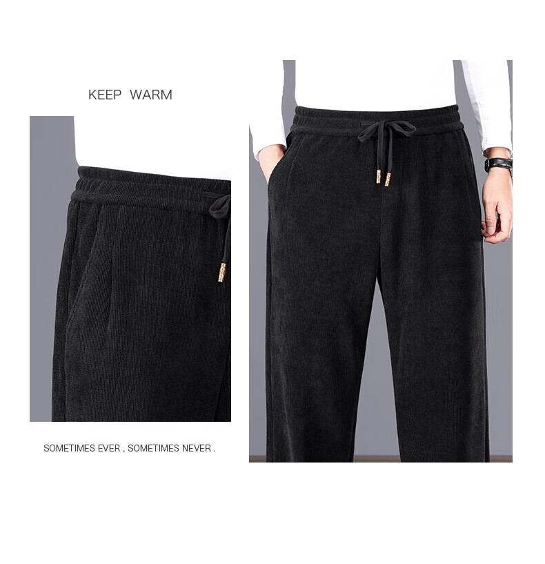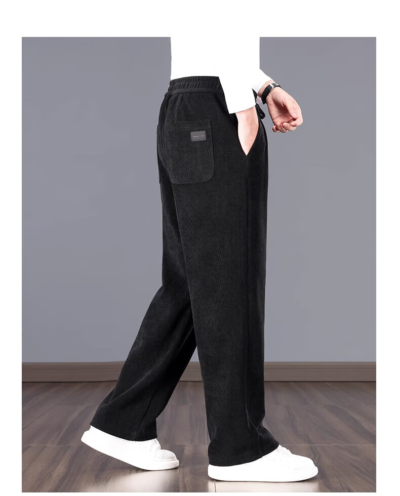 ROMON Drape Chenille Casual Pants Men's Spring and Autumn Thick Loose Wide-Leg Sports Pants Winter Corduroy Pants Men's 875 Spring and Autumn Black 2XL