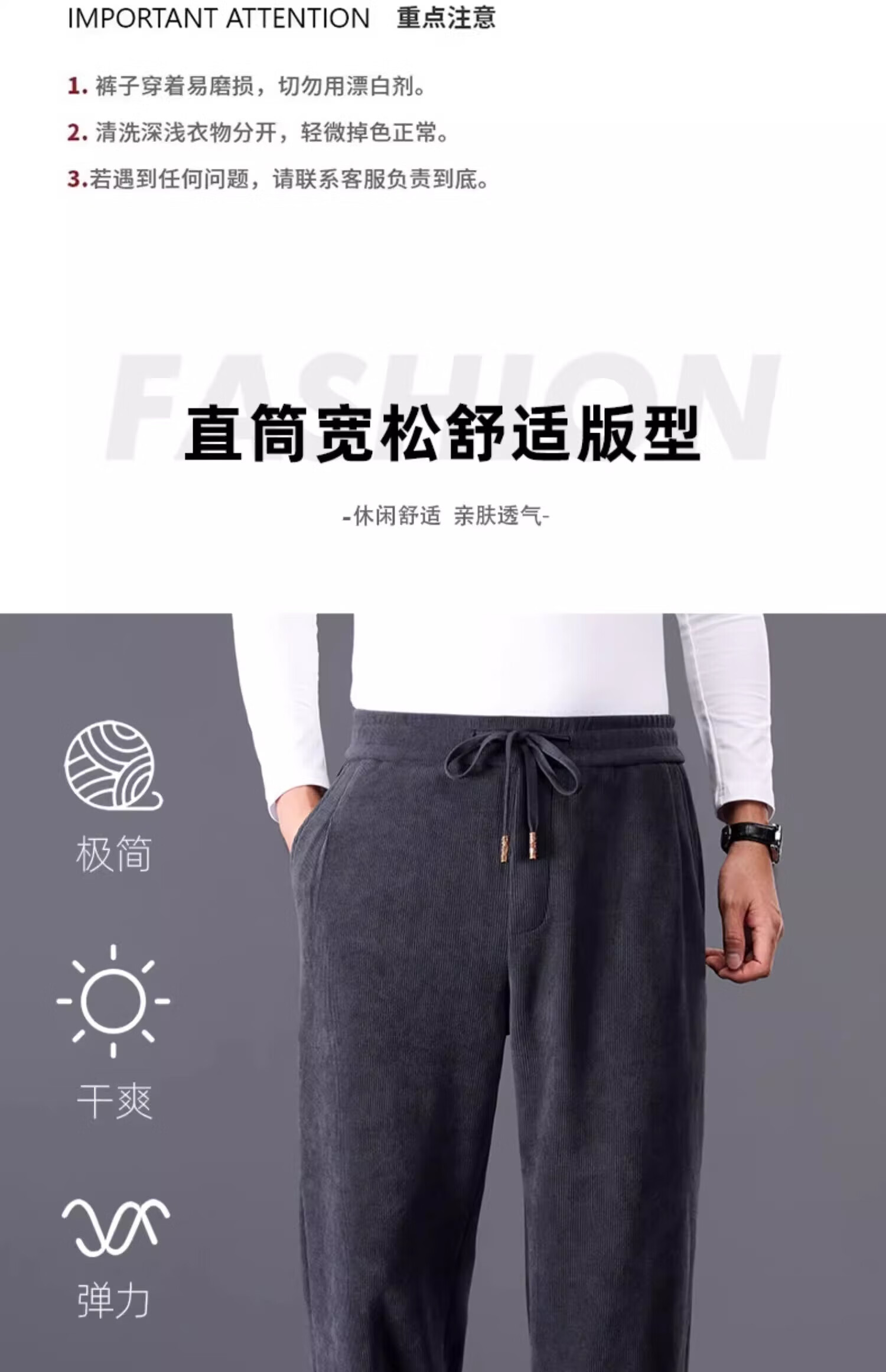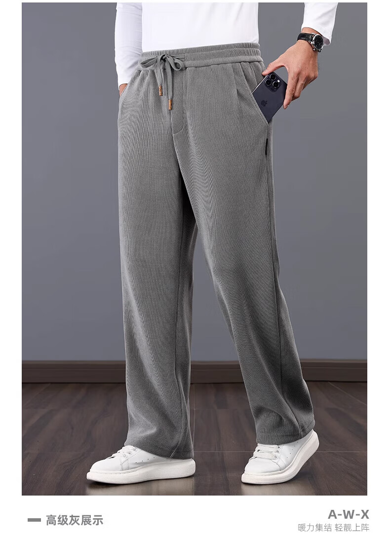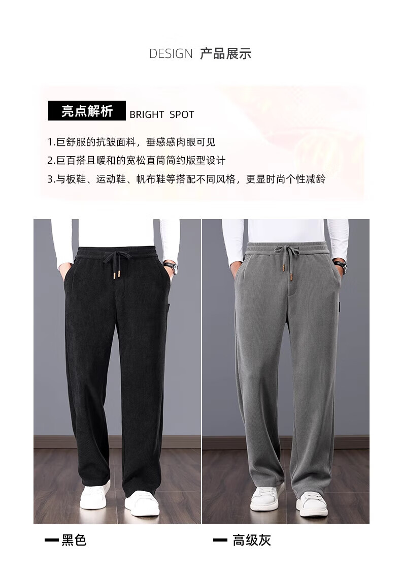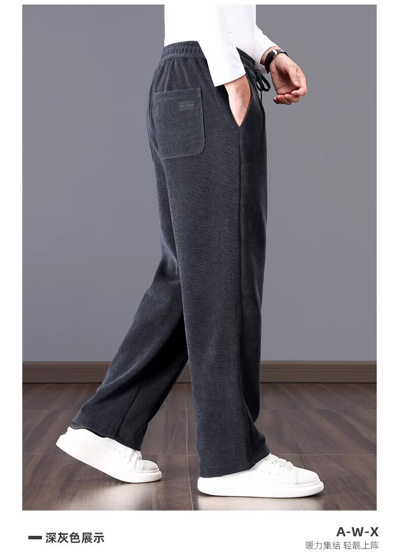 ROMON Drape Chenille Casual Pants Men's Spring and Autumn Thick Loose Wide-Leg Sports Pants Winter Corduroy Pants Men's 875 Spring and Autumn Black 2XL