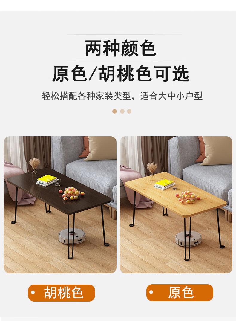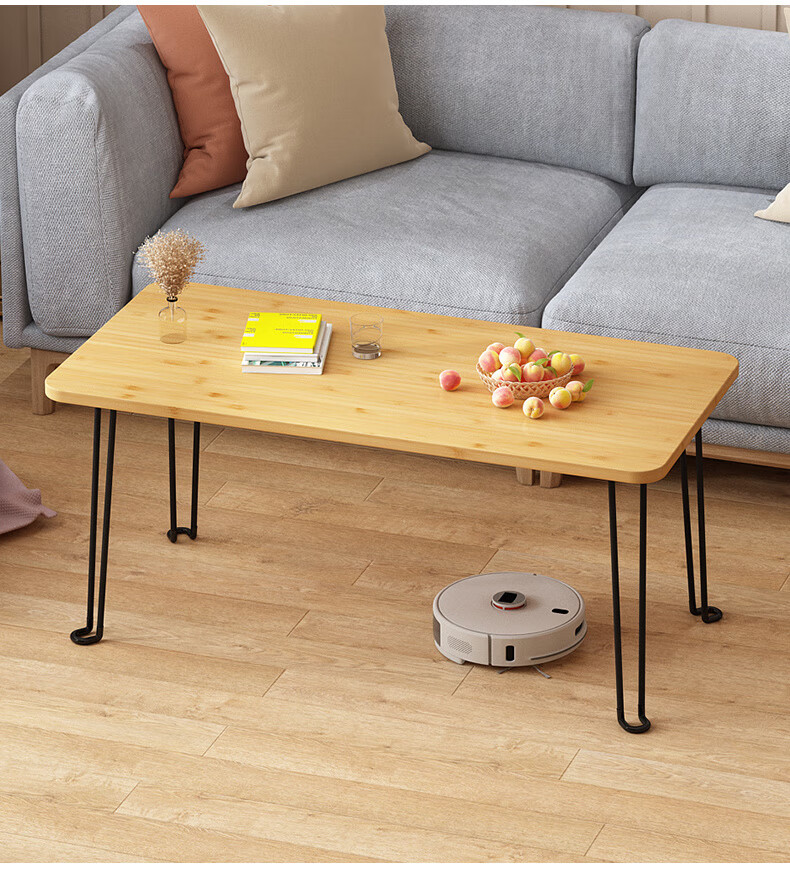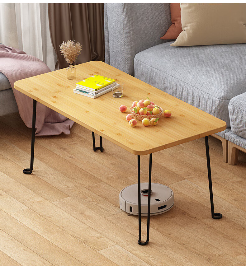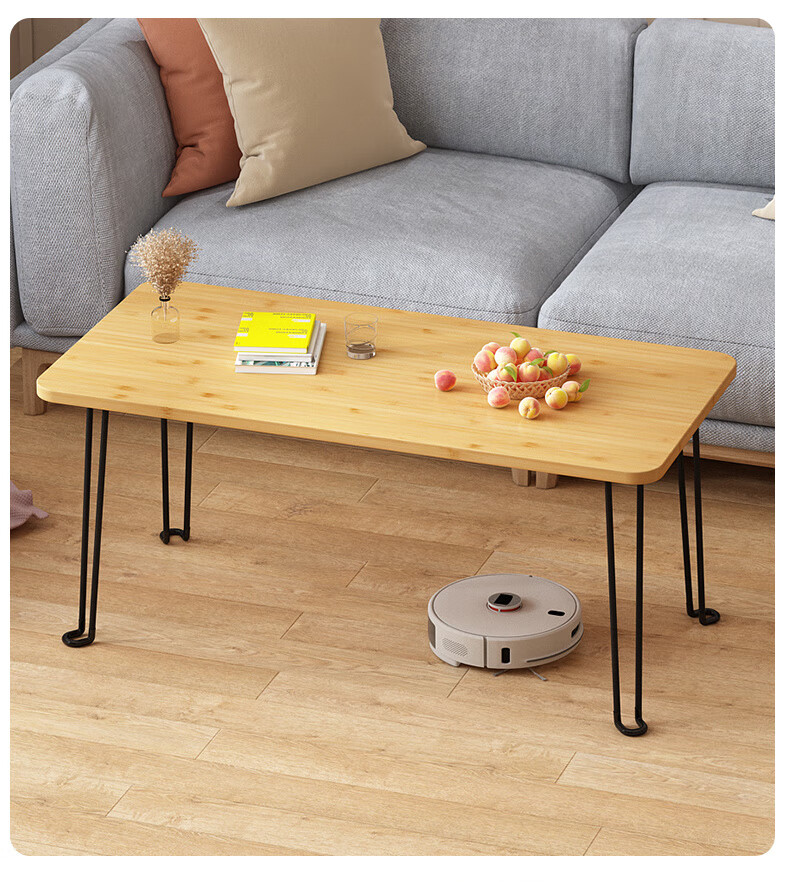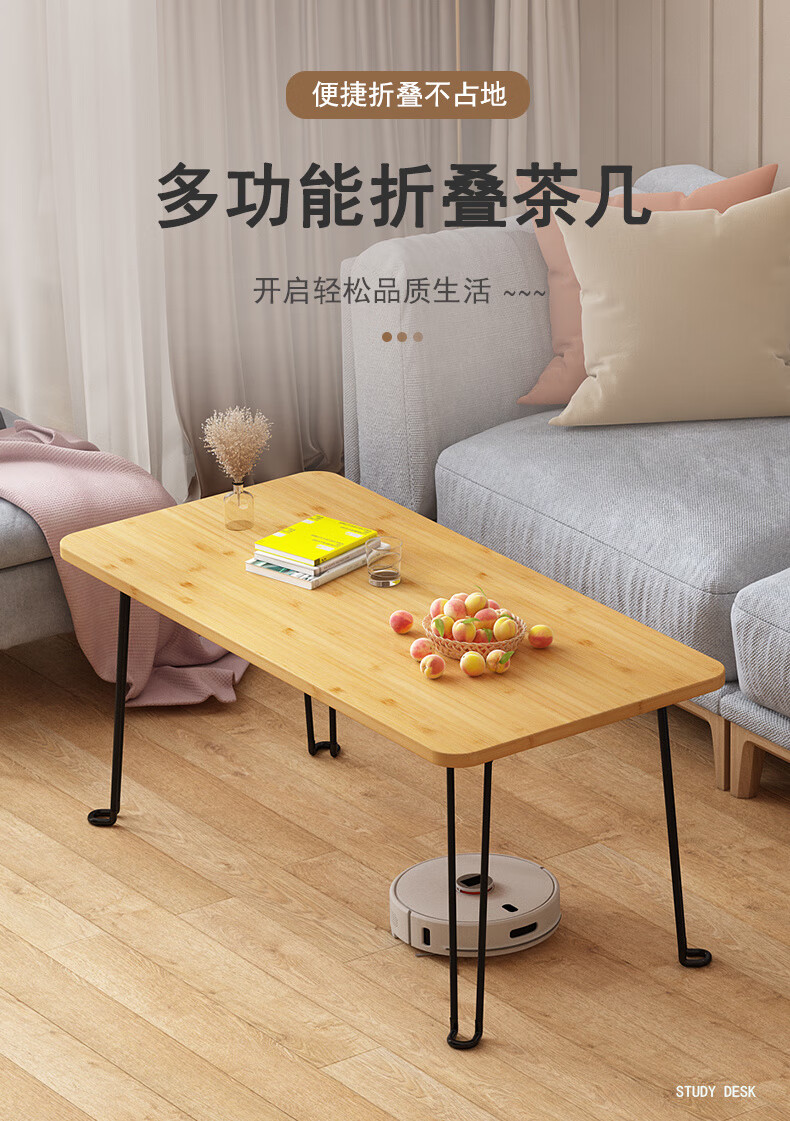 Pumeisen Folding Tea Table for Living Room Small Table Kang Table Simple Small Apartment Bay Window Tea Table Bedroom Learning Computer Low Table Log Color Folding Model 60*40*33