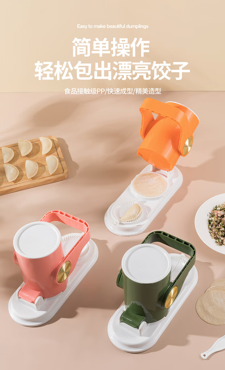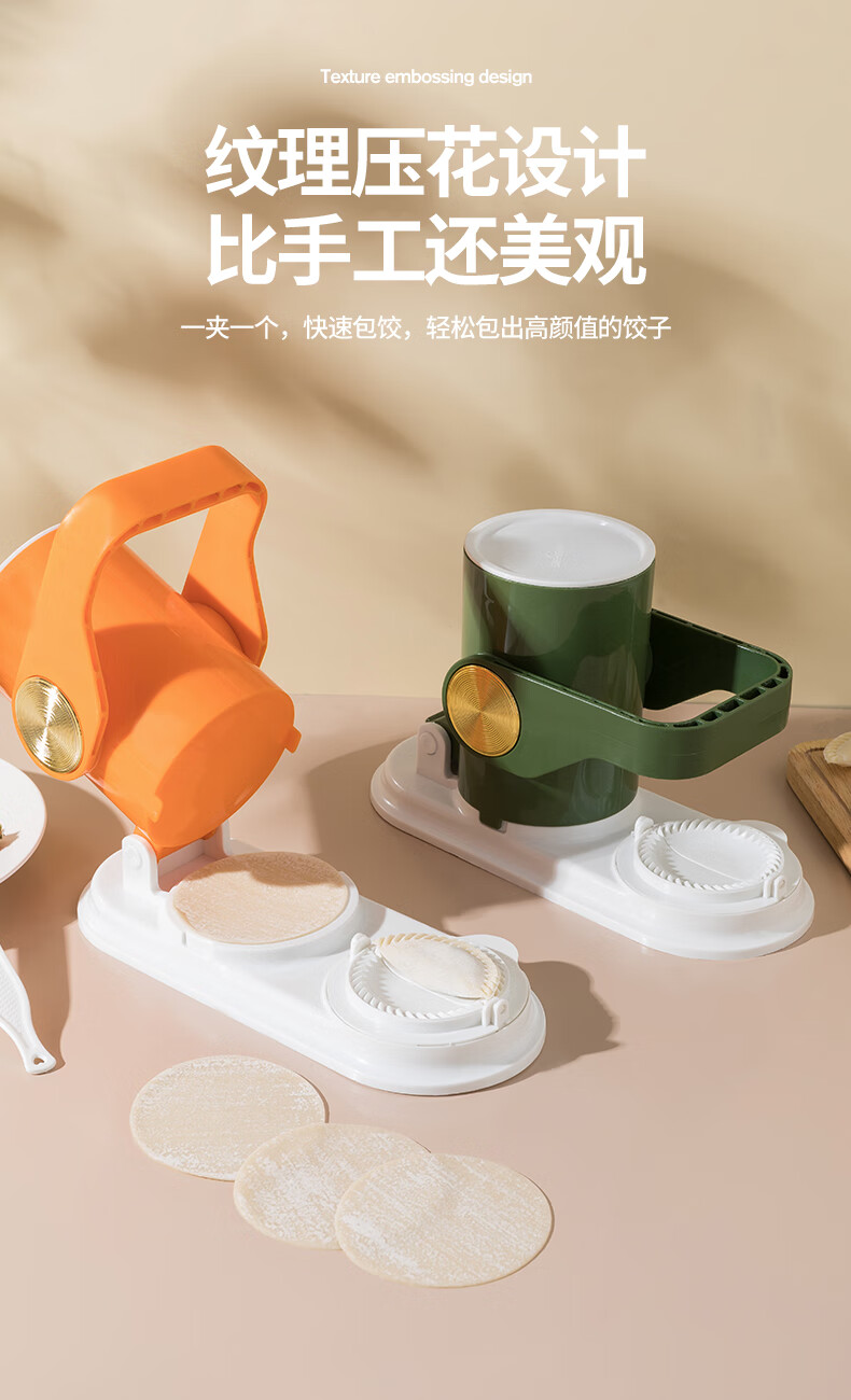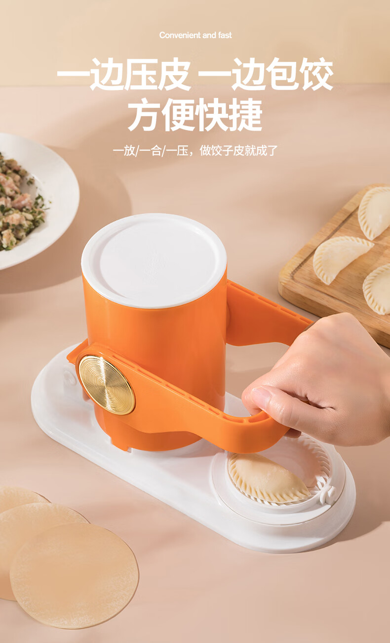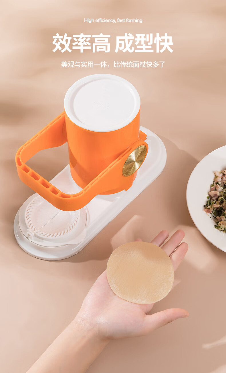 Changyin's new dumpling-making artifact is a small household machine that can quickly press dumpling skin molds and is used to make dough rolls. Orange dumpling-making artifact + skin press