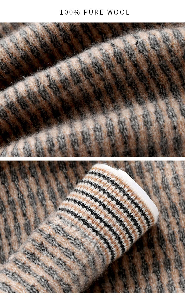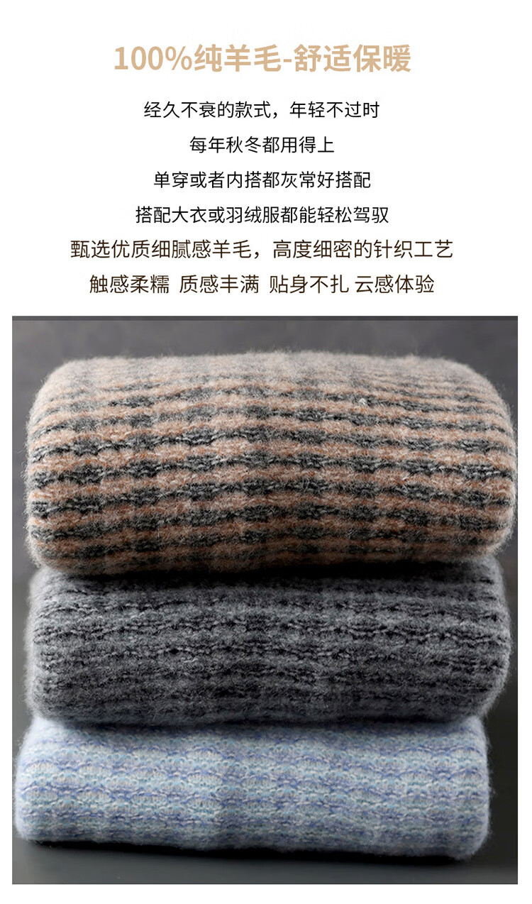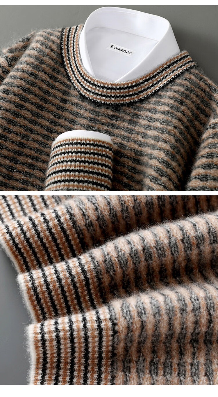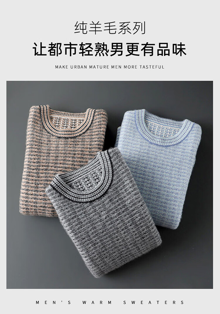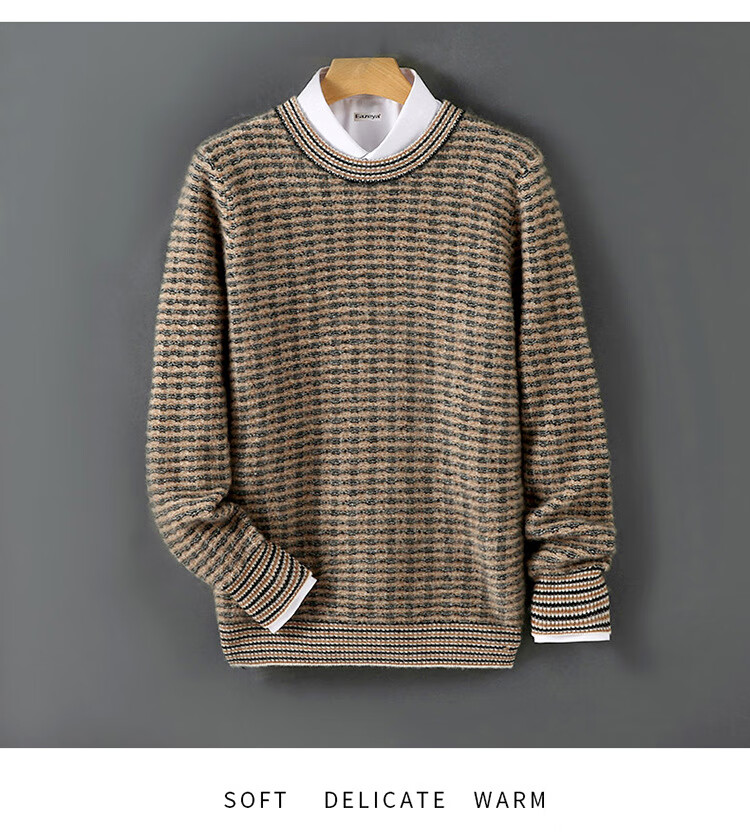 ROMON 100 pure wool sweater men's round neck color-blocked jacquard thickened sweater autumn and winter business casual knitted bottoming top brown XL