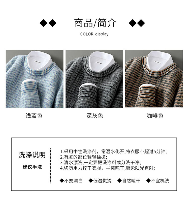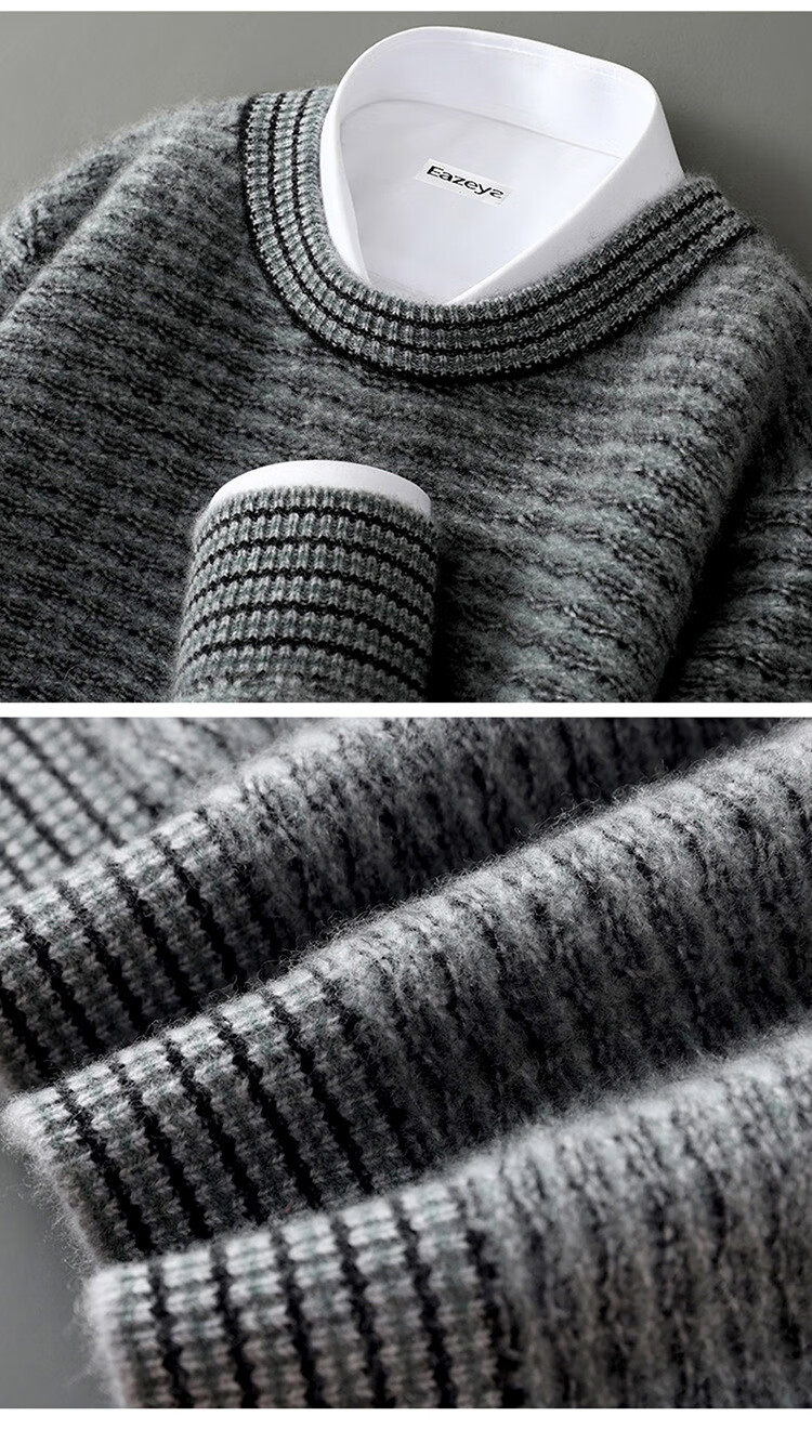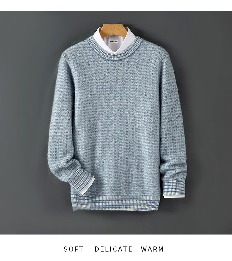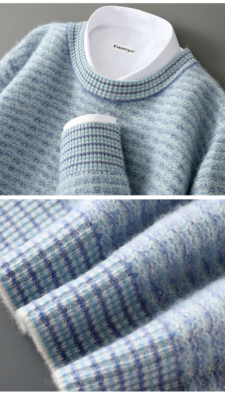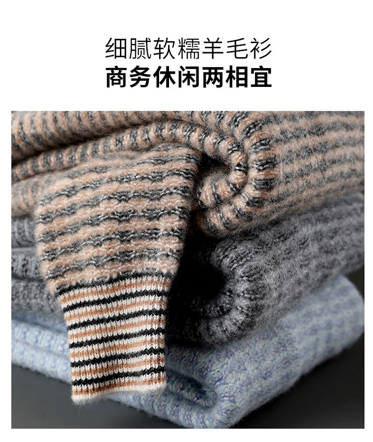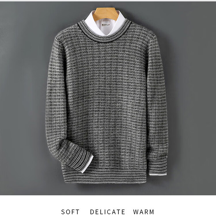 ROMON 100 pure wool sweater men's round neck color-blocked jacquard thickened sweater autumn and winter business casual knitted bottoming top brown XL