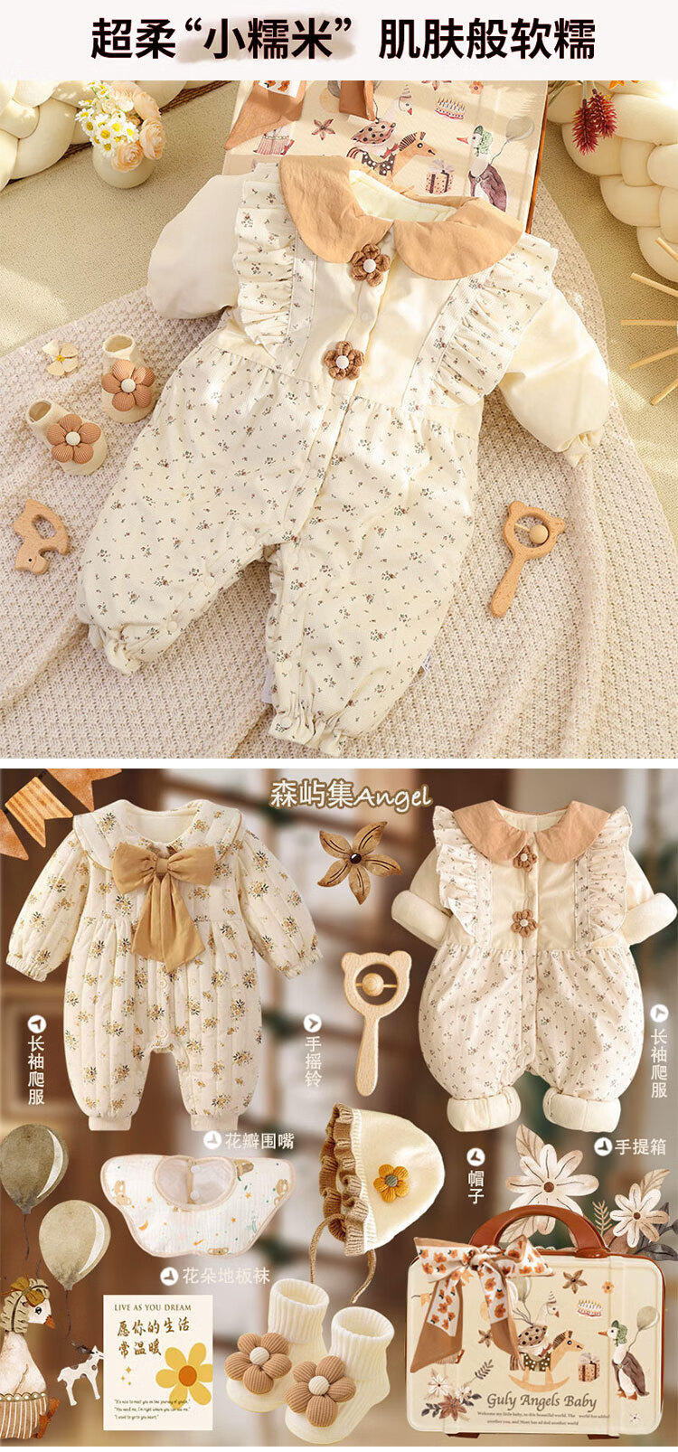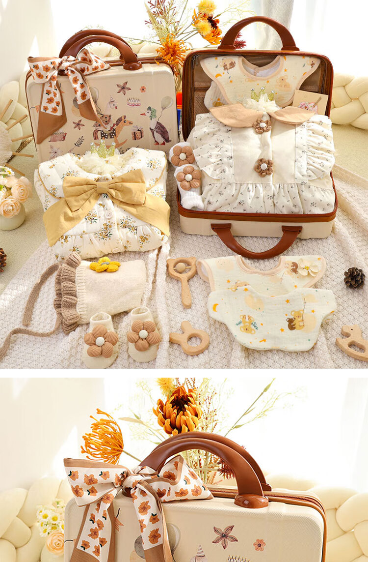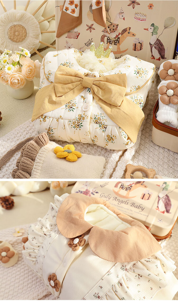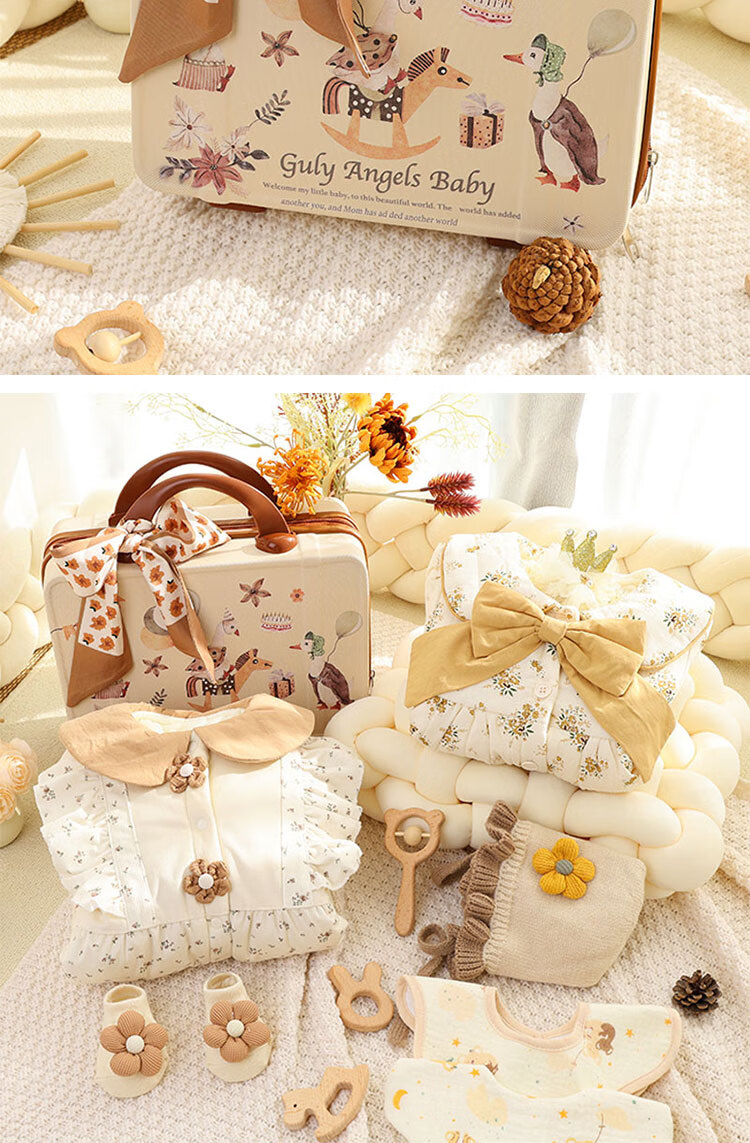 Infant clothing set, newborn meeting gift box, newborn baby full moon gift, high-end and practical autumn and winter Mengyu Flower Field 66cm 0-4 months