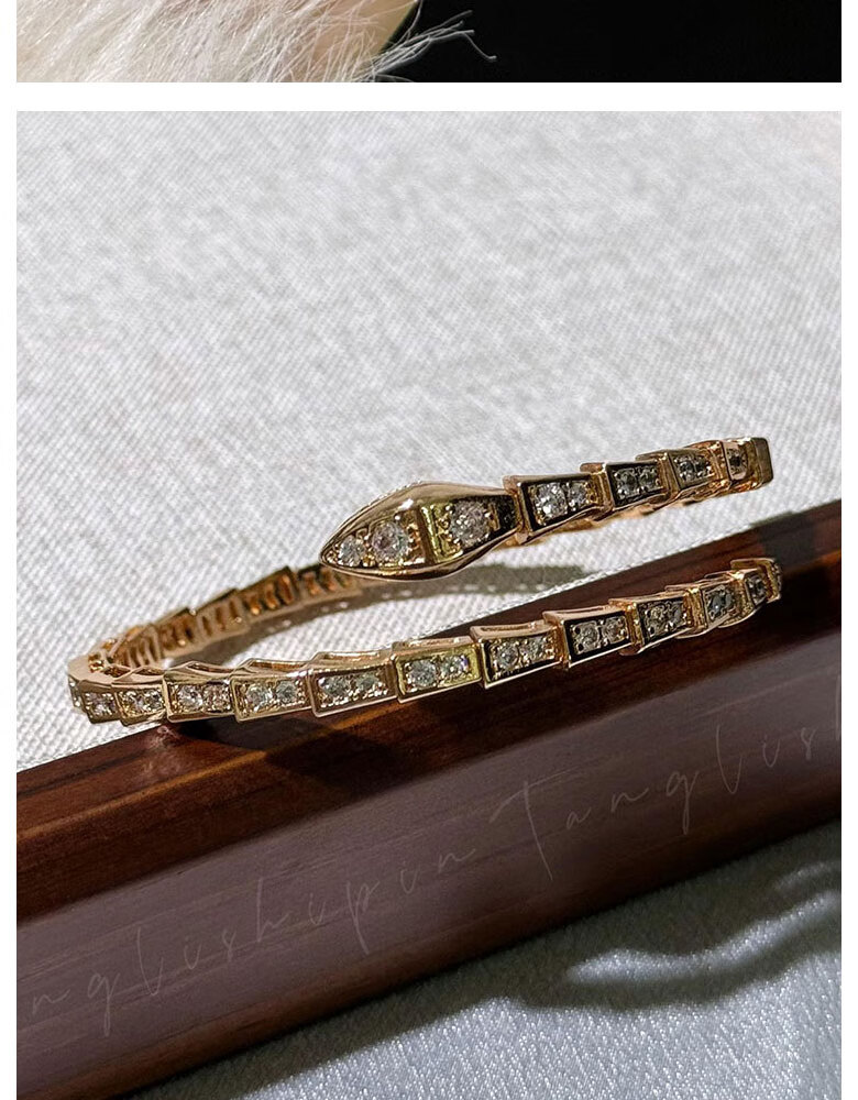 Red Shadow Gold Electroplated Zircon Snake Bracelet Women's Light Luxurious Full Diamond Snake Bone Spirit Snake Bracelet Copper Combined Chinese Valentine's Day Gift