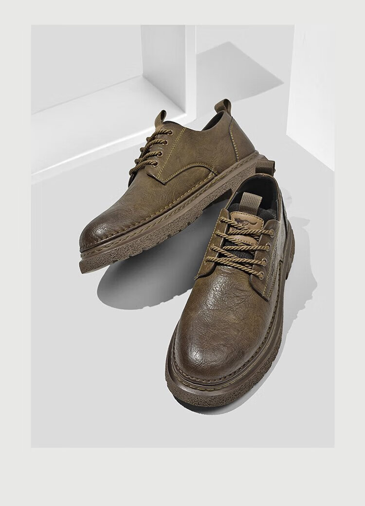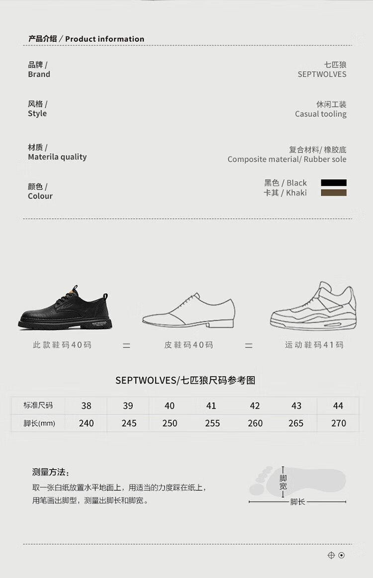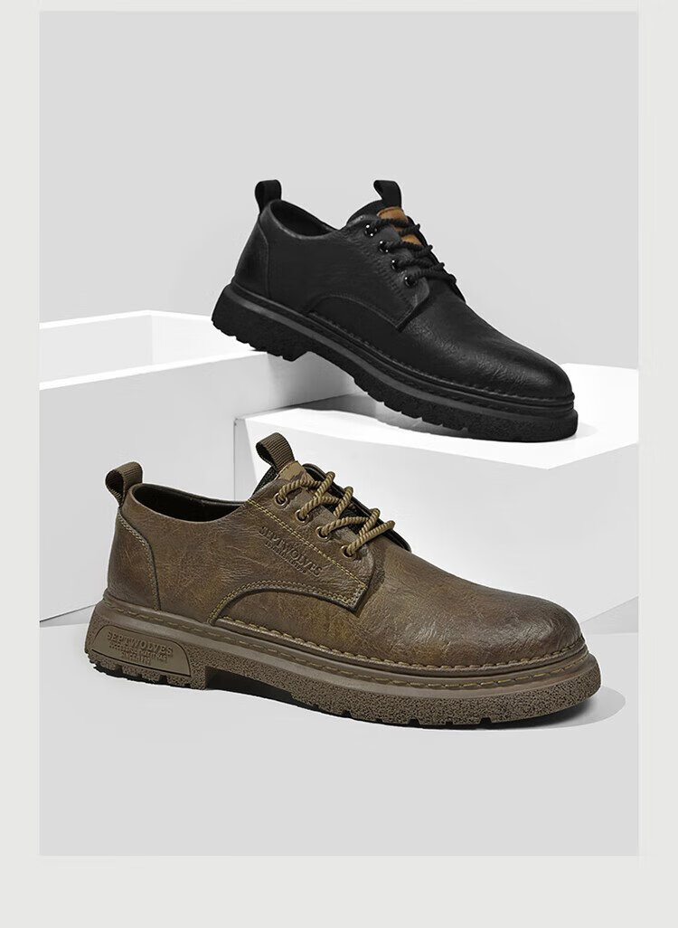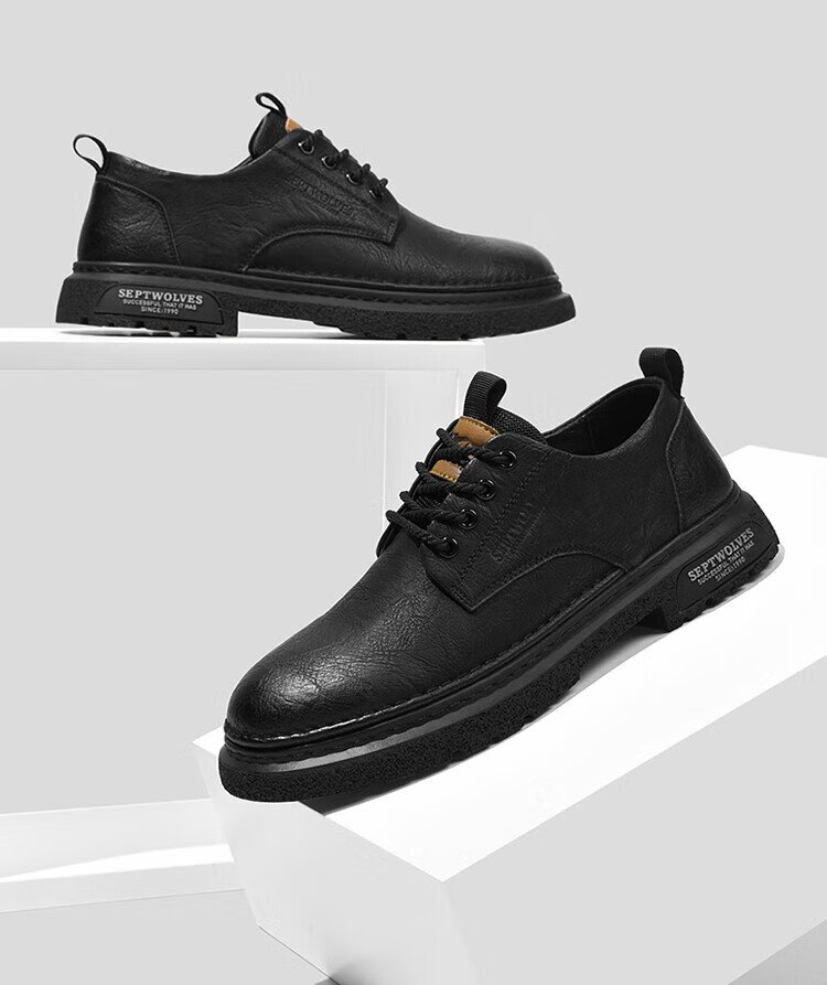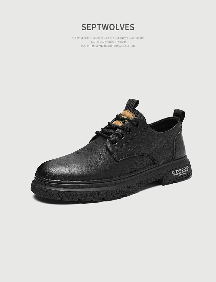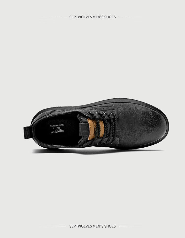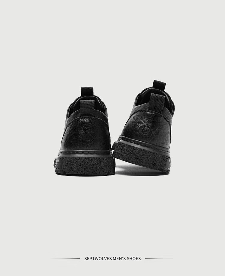 Septwolves Men's Shoes Business Casual Shoes Winter 2025 New Genuine Leather Soft Soled Casual Leather Shoes Black Workwear Low-top Martin Boots Black 41