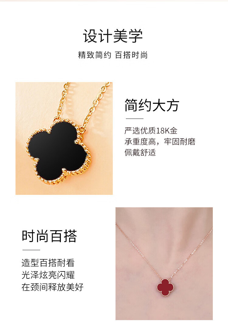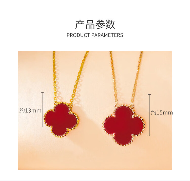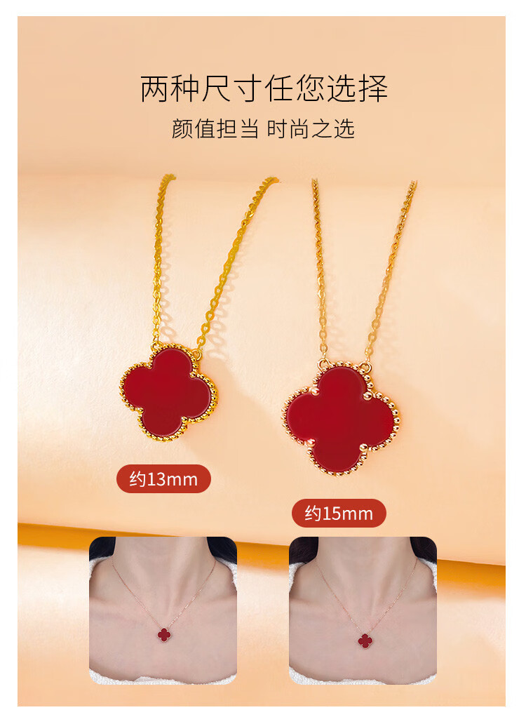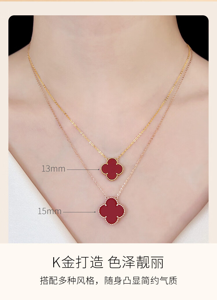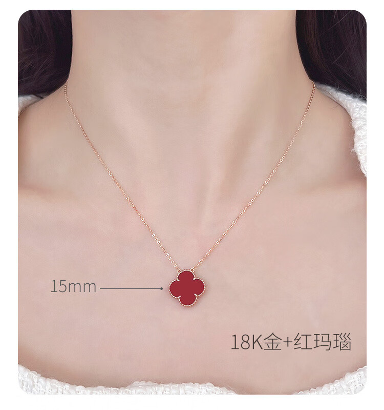 Shimao 18K gold four-leaf clover necklace au750 color gold rose gold gold clavicle chain set chain Chinese Valentine's Day gift for women 18K rose gold 13mm set chain red agate