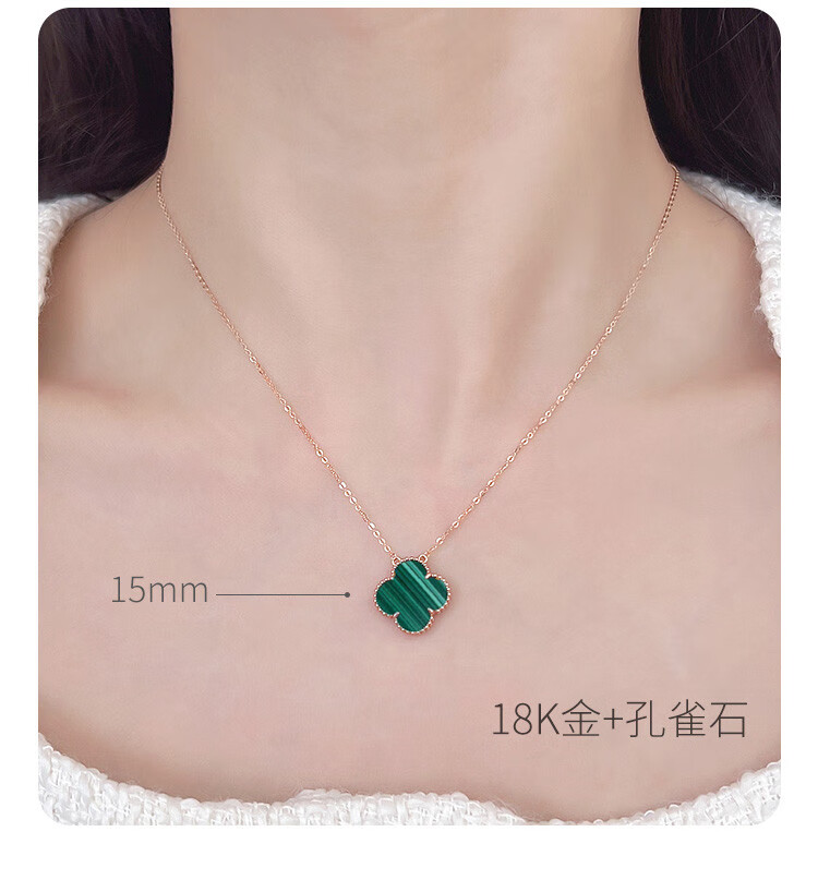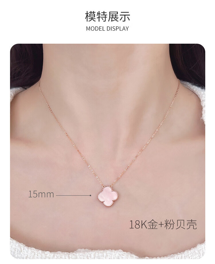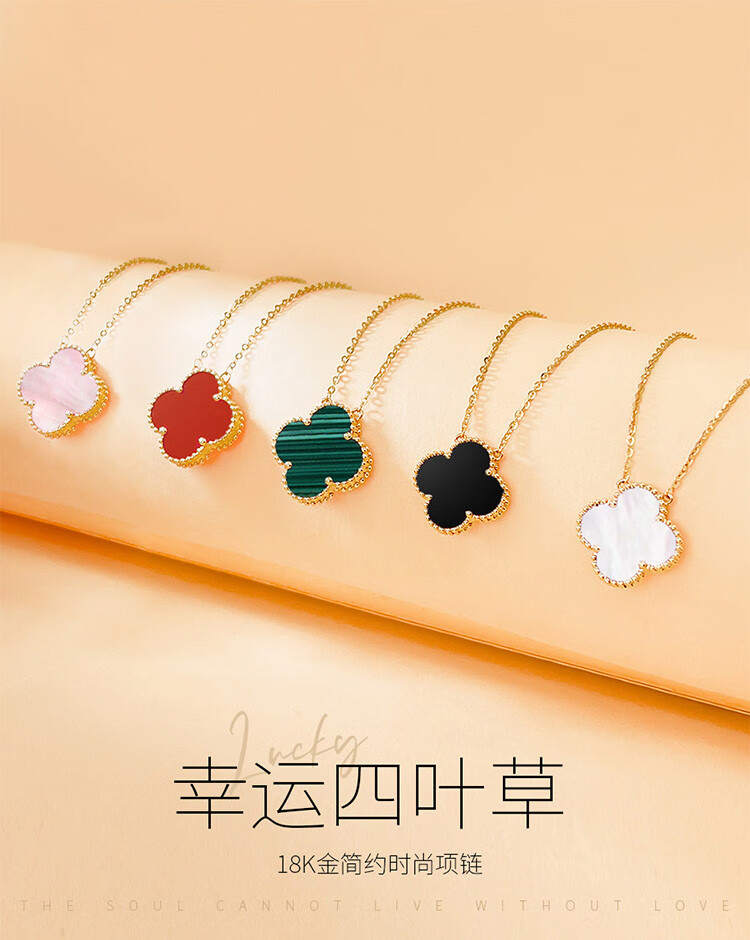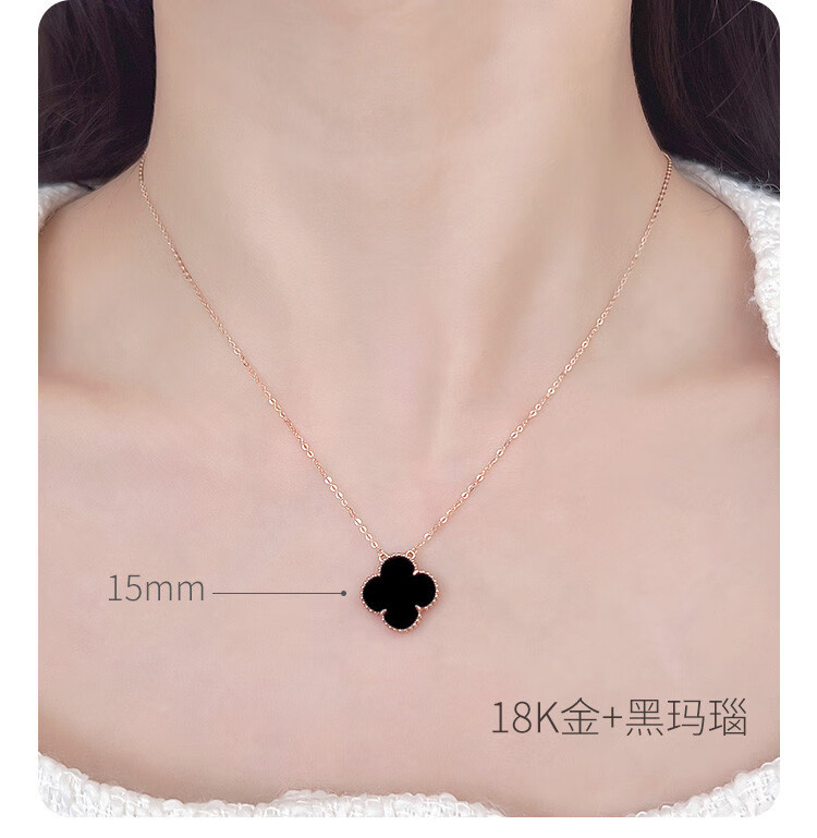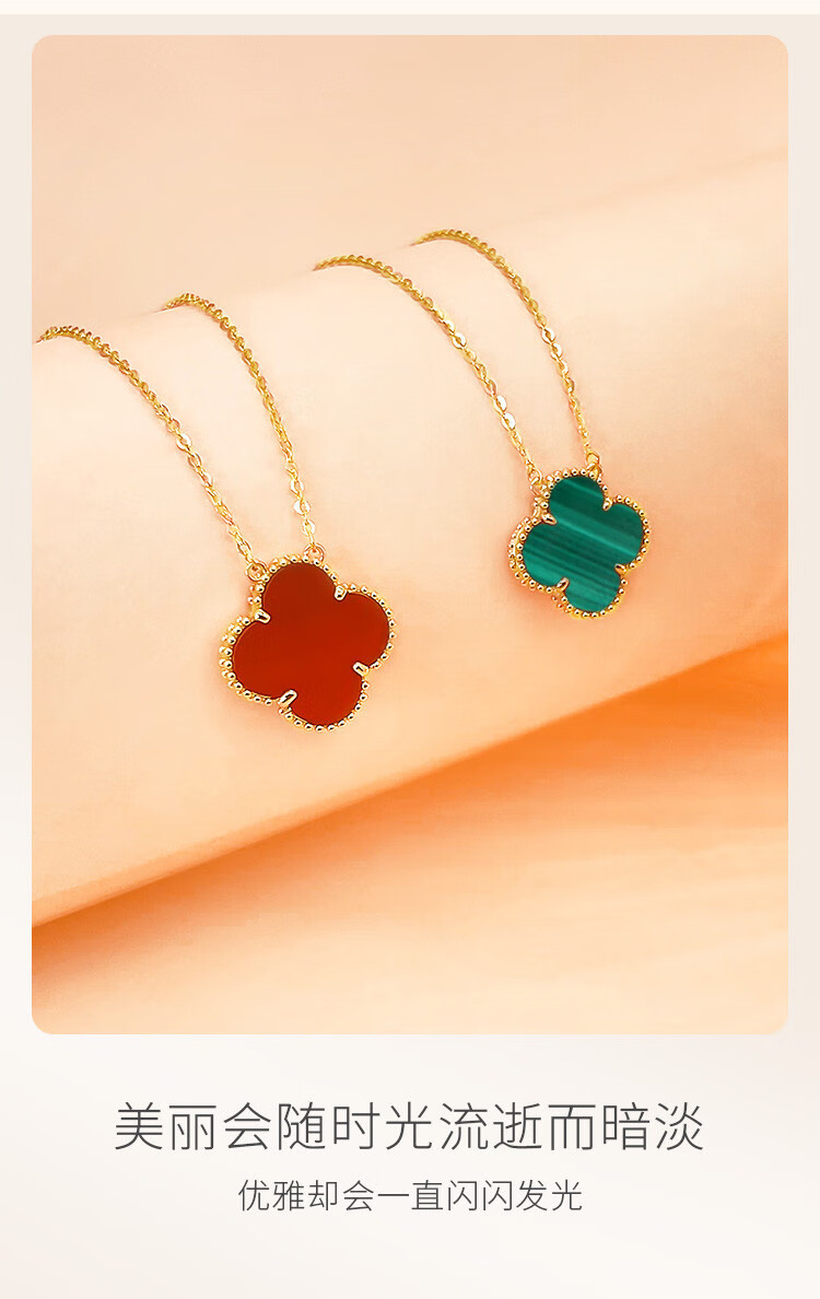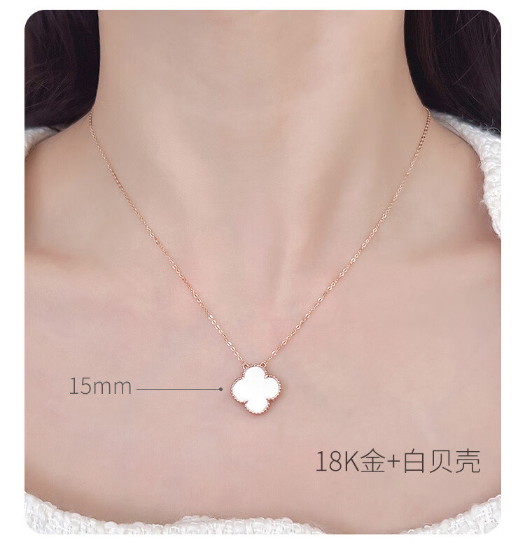 Shimao 18K gold four-leaf clover necklace au750 color gold rose gold gold clavicle chain set chain Chinese Valentine's Day gift for women 18K rose gold 13mm set chain red agate