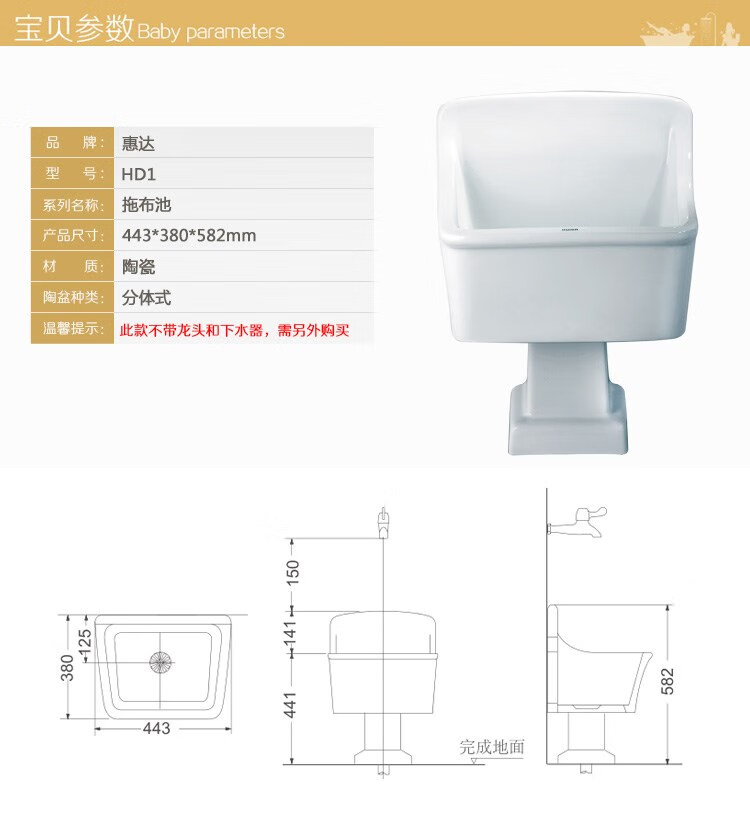 Huida (HUIDA) ceramic mop pool mop pool outdoor engineering bathroom balcony special small mop pool HD1 cloth pool HD1