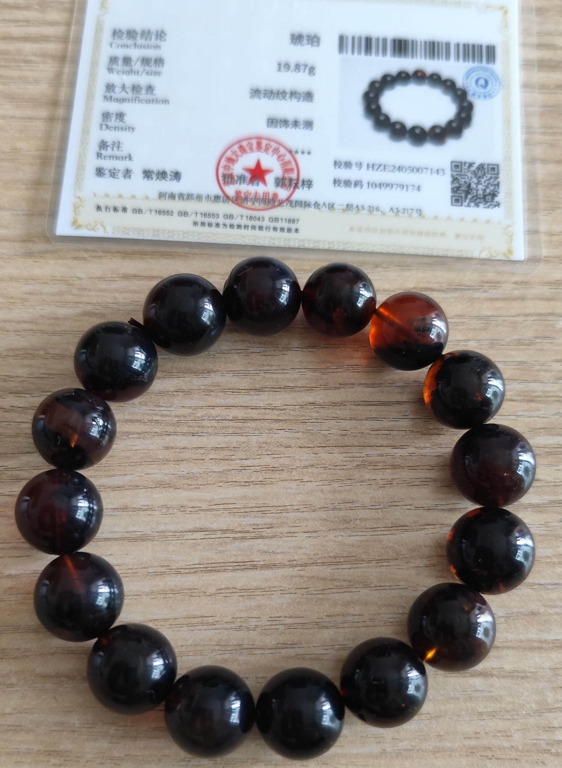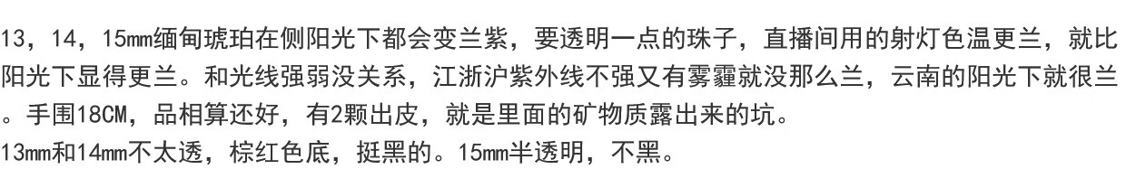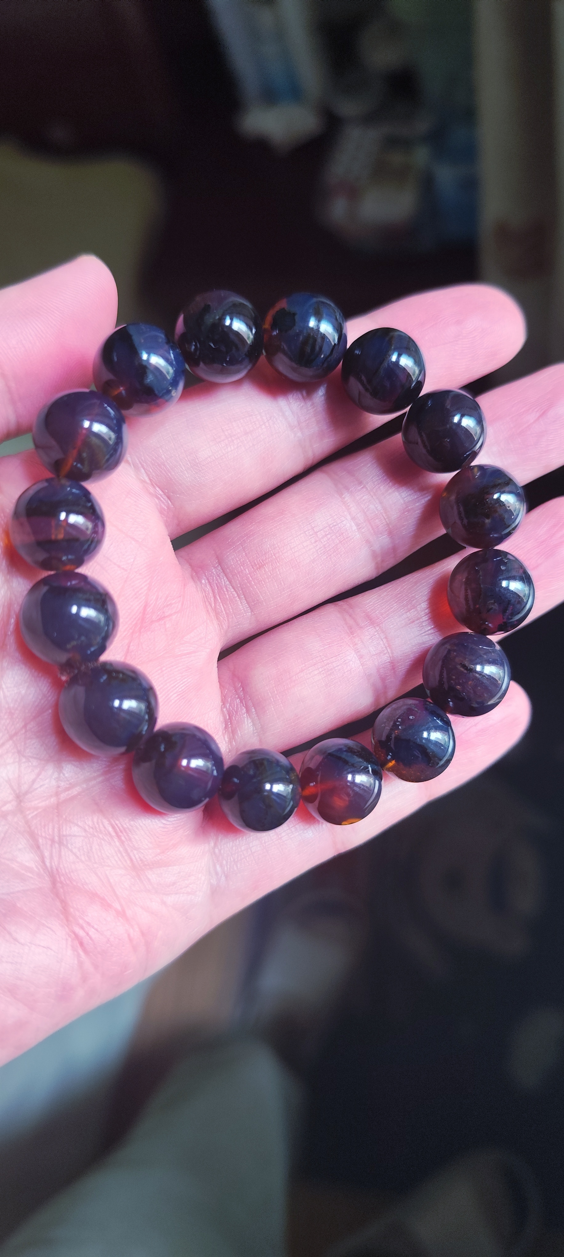 赤影琥珀蜜蜡黑药珀林草珀手串131415mm手链紫罗兰变色海藻珀 13mm 拉 0克