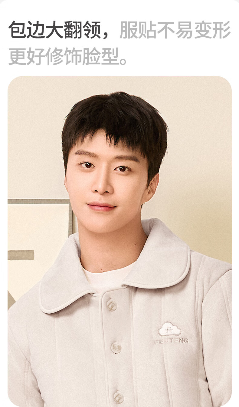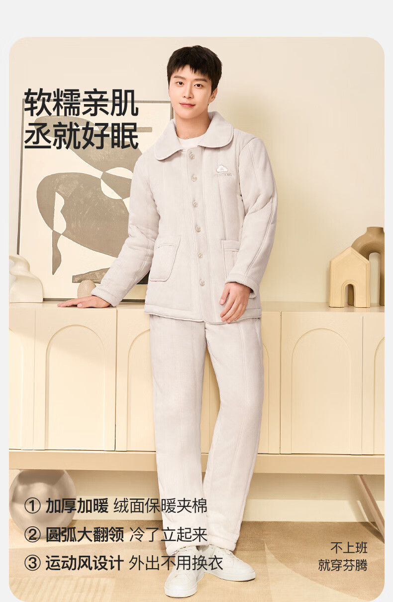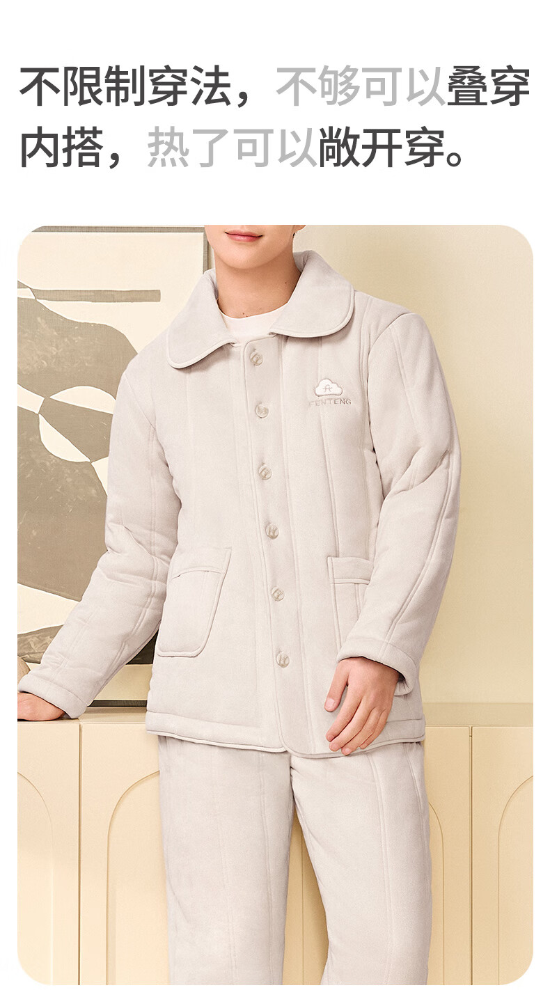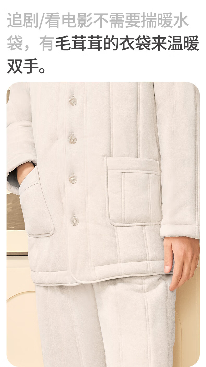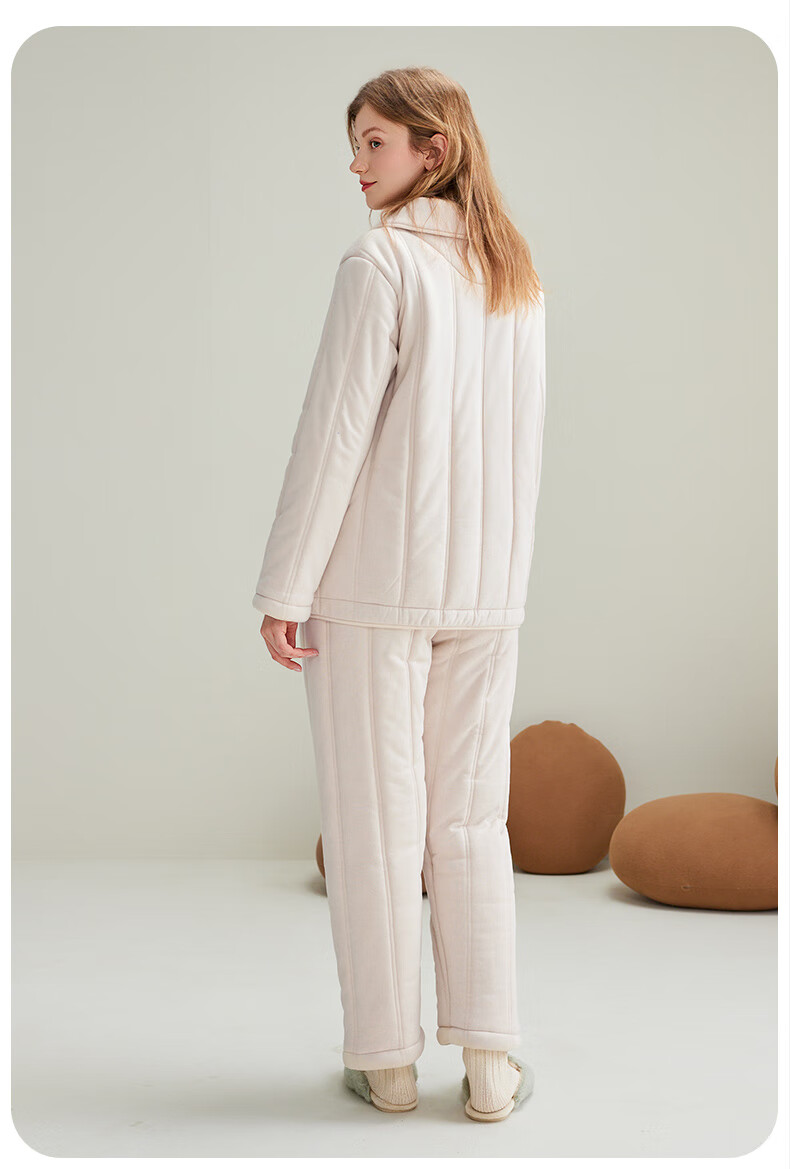Fenton Couple Pajamas Fan Chengcheng's Same Style Star's Same Style Autumn and Winter Three-Layer Padded Thickened Anti-static Home Clothes Set Light Khaki-Women's XL