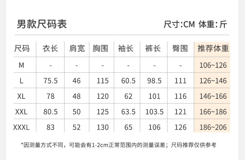 China (cm) 160-165/84-86 165-170 / 88-90 167-172 / 92-96 168-173 / 98-102 170-176 / 106-110