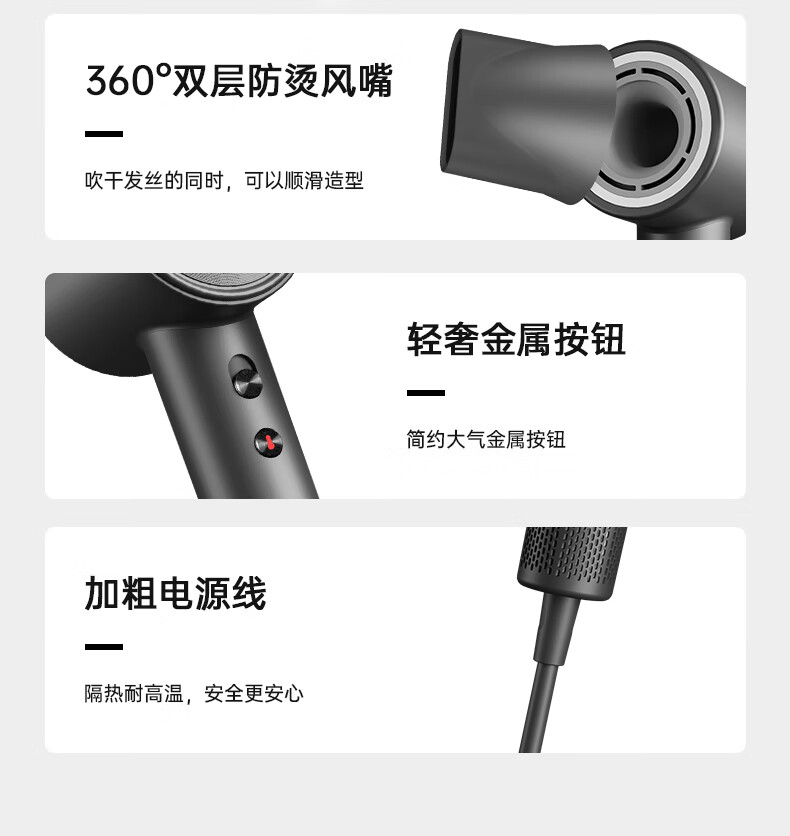 Creade high-speed hair dryer for hair household high-power quick-drying negative ion hair dryer star hotel birthday gift box national subsidy K-4043 K-4043 platinum gray gift box with free air nozzle + wall-mounted bracket