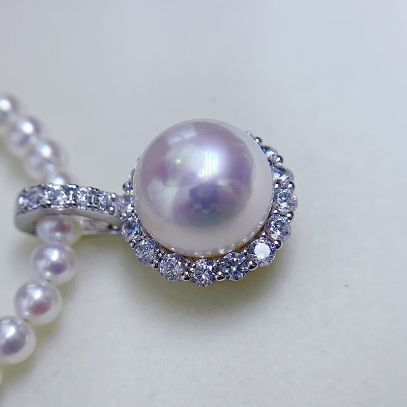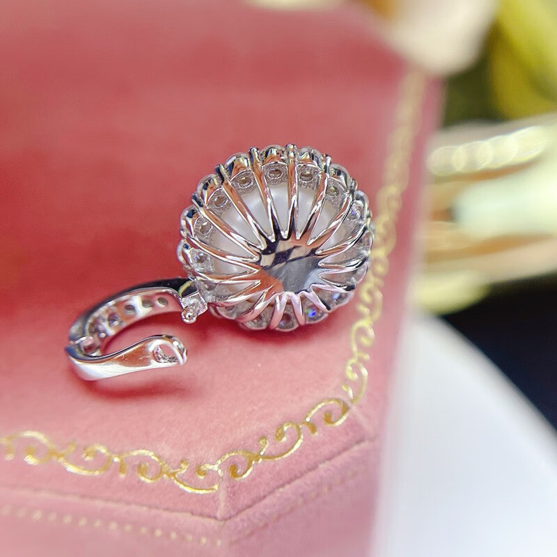 Tingbai extremely bright freshwater pearl S925 silver sunflower pendant full of diamonds dual-purpose universal buckle open pendant for women pendant + silver chain