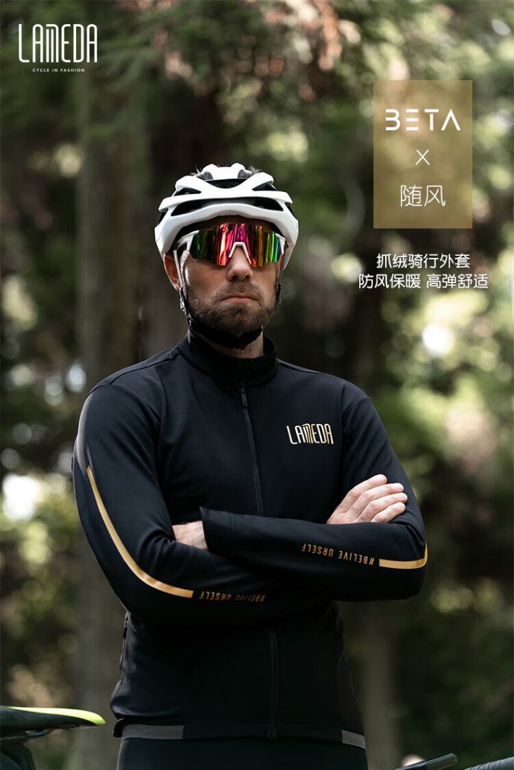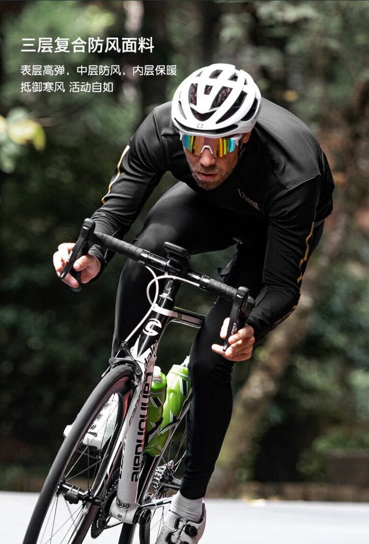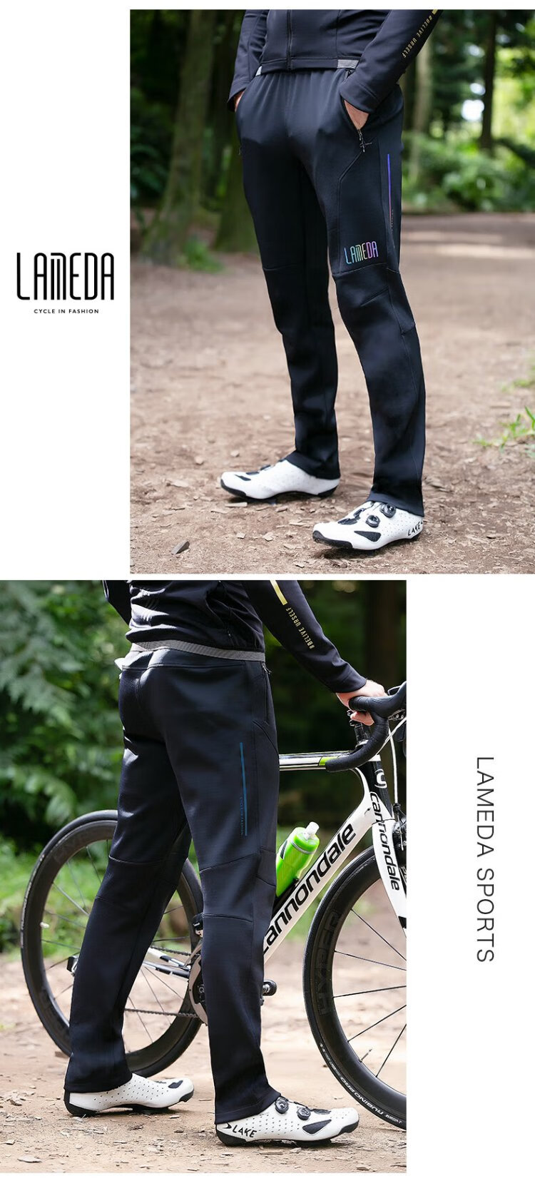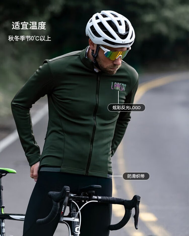 LAMEDA 0~10 Autumn and Winter Cycling Clothes Men's Road Bike Fleece Windproof Warm Cycling Long Sleeve Suit Jacket Sui Feng Green + Endless Fleece Trousers 3XL
