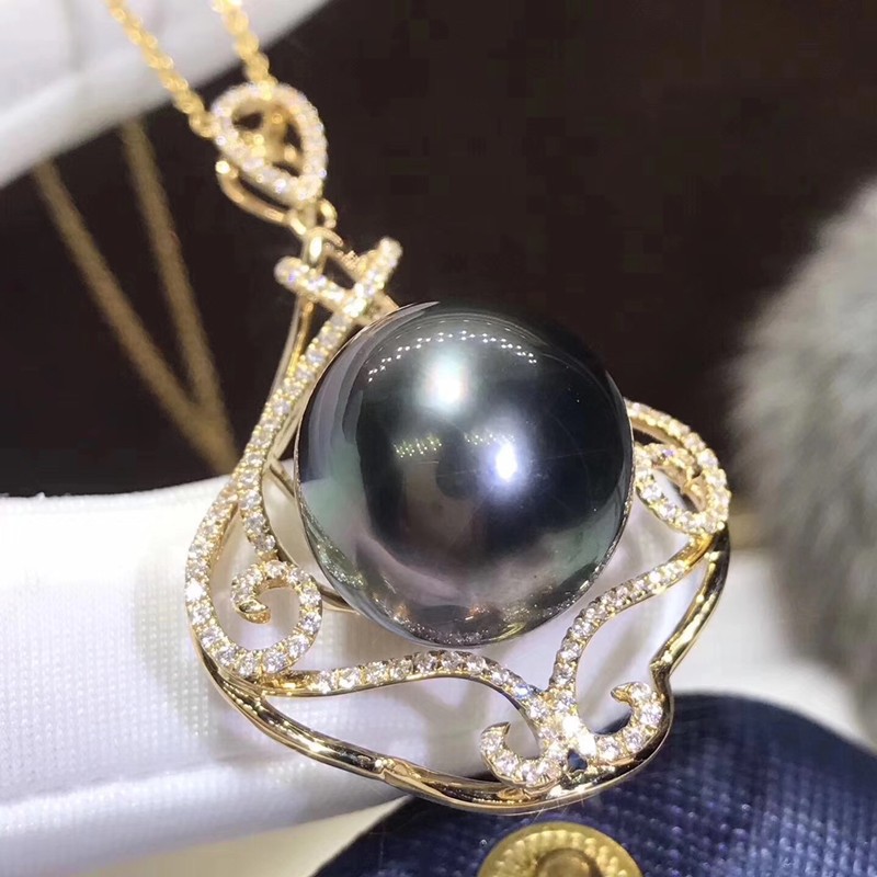 Tingbai's origin is Tahiti black pearl pendant, malachite green pendant, strong luster, noble atmosphere and high quality.