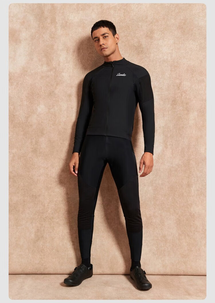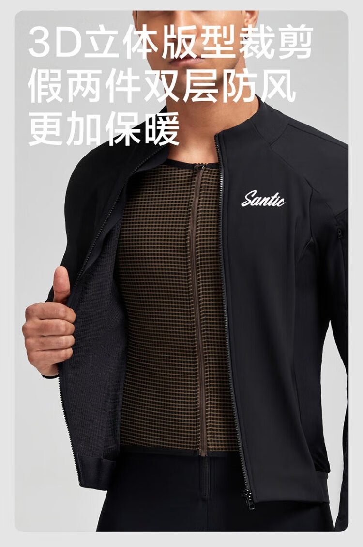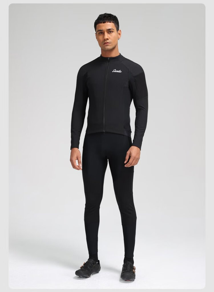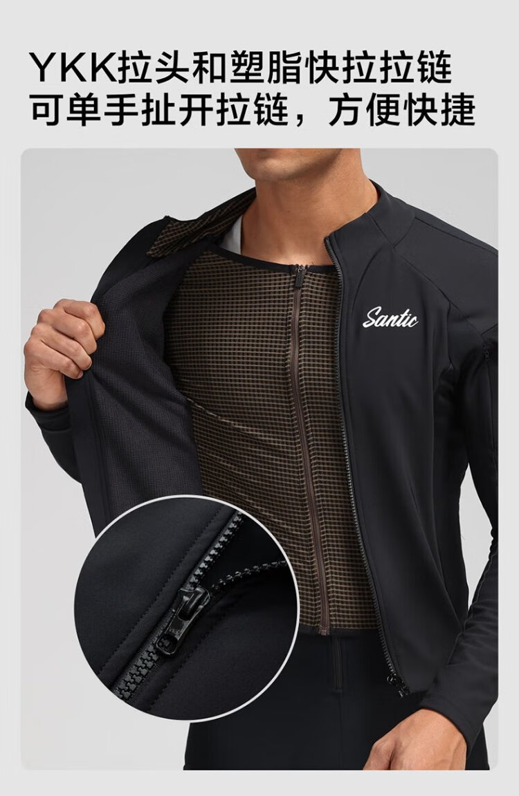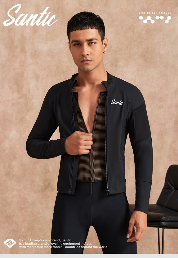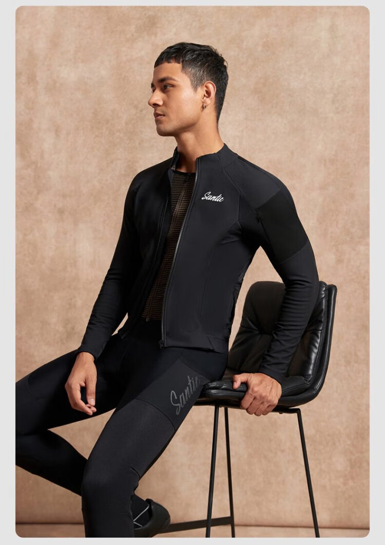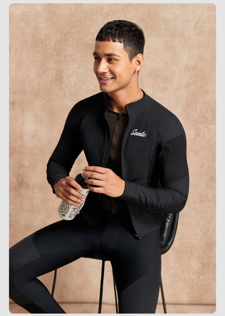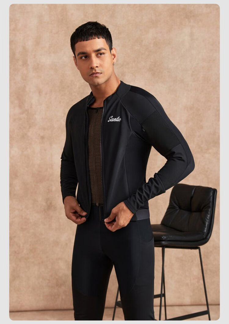 Santic autumn and winter windproof cycling clothing road bicycle fleece warm cycling top jacket for men ink dust black XL