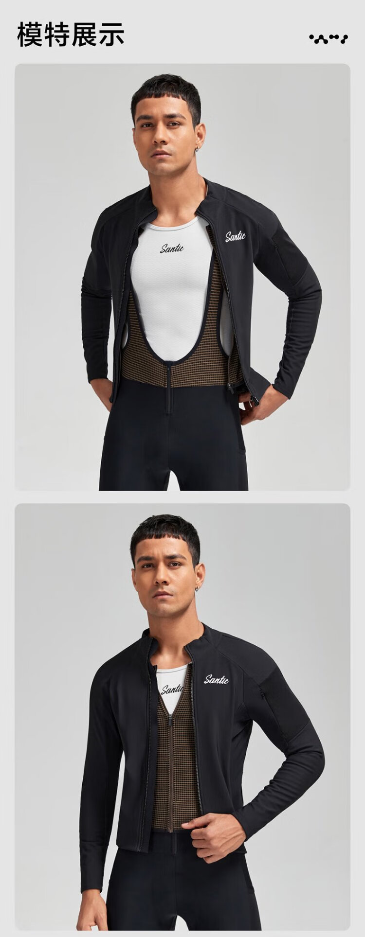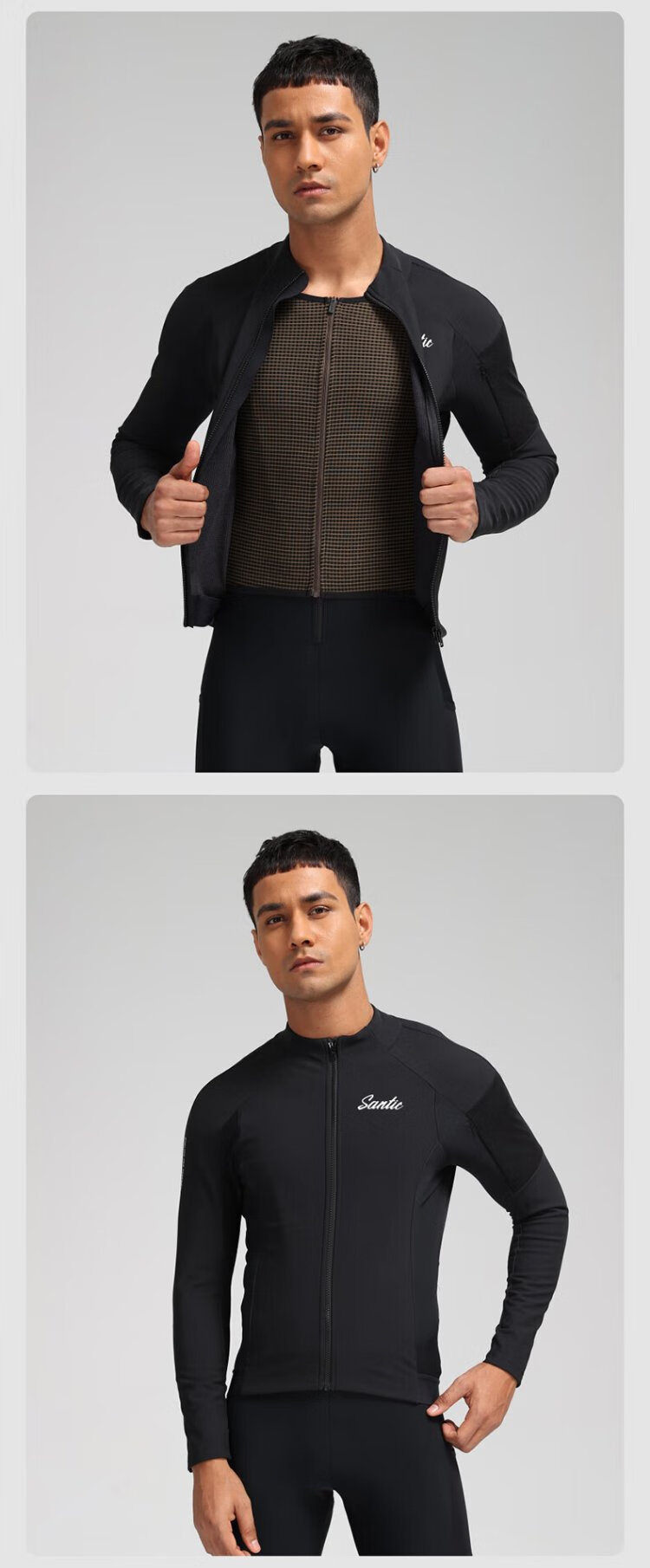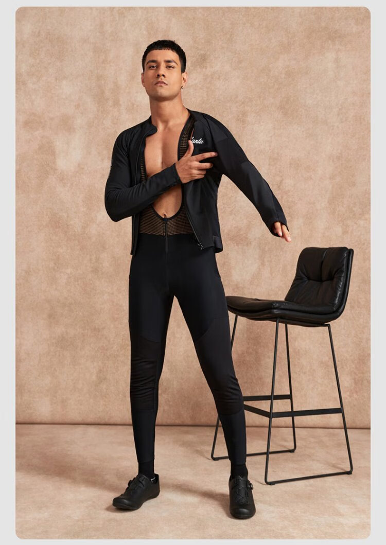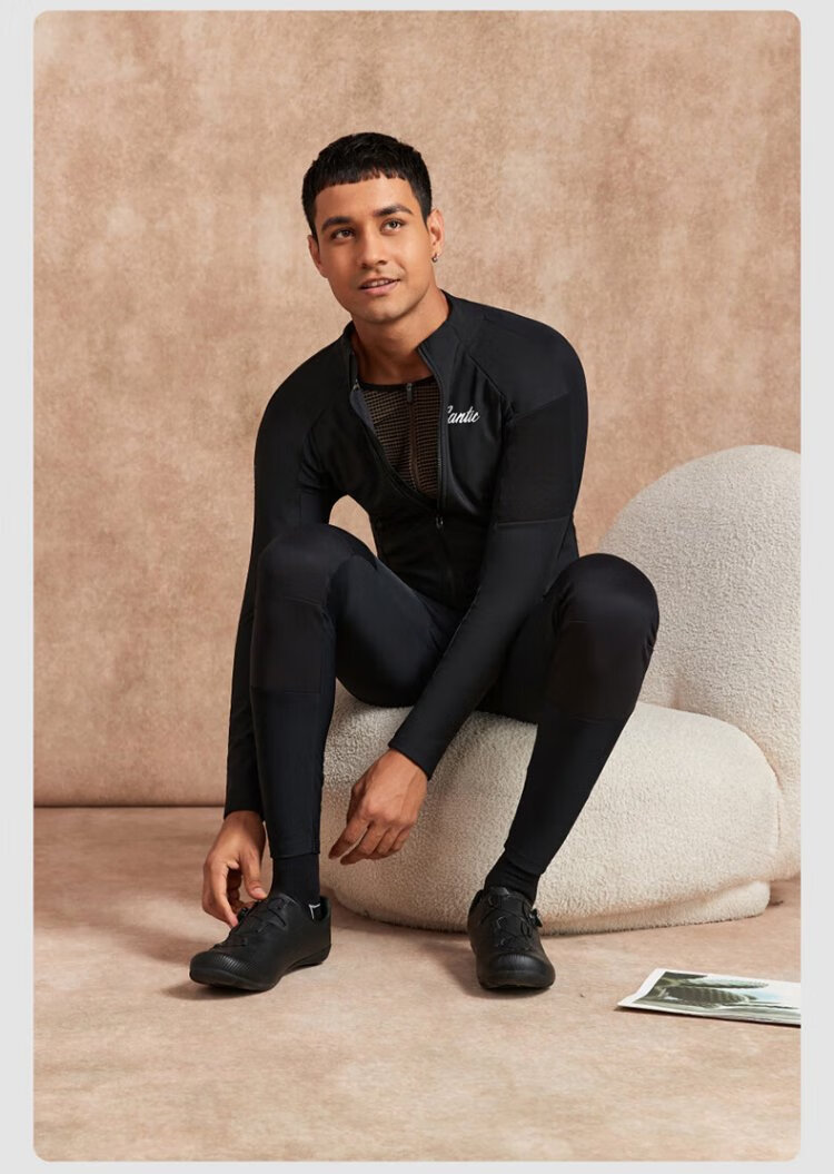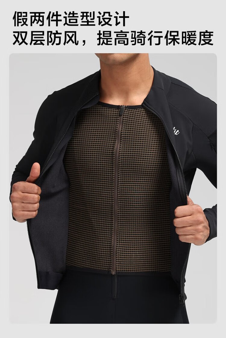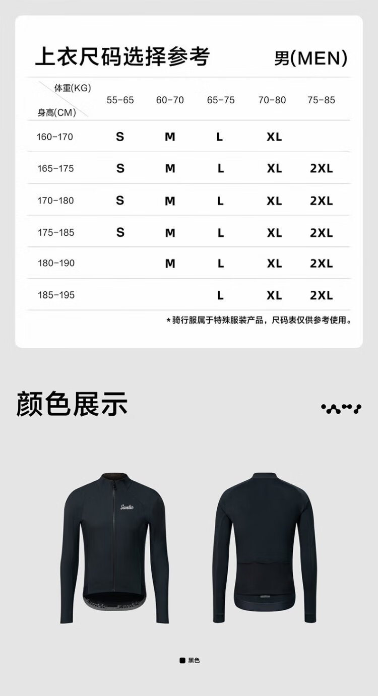 Santic autumn and winter windproof cycling clothing road bicycle fleece warm cycling top jacket for men ink dust black XL