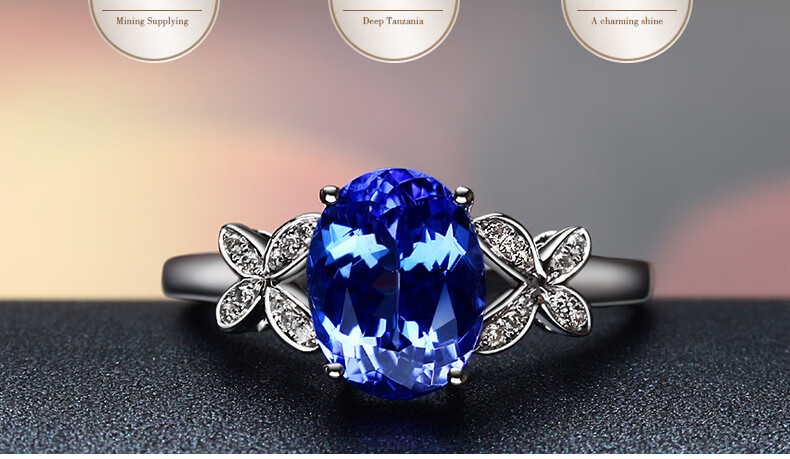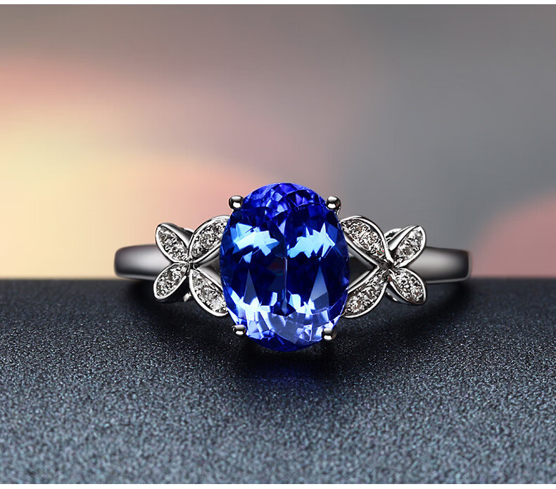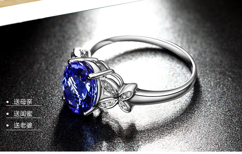 DidiZoo Imitation Sapphire Ring Tanzanite White Gold Ring Full Diamond Bow Sapphire Proposal Diamond Ring High-end Sapphire White Gold Opening Adjustable