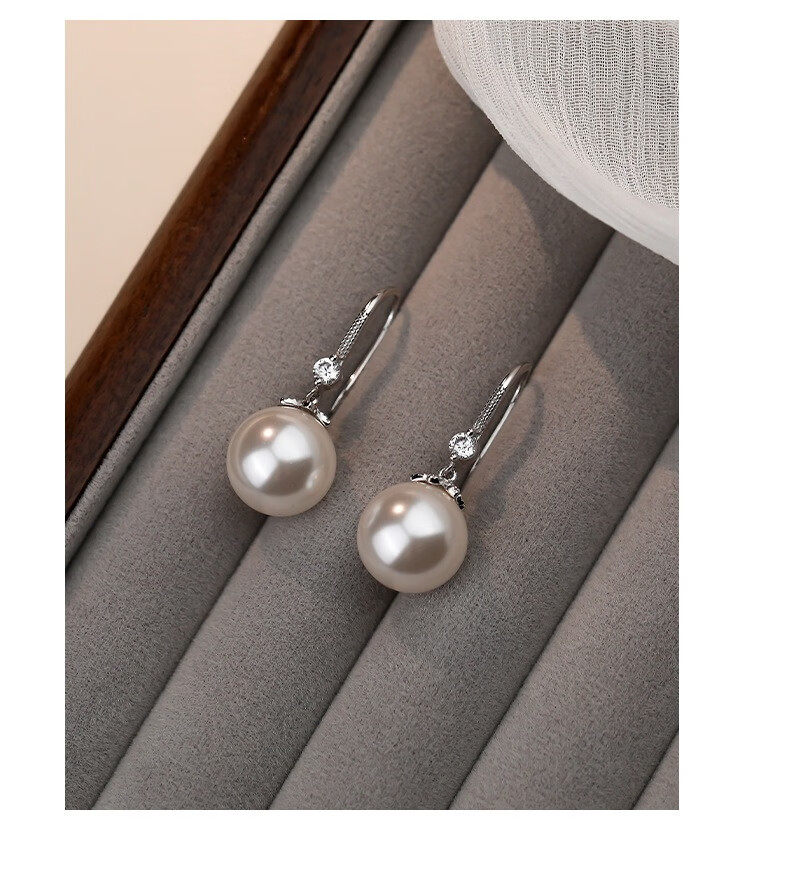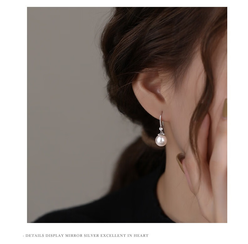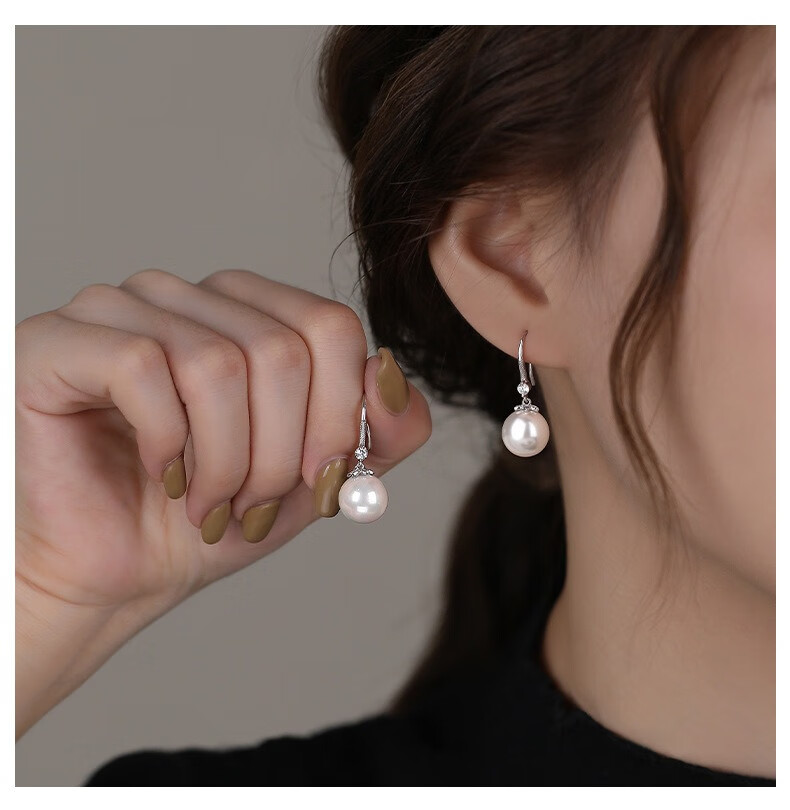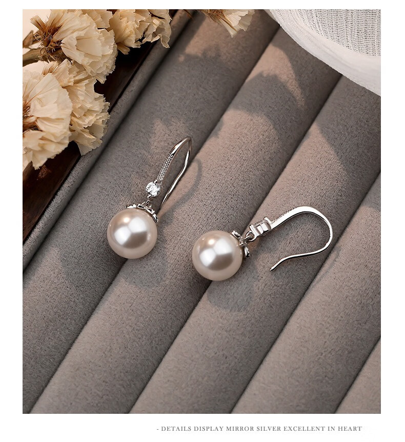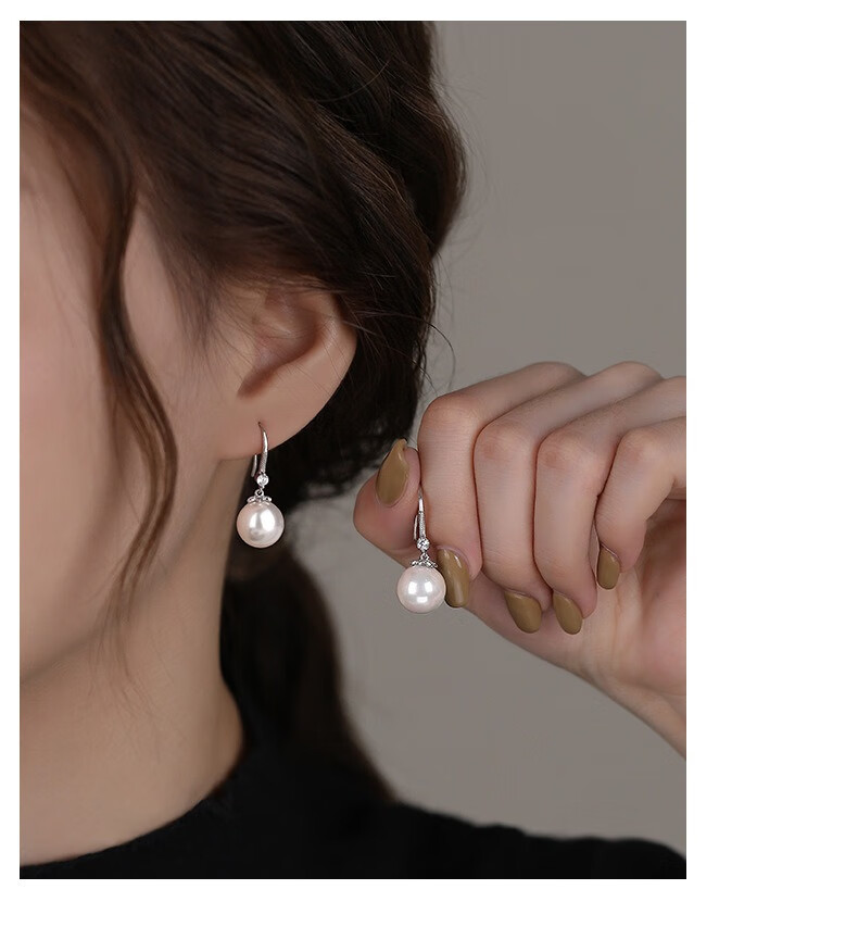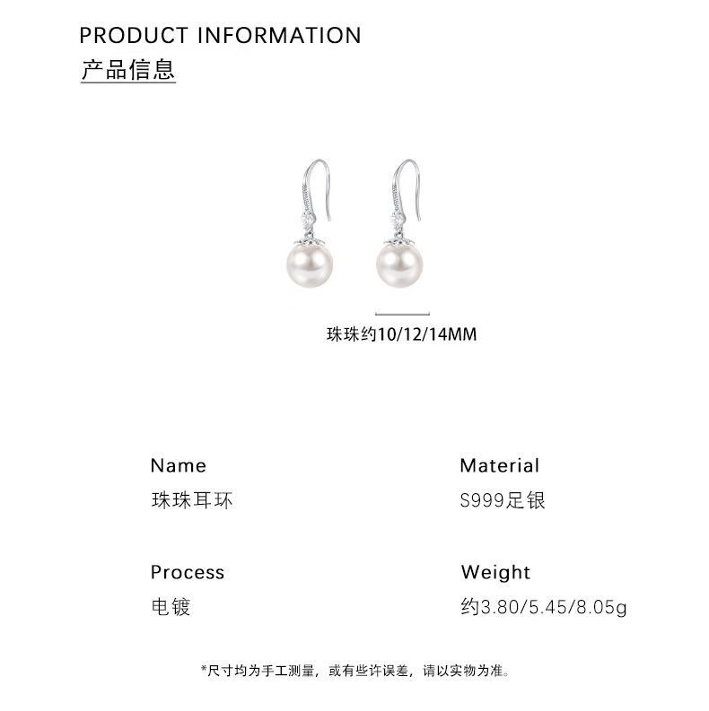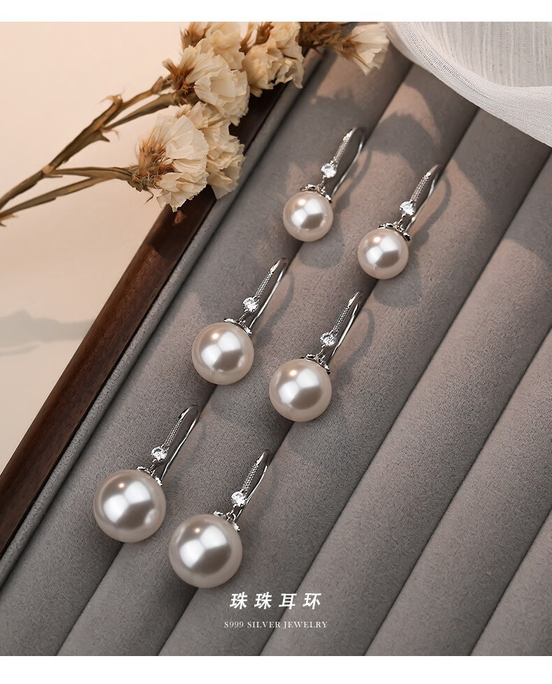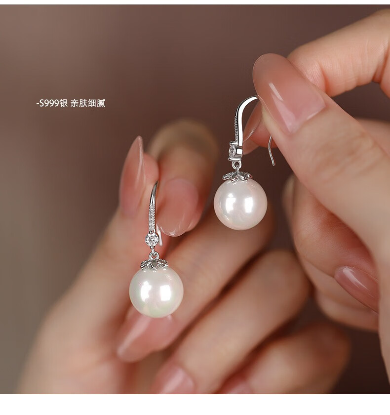 Su Shiliu 999 silver imitation pearl earrings for women, retro high-end ear hooks, birthday gifts for girlfriend, wife and mother, 999 silver bead earrings 12mm
