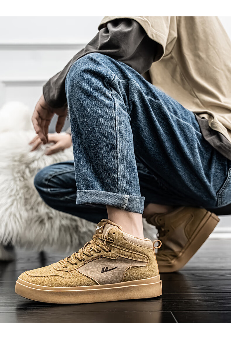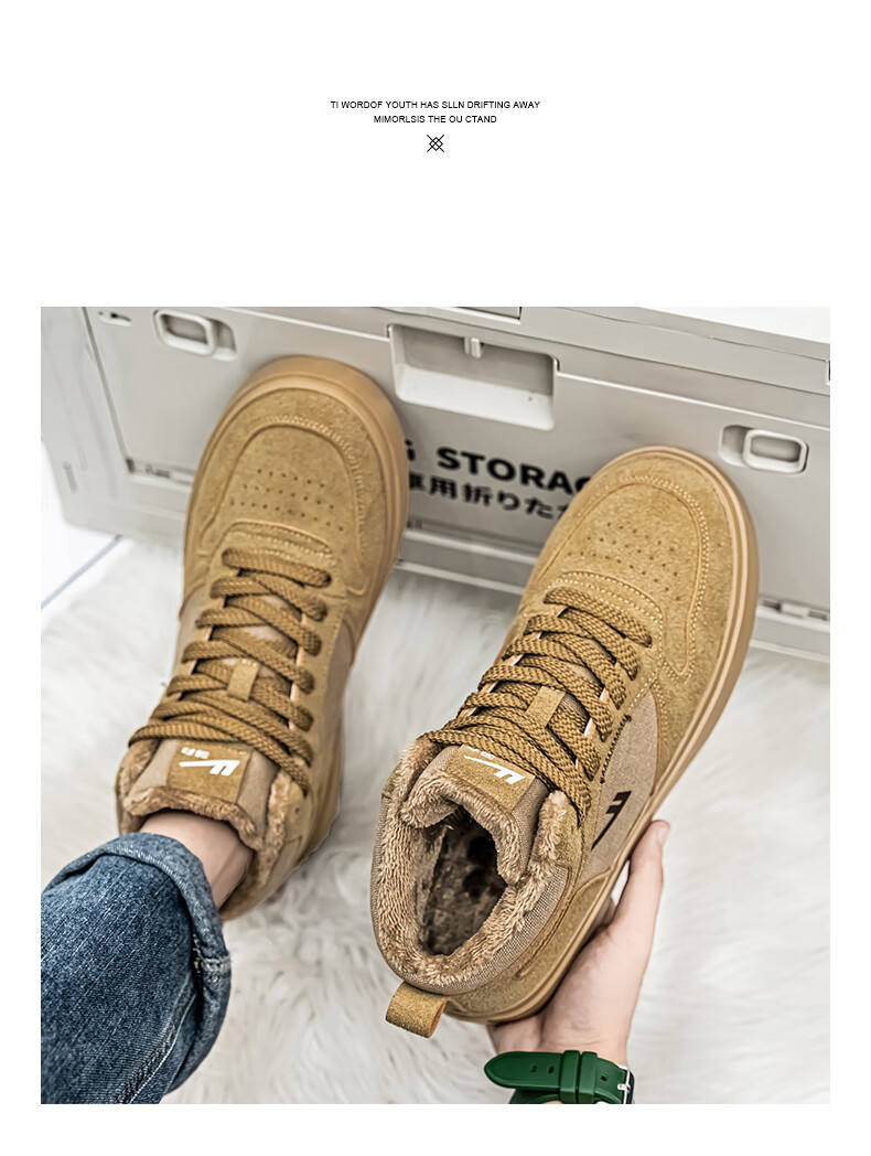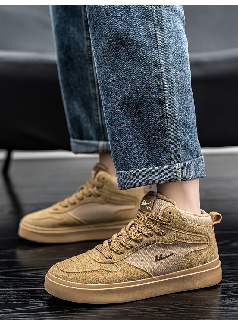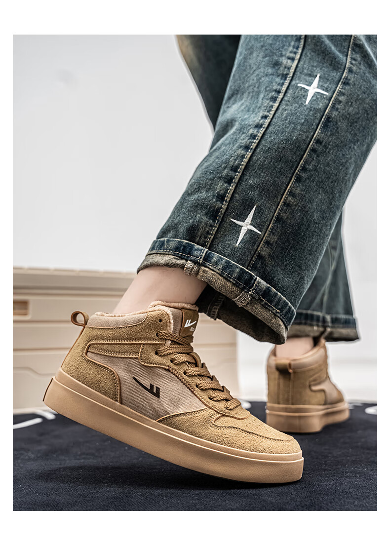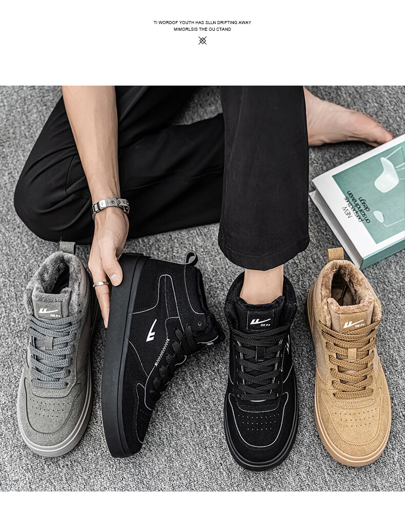Pull back men's shoes high-top cotton shoes men's 2025 winter new snow boots plus velvet thickened plate shoes men's warm shoes trend brown 42