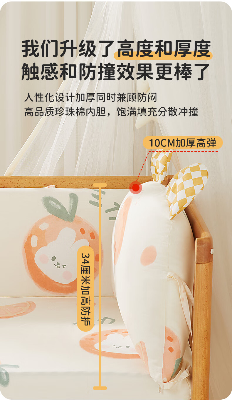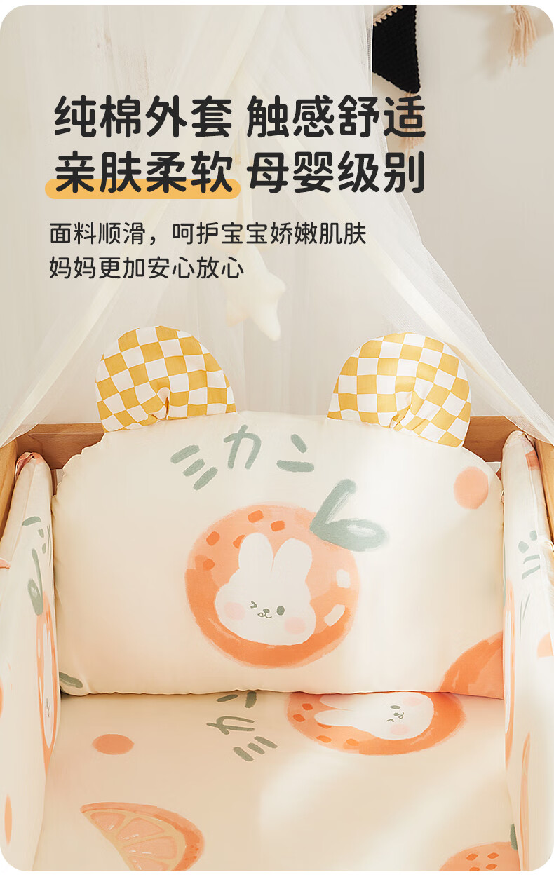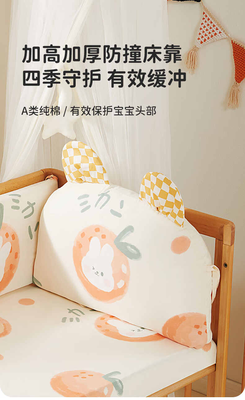 Li Mengsi crib surround soft bed bedside fence anti-collision splicing cloth baby child side anti-fall safety guard Orange Cute Rabbit single bed backrest length 60cm