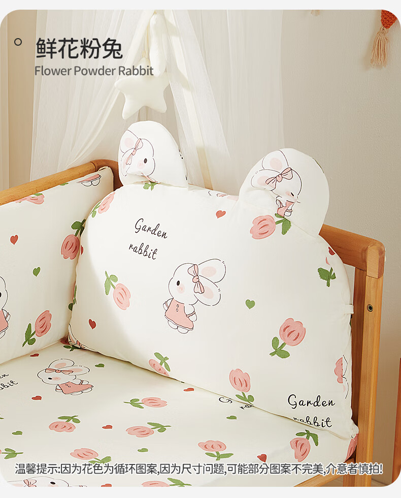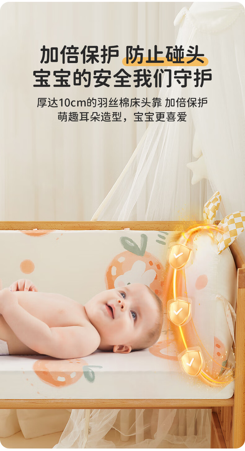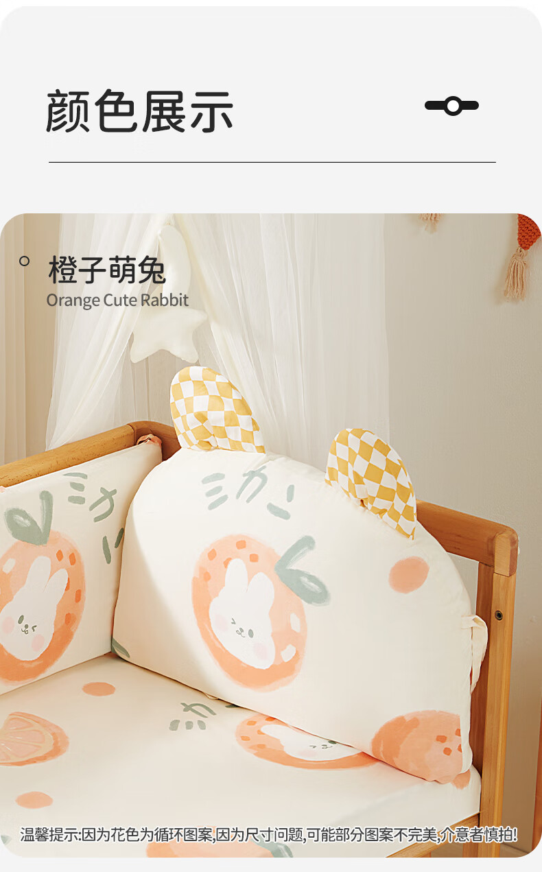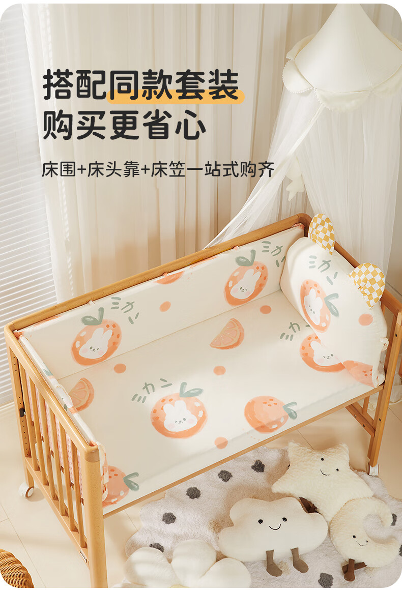Li Mengsi crib surround soft bed bedside fence anti-collision splicing cloth baby child side anti-fall safety guard Orange Cute Rabbit single bed backrest length 60cm