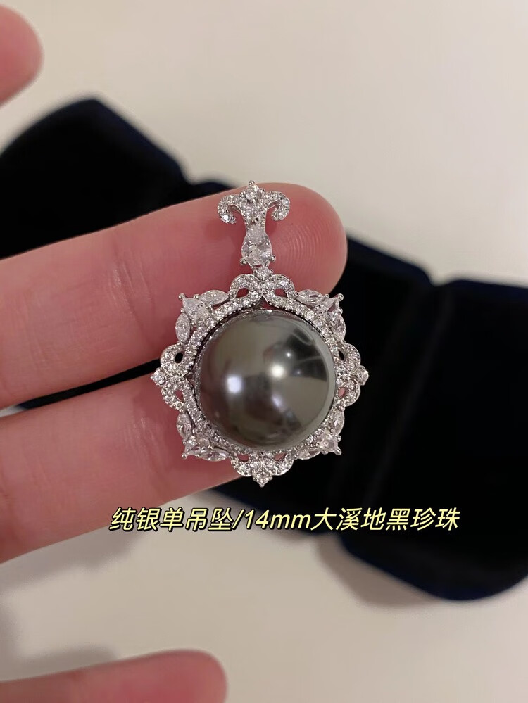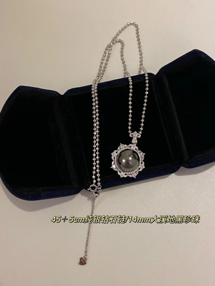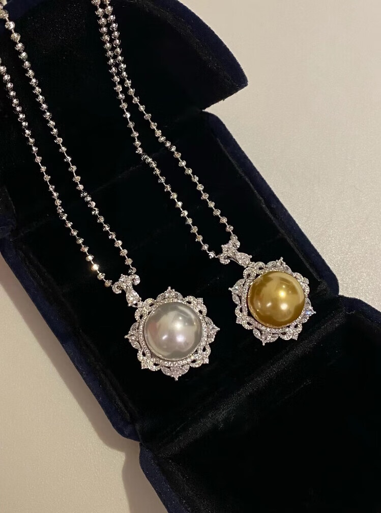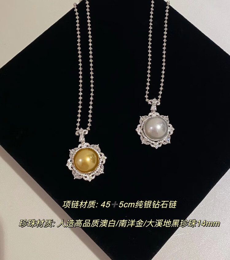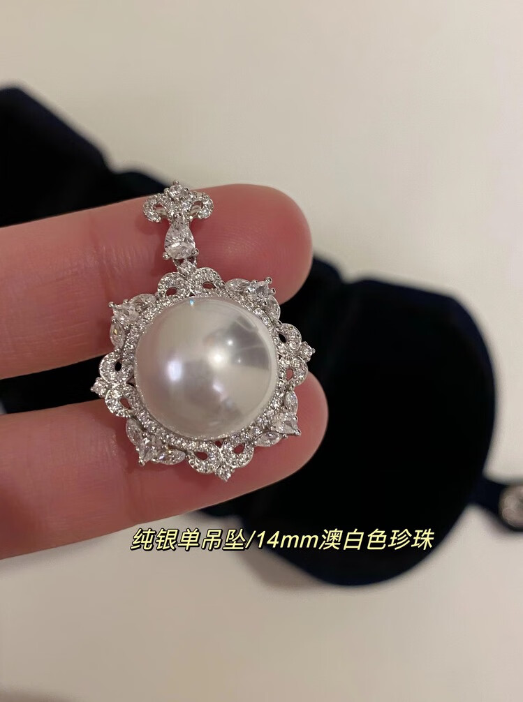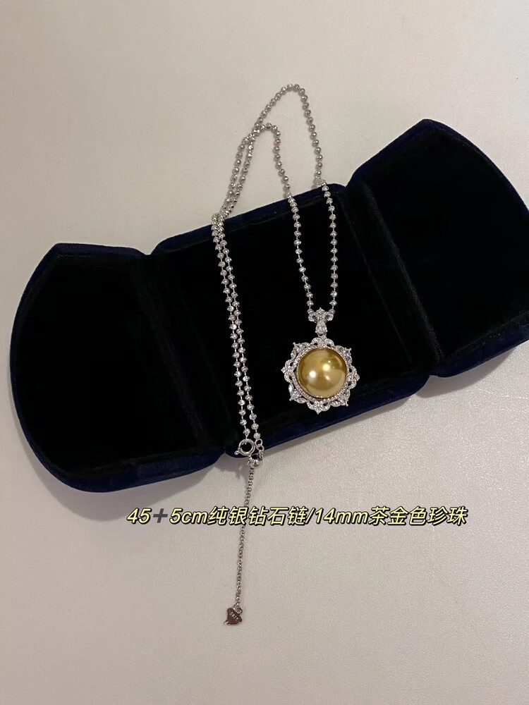 Tingbai, Australian white, South Sea gold, strong light, large pearl pendant necklace, sterling silver light luxury sparkling diamond sweater chain for women, sterling silver/14mm Australian white pearl pendant necklace