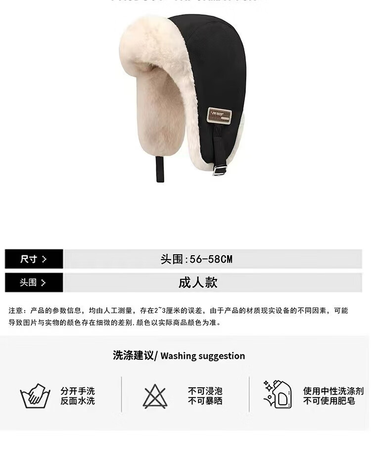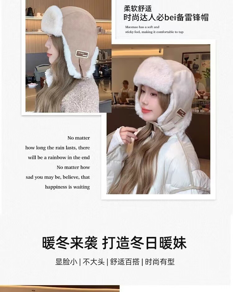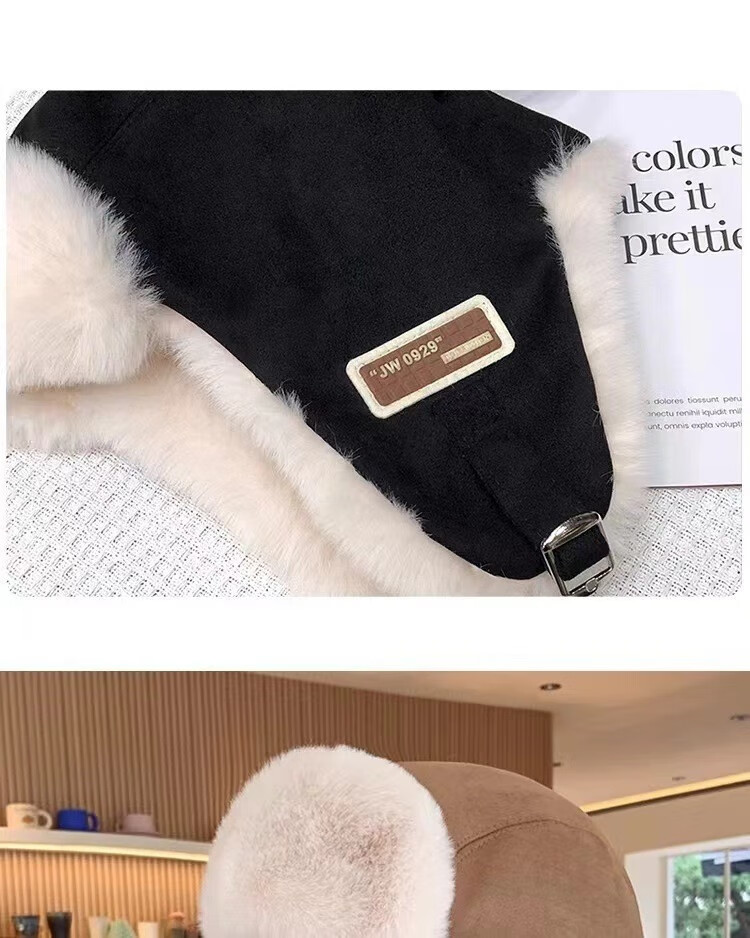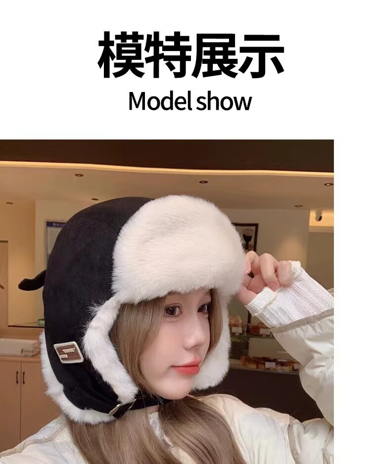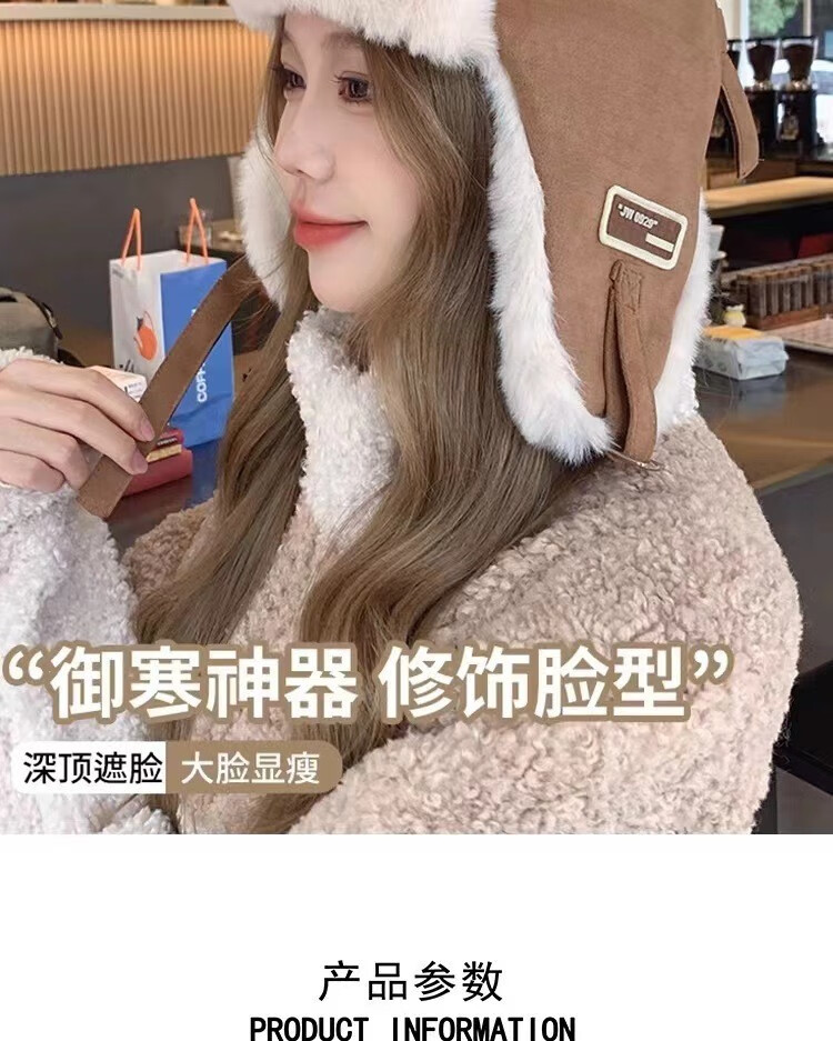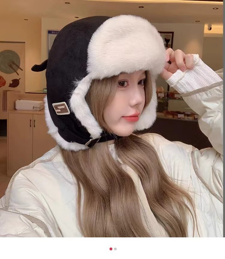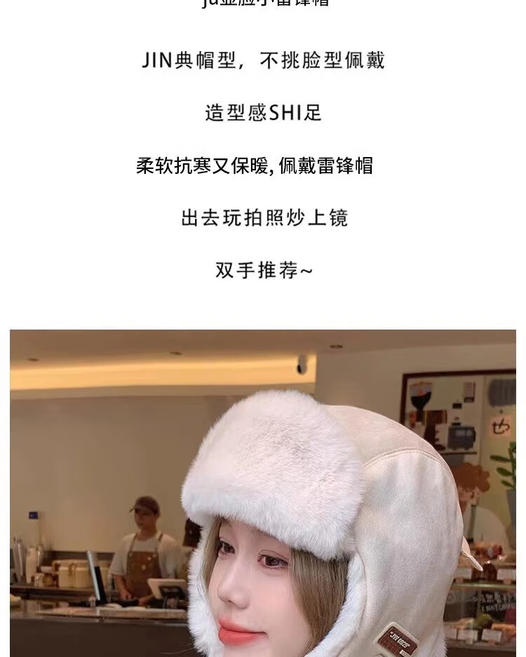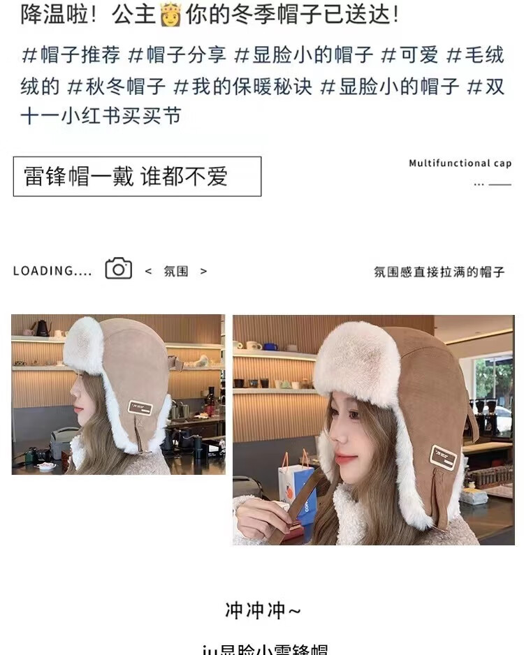 Rui Che's new winter cold-proof and warm Lei Feng hat for women, retro fashionable cycling ear protection, men's velvet thickened hat, black, one size fits all