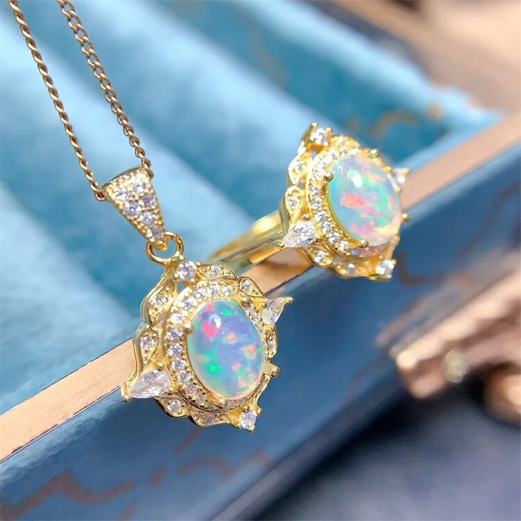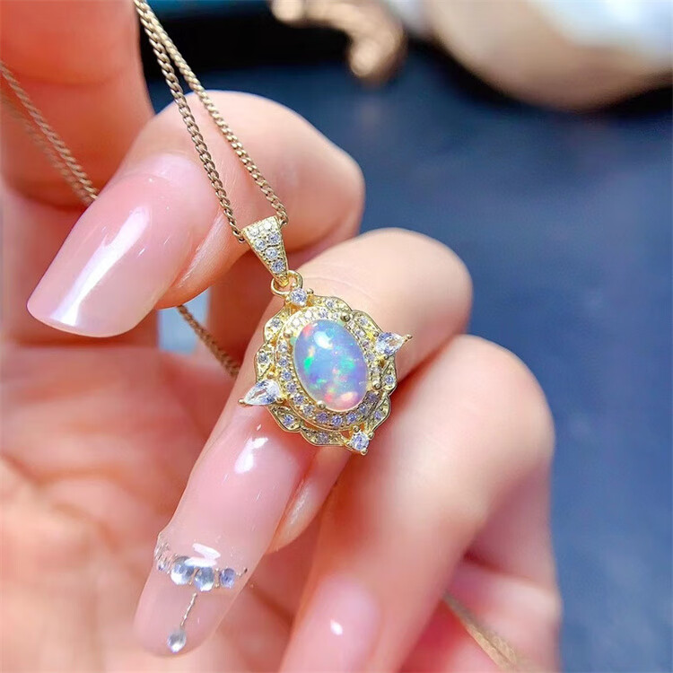 Tingbai's new natural colorful opal pendant necklace full of fire color s925 silver finely inlaid opal ring with certificate natural opal pendant white gold