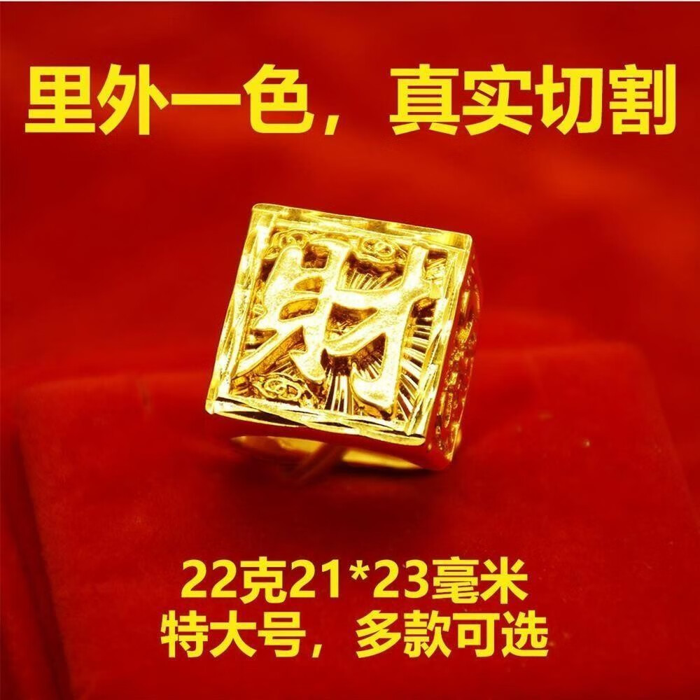 Tingbai Lao Phoenix Gold Store K gold men's ring gold sand gold ring domineering wealth dragon horse with the word "Fu" (extra large 22 grams)