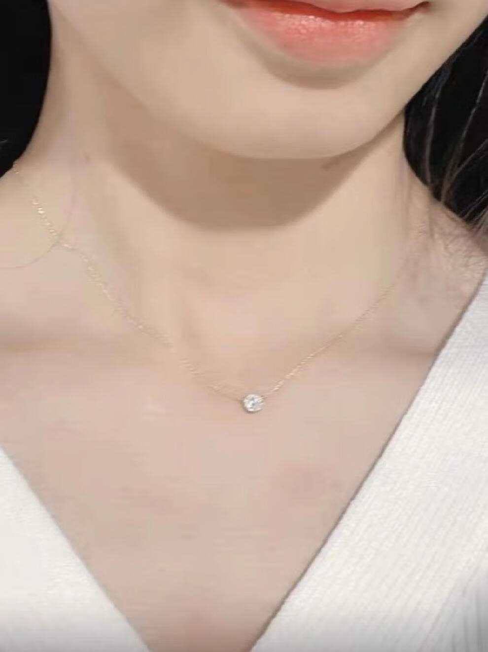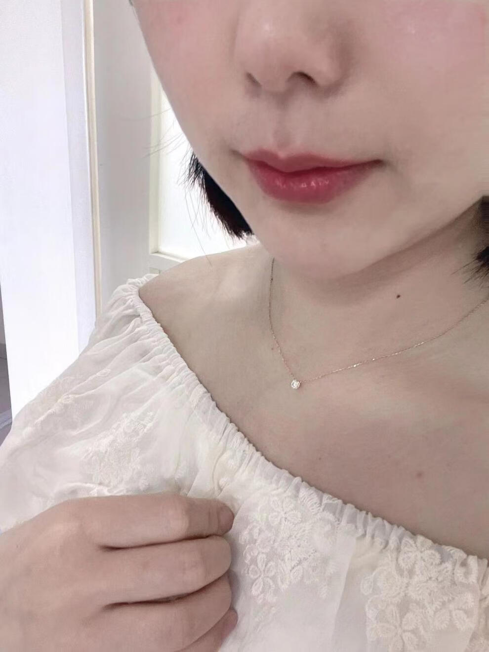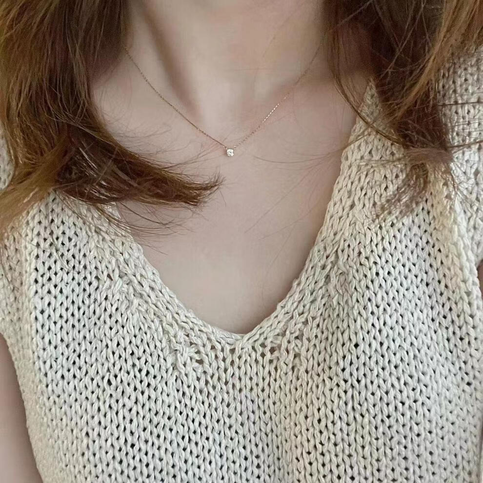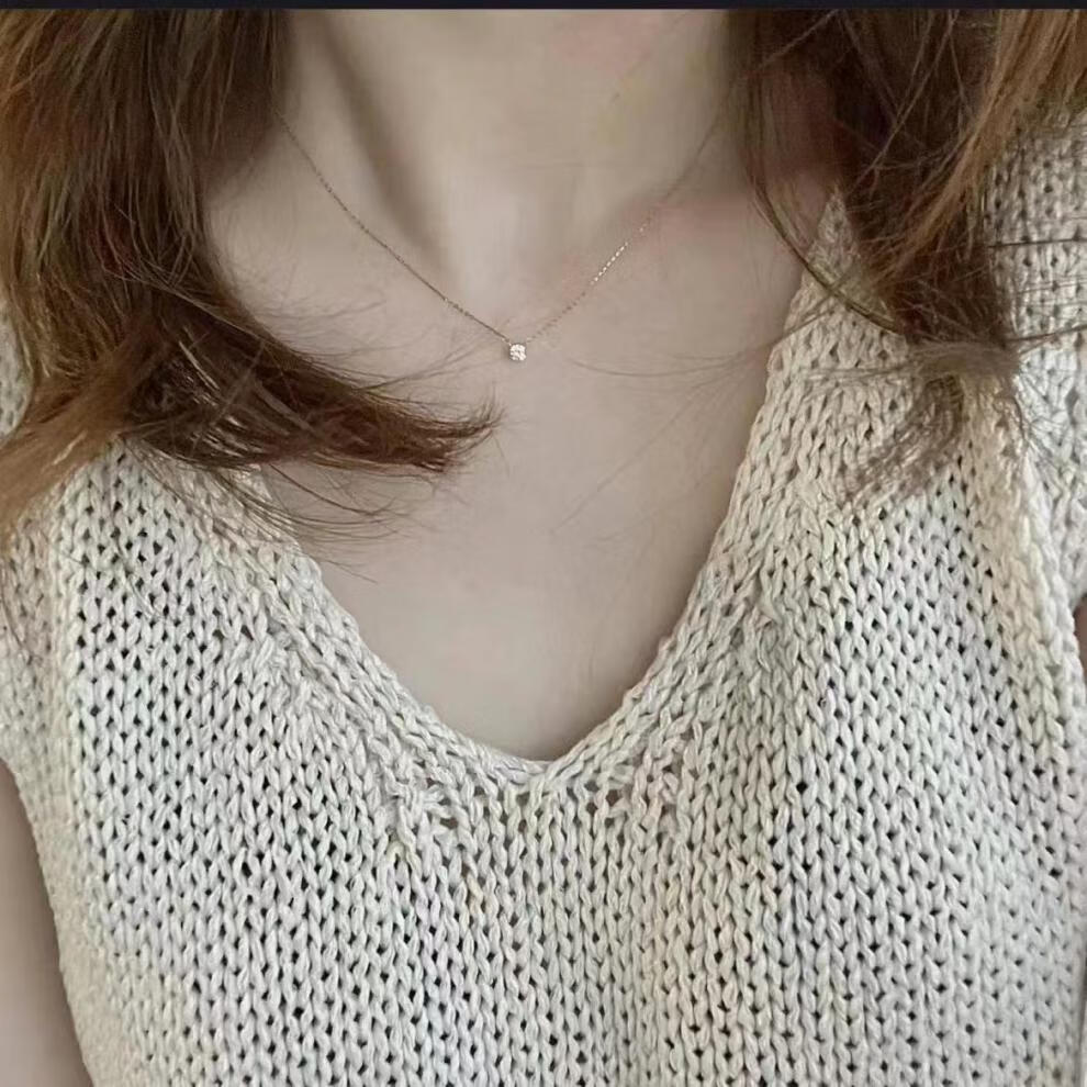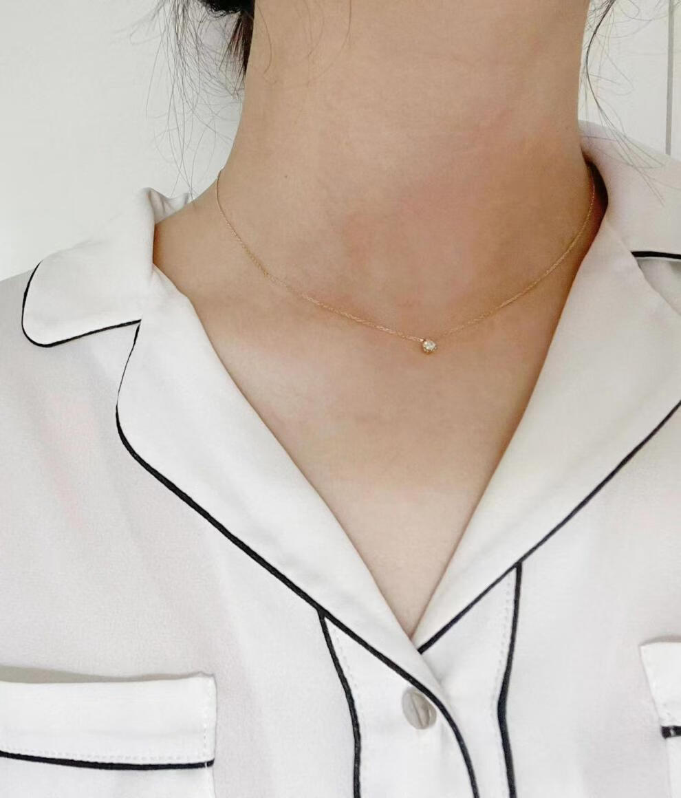 Tingbai Japanese 18k gold necklace aget women's single booger diamond clavicle chain imitation 18k gold pendant exquisite and simple clawless moissanite 20 points