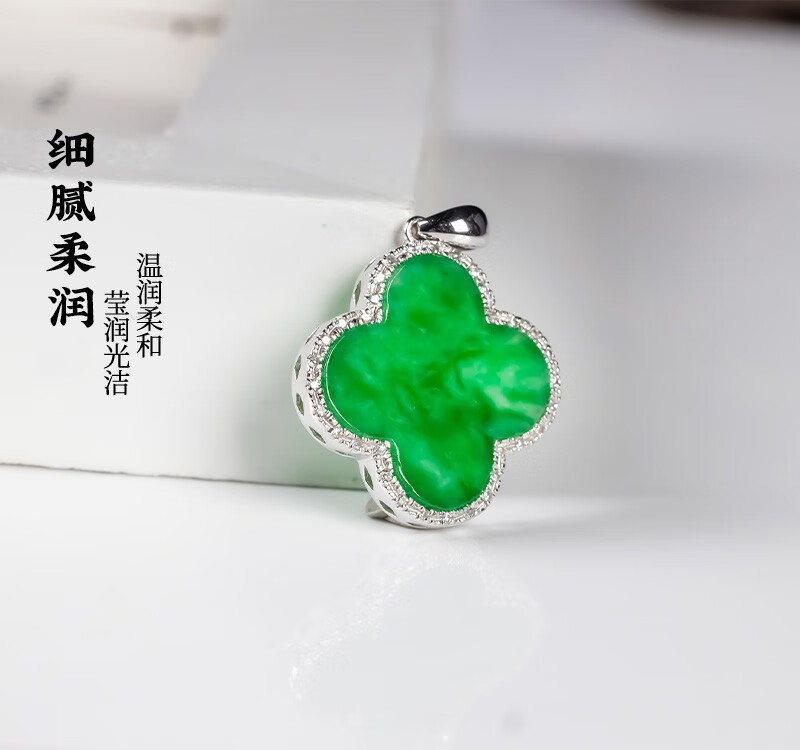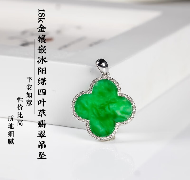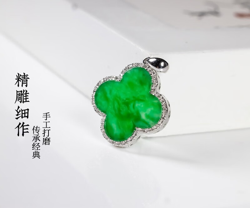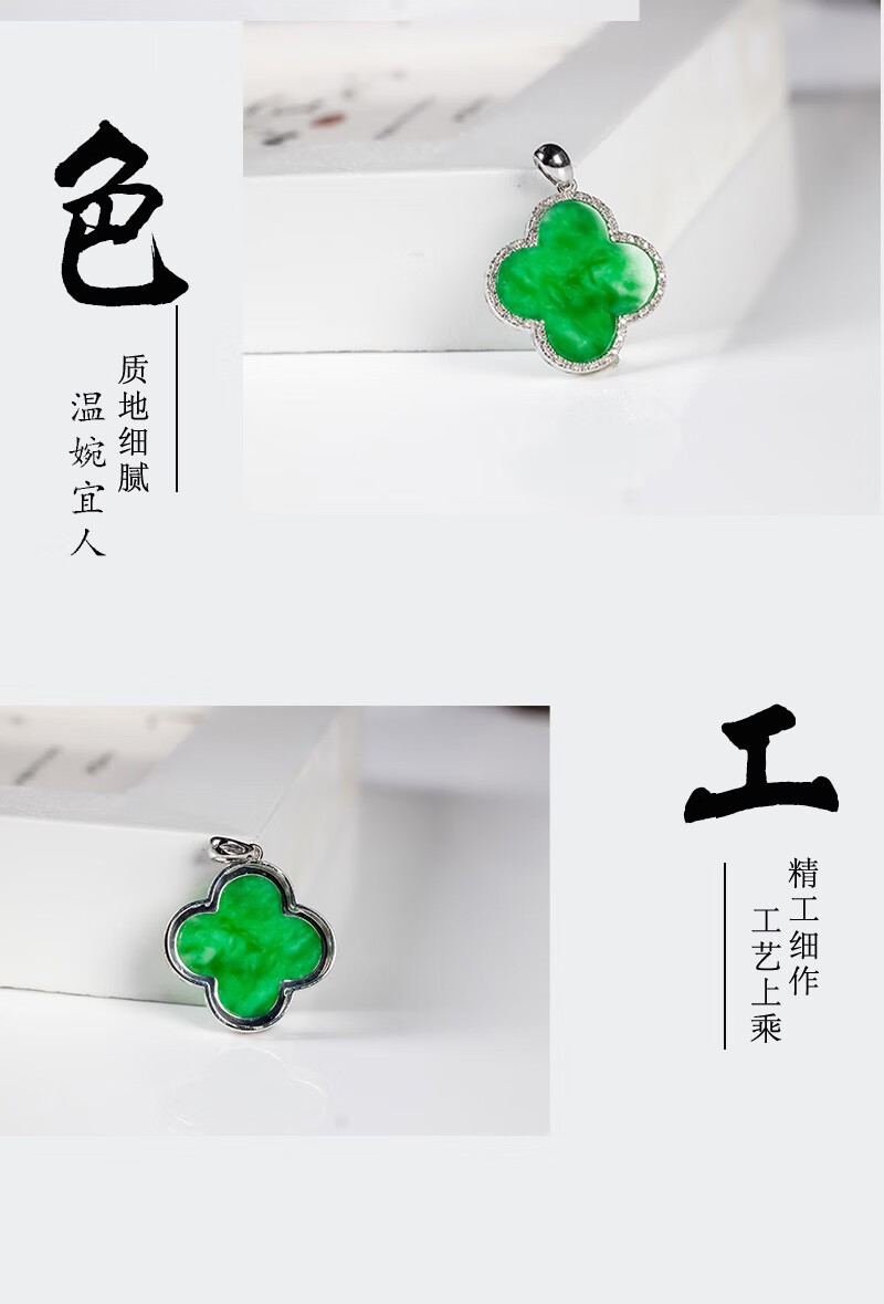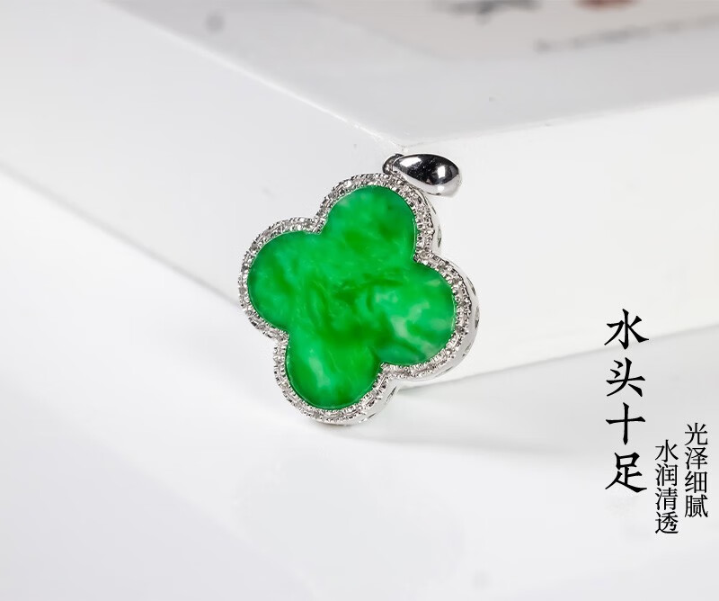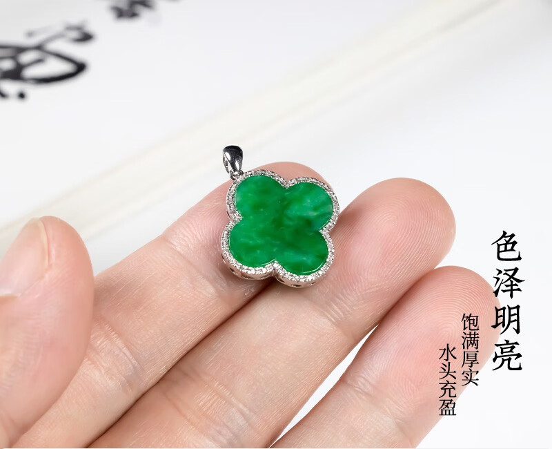 Tingbai Burmese natural jade A-grade sun green four-leaf clover jade pendant 18K gold old pit full green jade pendant for men and women