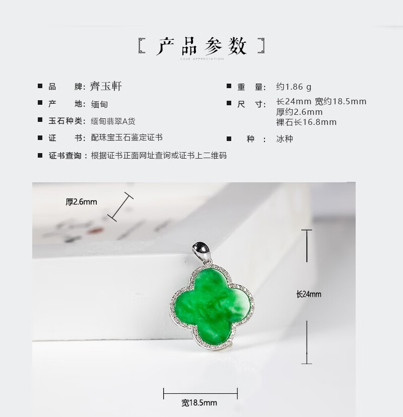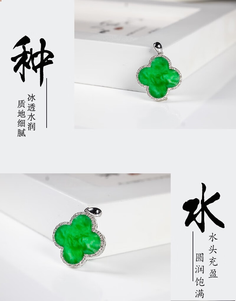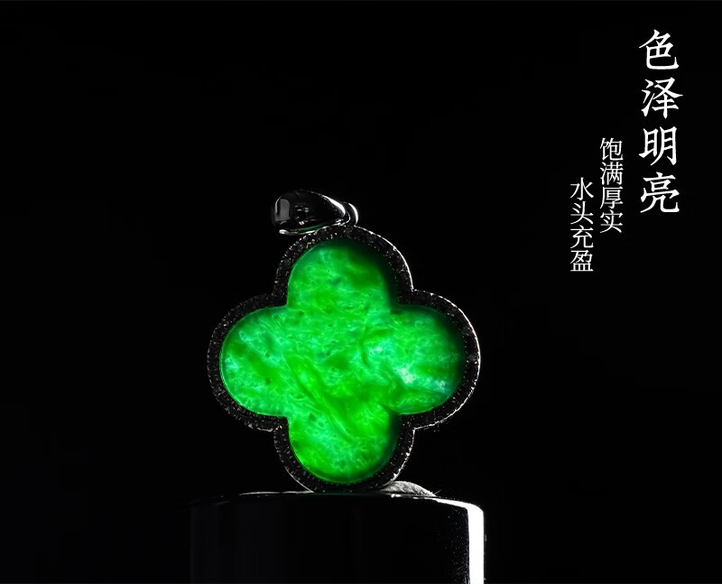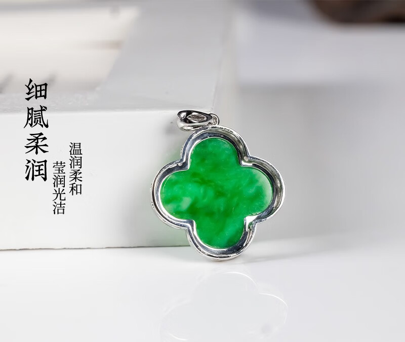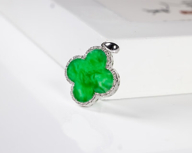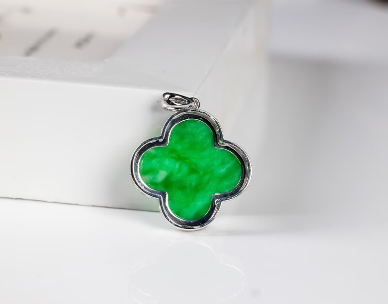 Tingbai Burmese natural jade A-grade sun green four-leaf clover jade pendant 18K gold old pit full green jade pendant for men and women