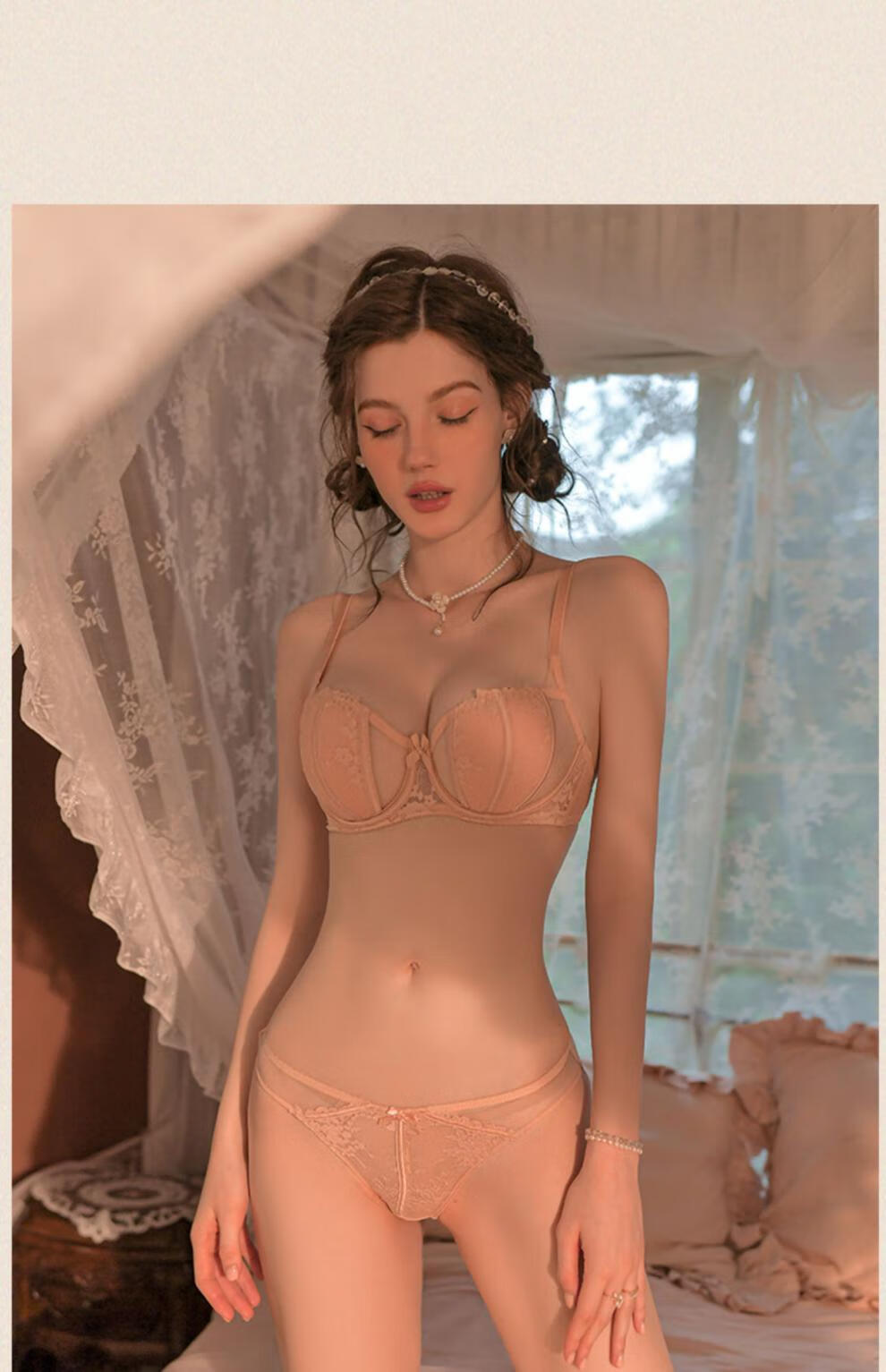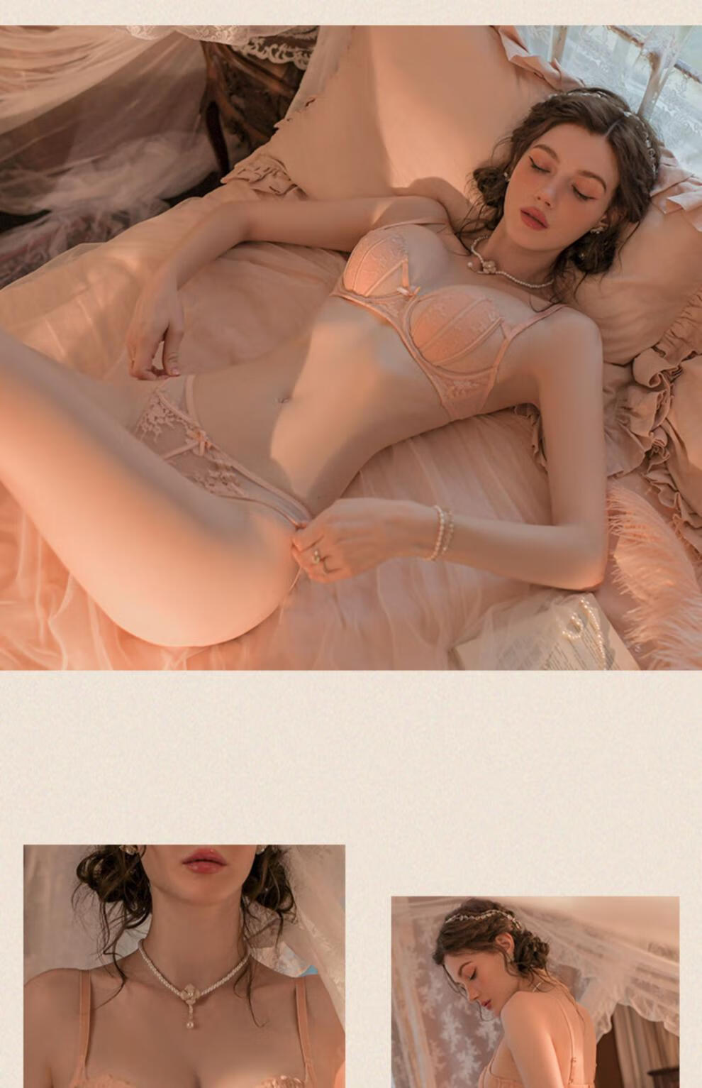 Adore Autumn and Summer French Sexy Sweet Underwear Women's Small Breast Push-Up Thin Beautiful Back Bra Seamless Lace Wireless Bra Set Sakura Pink (Bra + Panties) Set 75/34