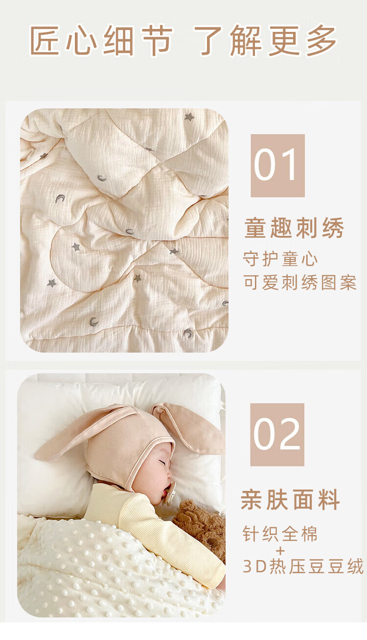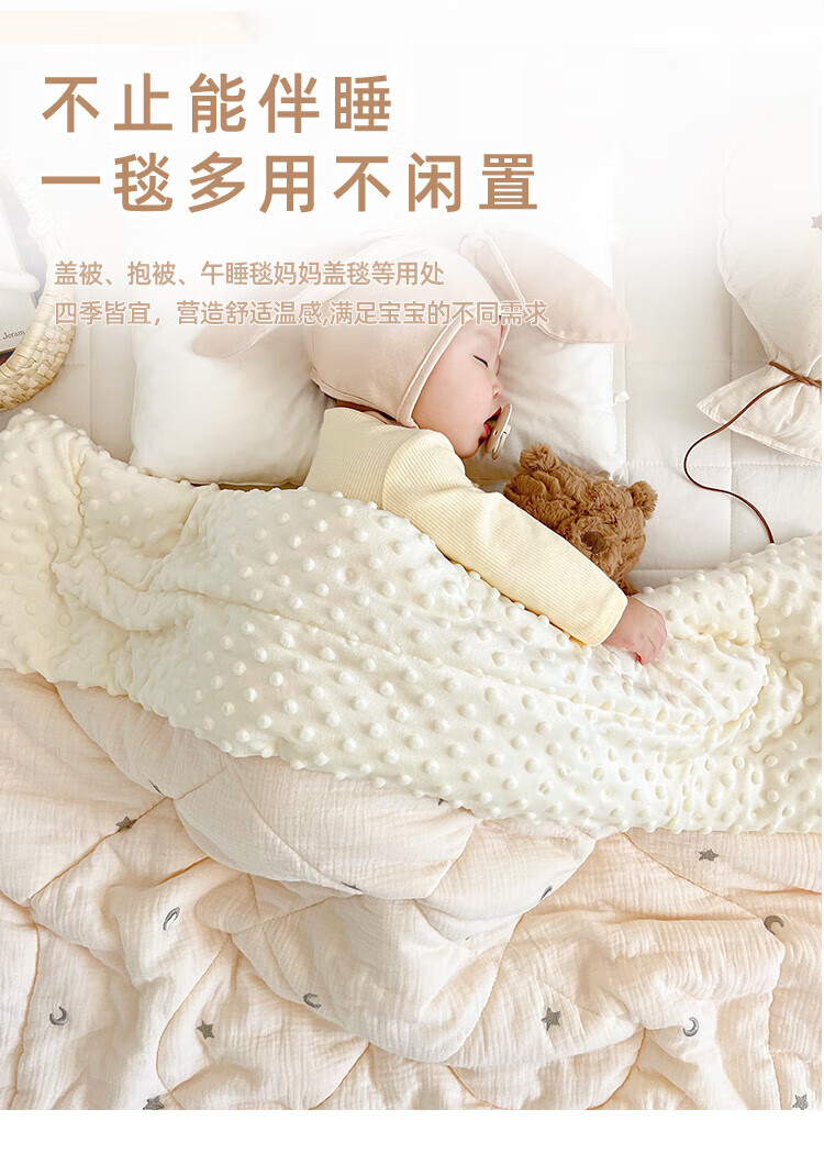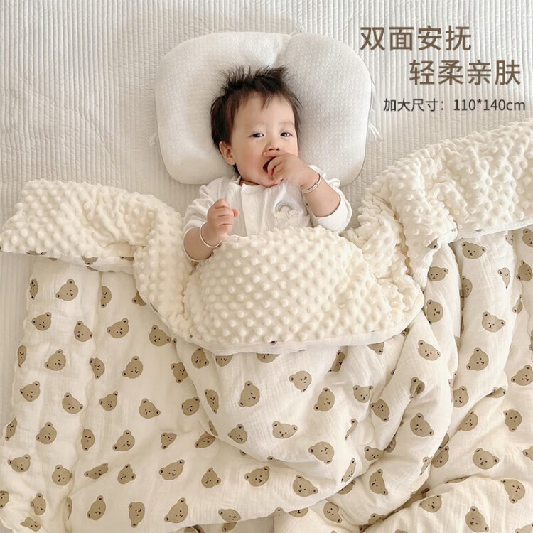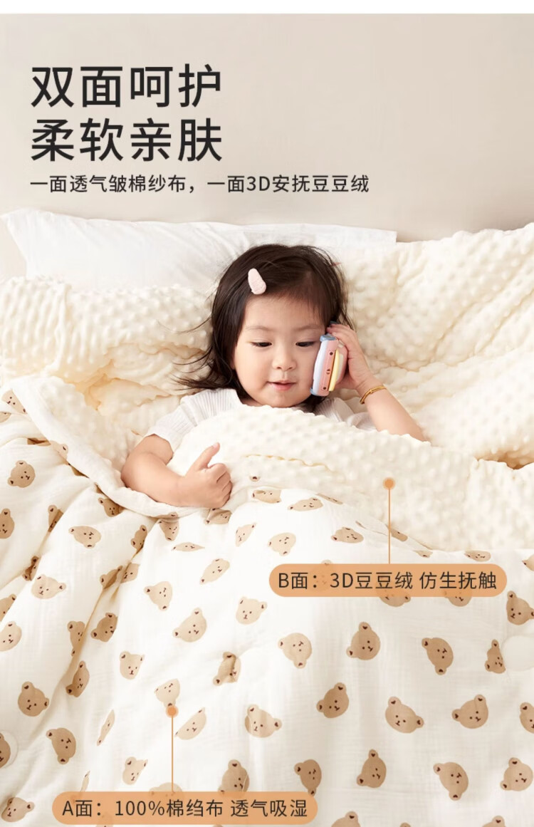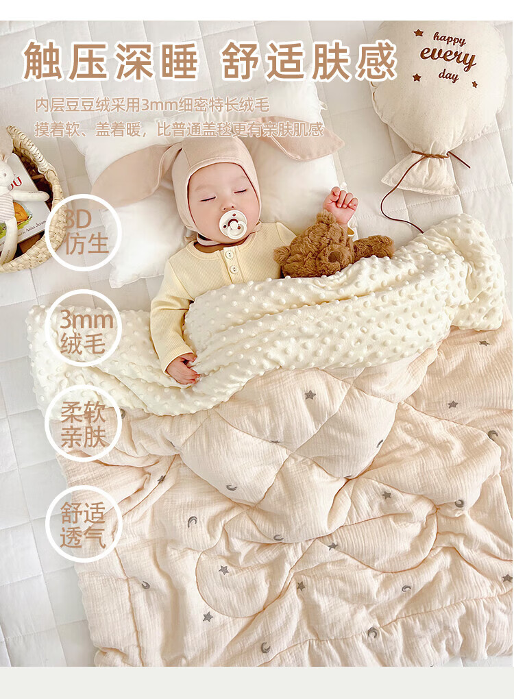 Hao'e Baby Quilt Autumn and Winter Newborn Baby Spring Kindergarten Lunch Break Sleeping Bean Velvet Cover Blanket Thin Cotton Quilt Thick Cotton Style Best Suitable for Autumn and Winter *110*140cm
