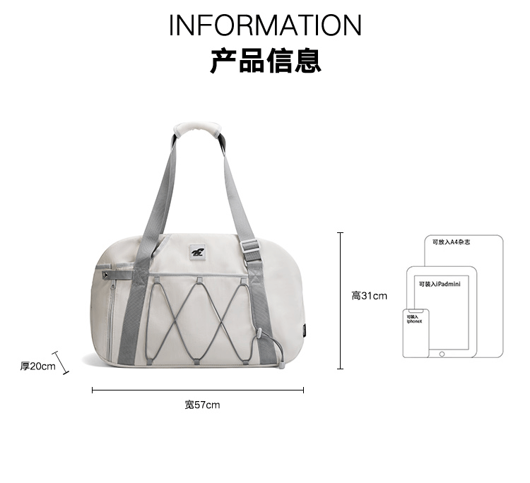 VAOPER Feed Crossbody Bag Pilates Tennis Bag Women's Large Capacity Short Distance Travel Bag Dry and Wet Separated Fitness Shoulder Bag Men Gray