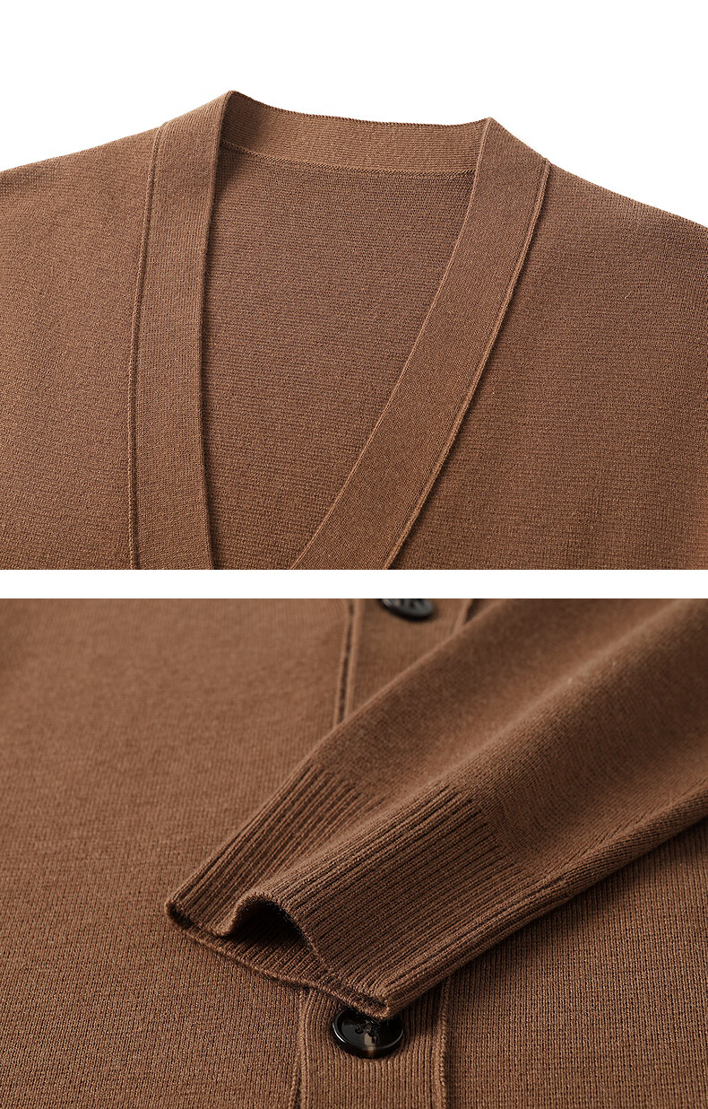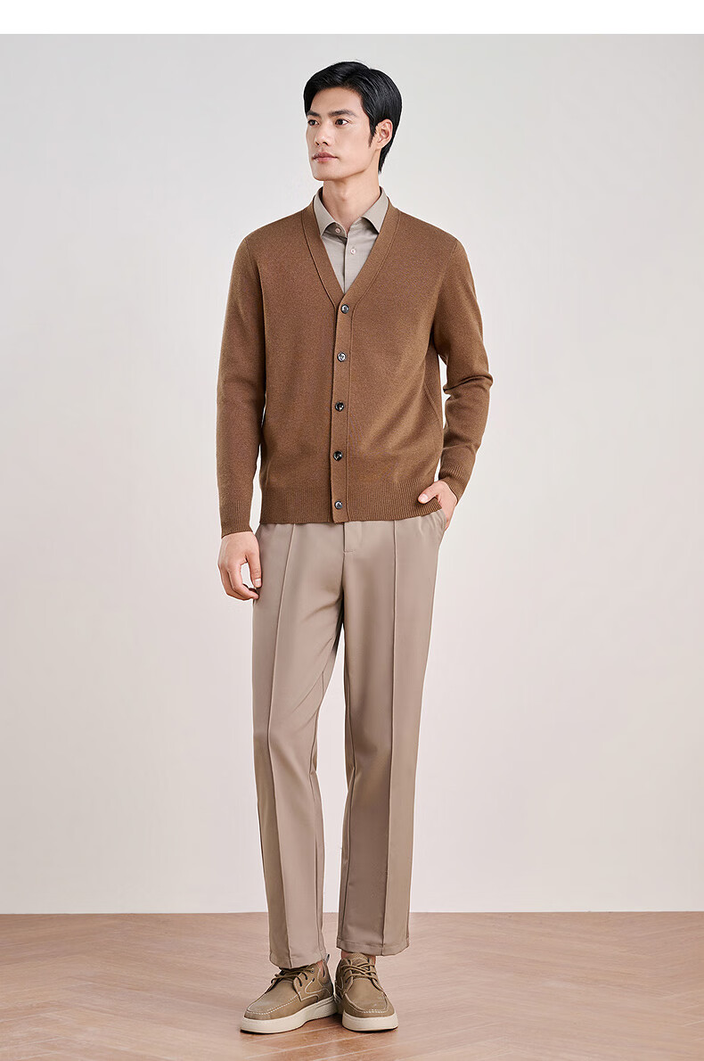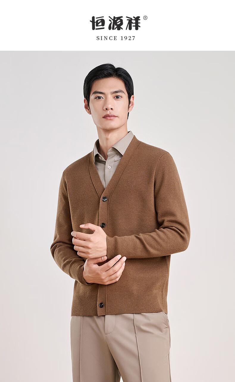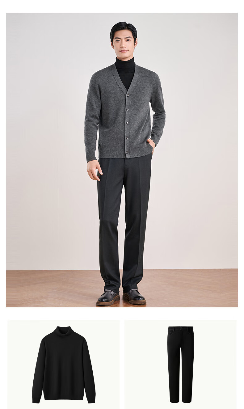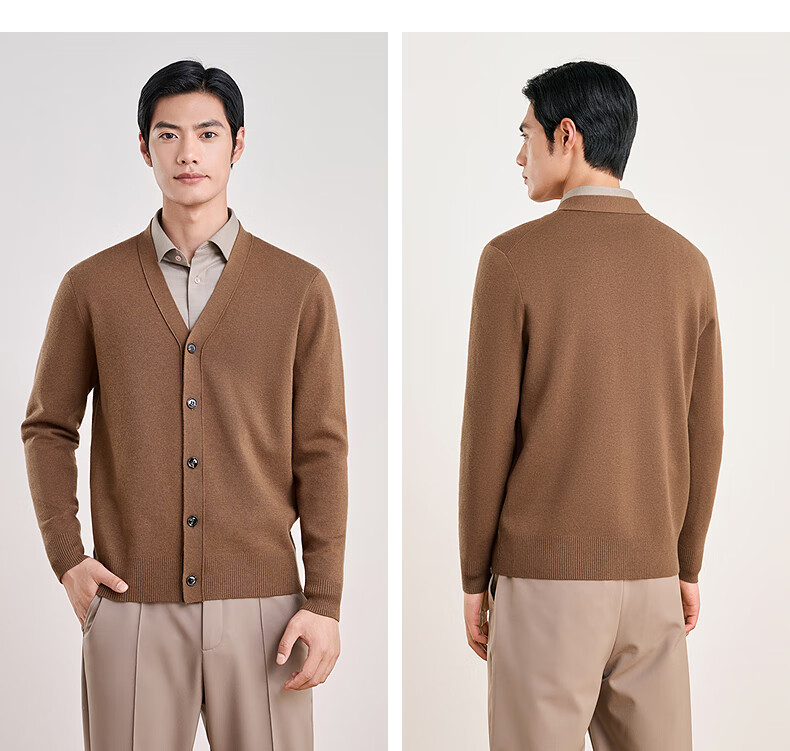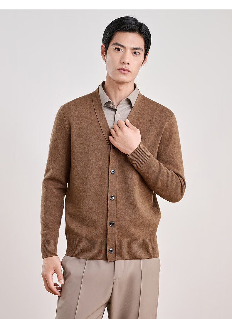 Hengyuanxiang Basulan worsted wool sweater men's machine washable sweater solid color casual V-neck sweater cardigan black navy L /175/92A