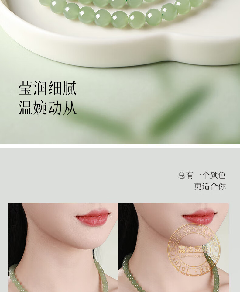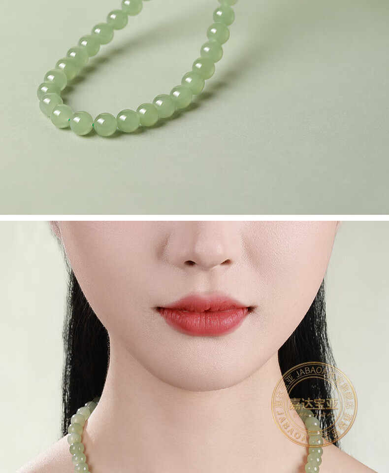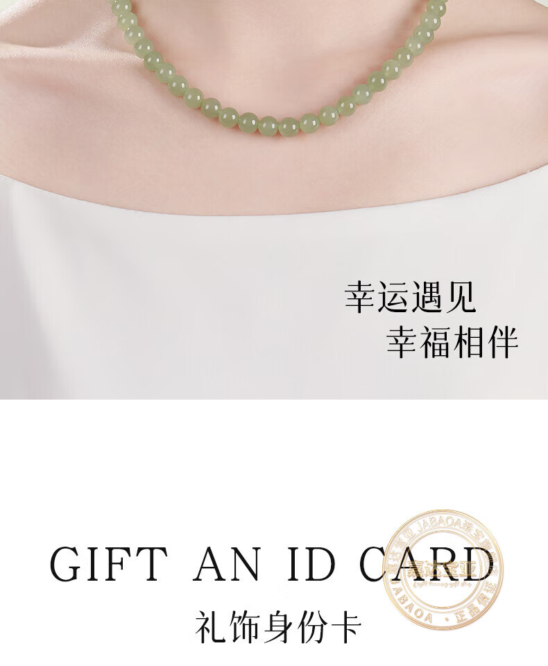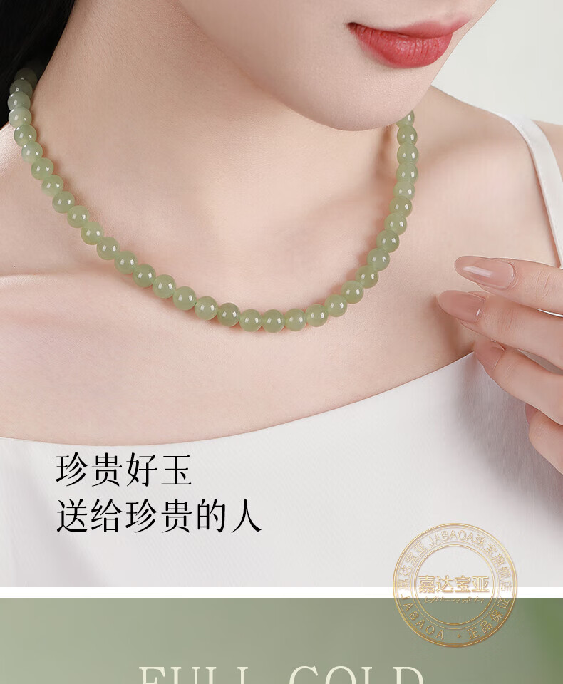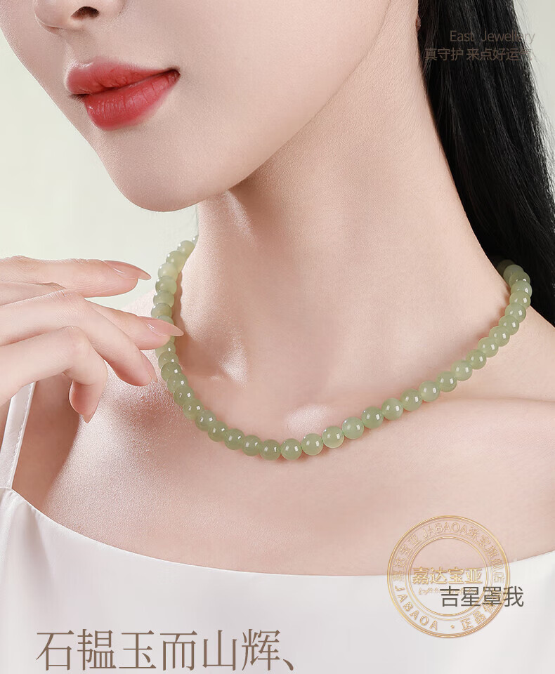 Jiada Baoya Natural Hetian Jade Necklace for Women Qingshui Jade Loose Beads New Chinese Style National Style Clavicle Chain for Mom's Birthday Gift Qian Bingqing 8MM