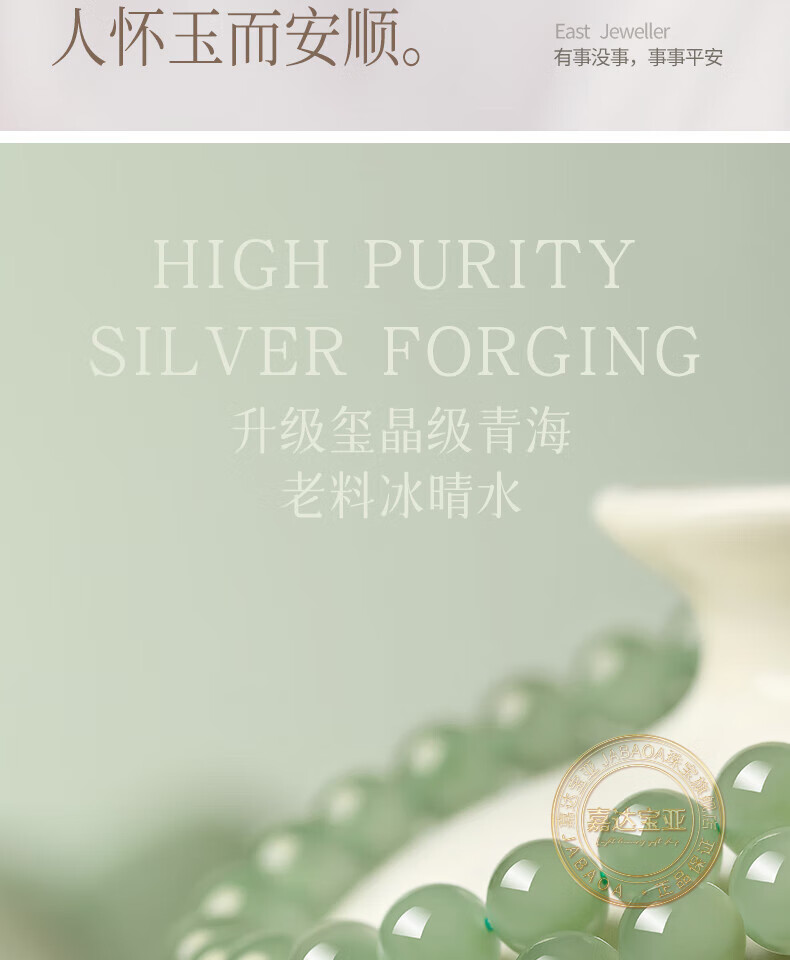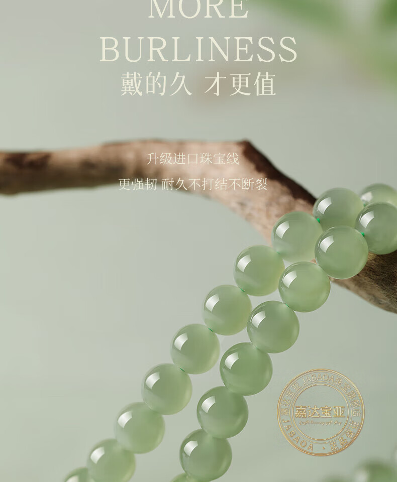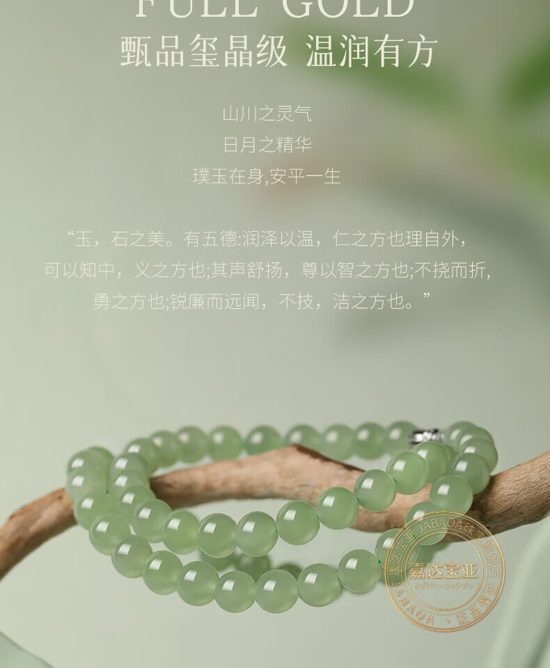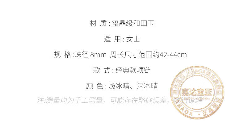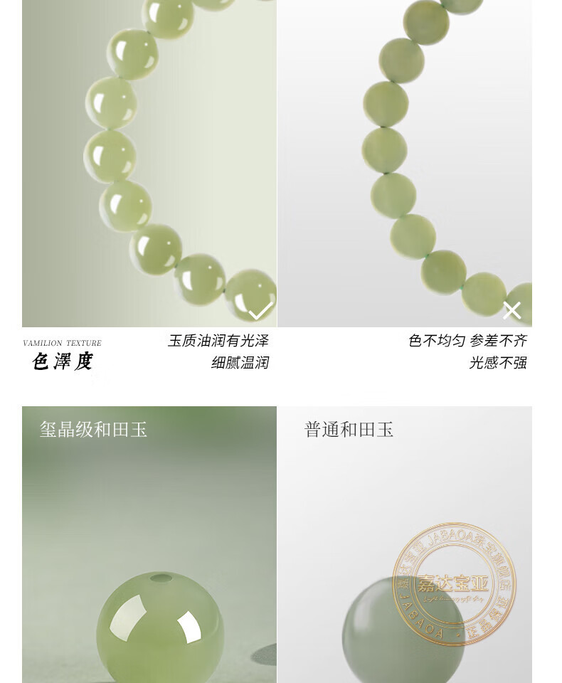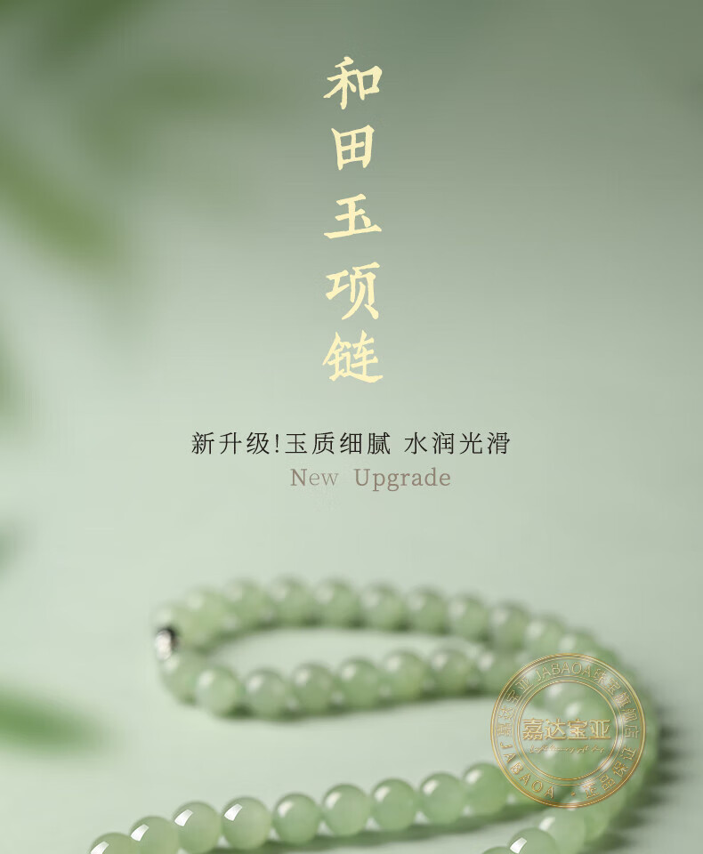 Jiada Baoya Natural Hetian Jade Necklace for Women Qingshui Jade Loose Beads New Chinese Style National Style Clavicle Chain for Mom's Birthday Gift Qian Bingqing 8MM