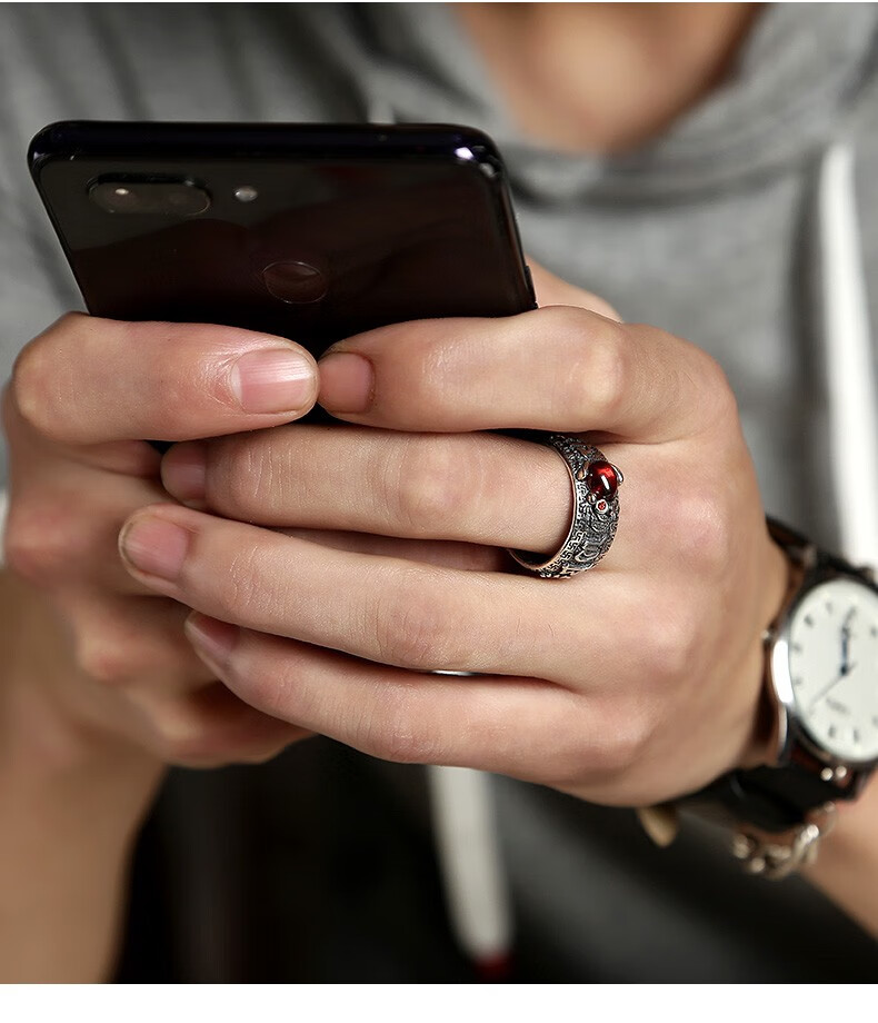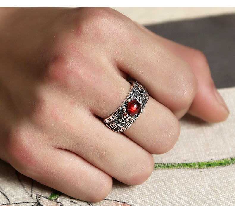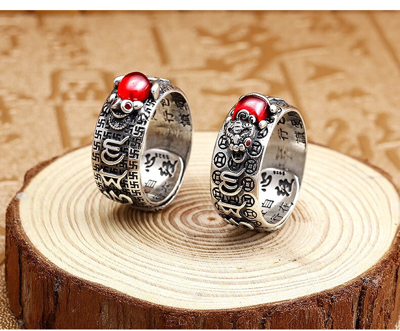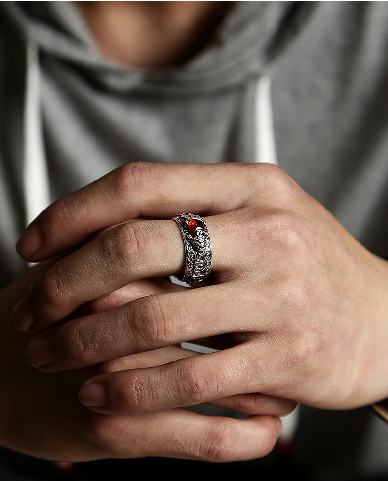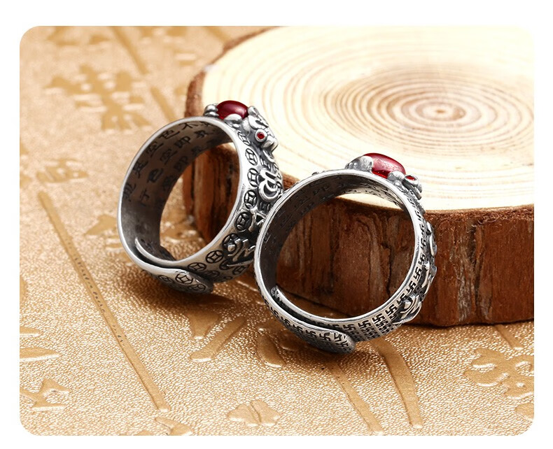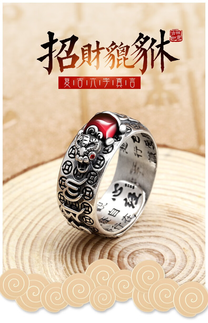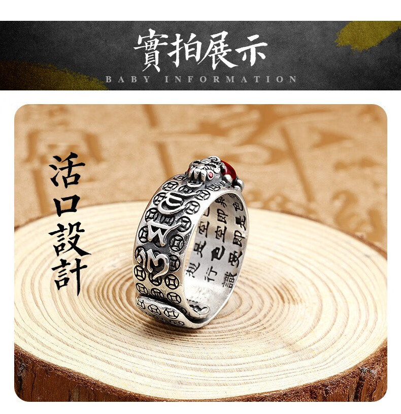 Huobei Fuyu pure silver 990 gold toad Pixiu ring men's six-character mantra retro birthday gift pure silver gold toad style