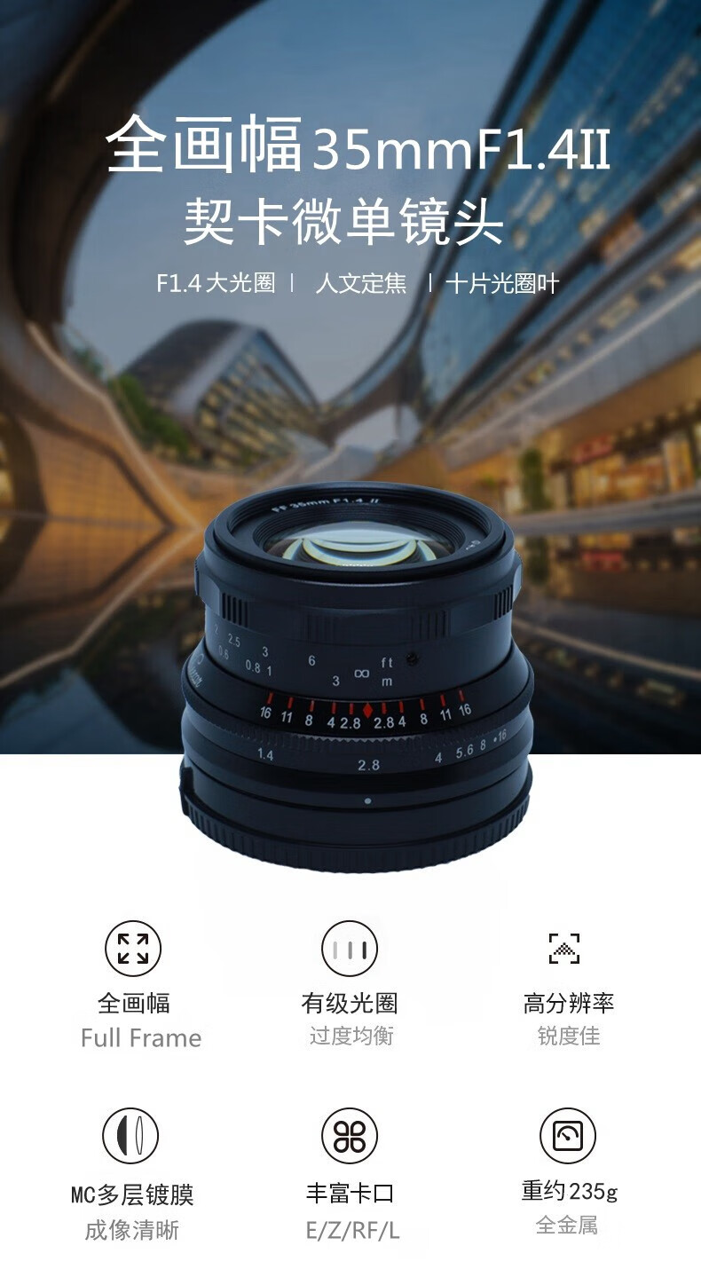 Cheka 35mmF1.4 second-generation full-frame fixed-focus lens for humanistic street sweeping night scenes and other themes Sony E-mount black