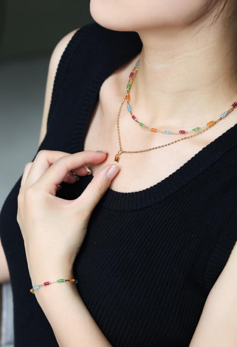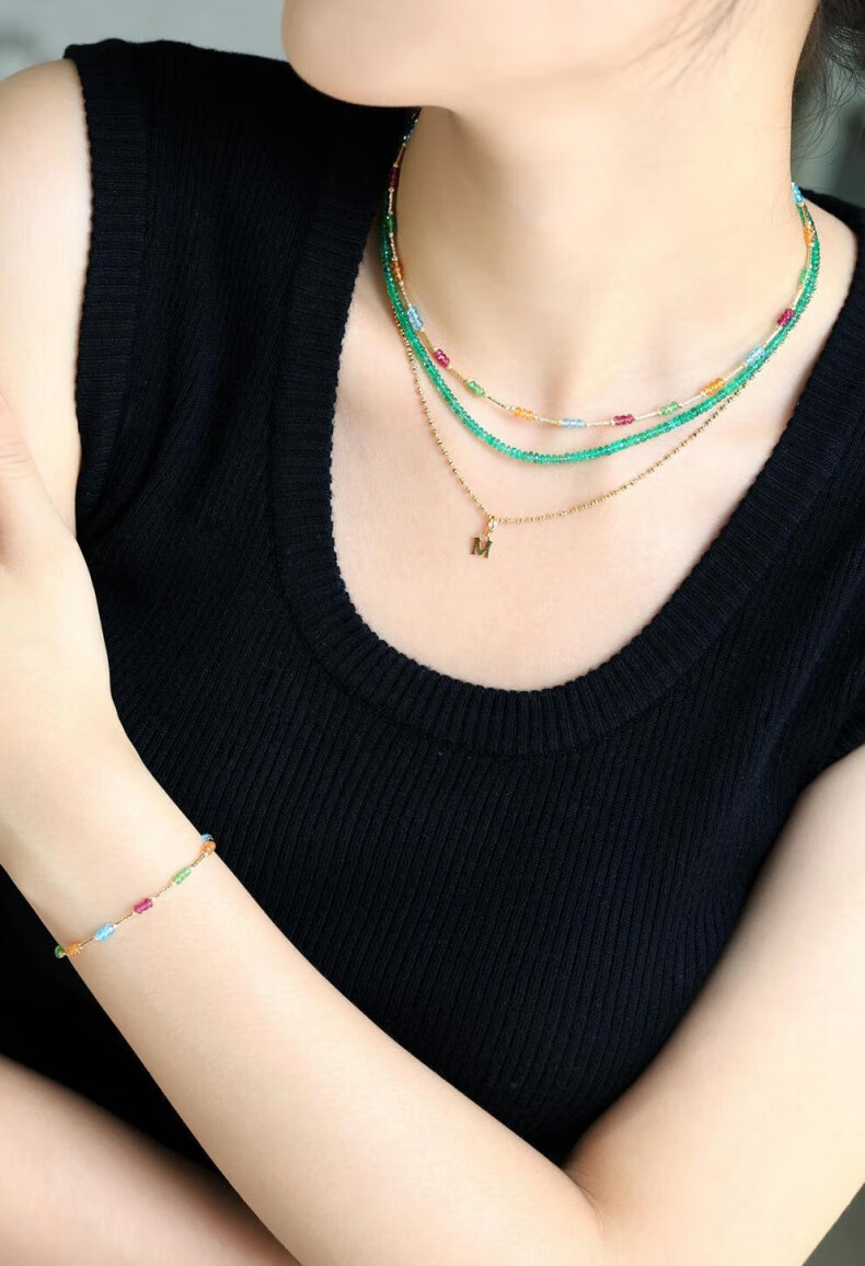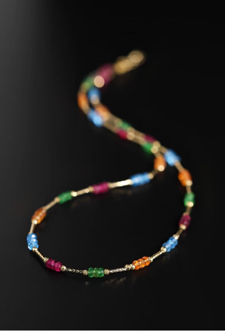 COASZE Gypsophila tourmaline garnet topaz multi-treasure necklace 18K gold clavicle chain for girlfriend and wife multi-treasure necklace 40cm