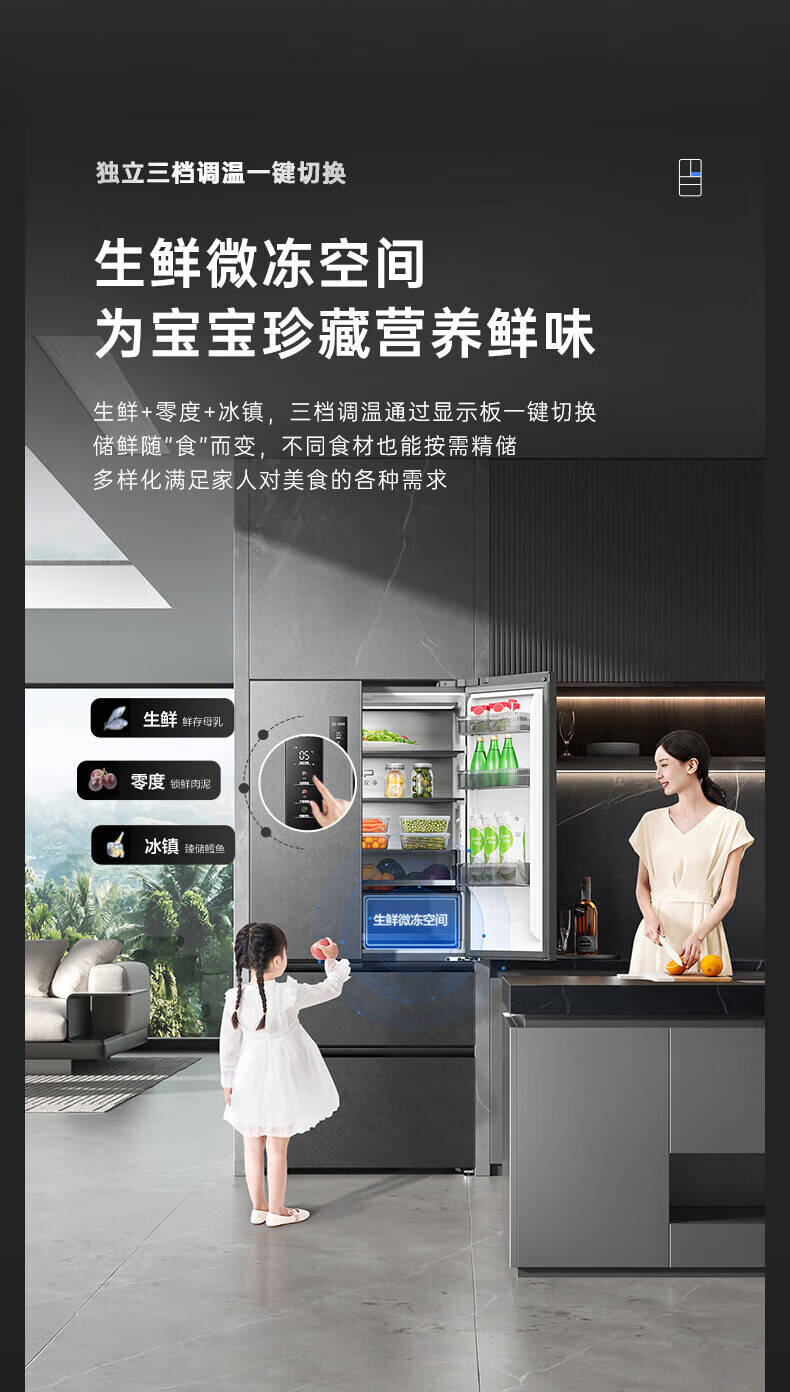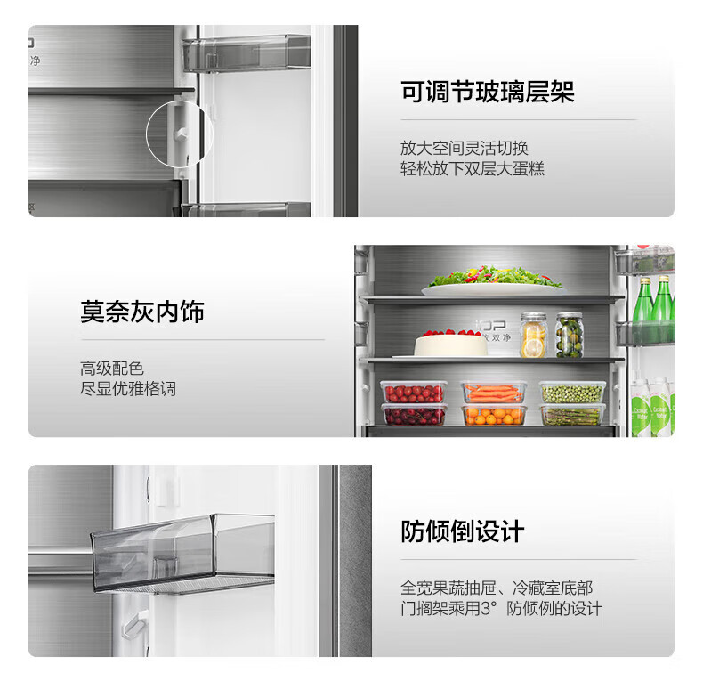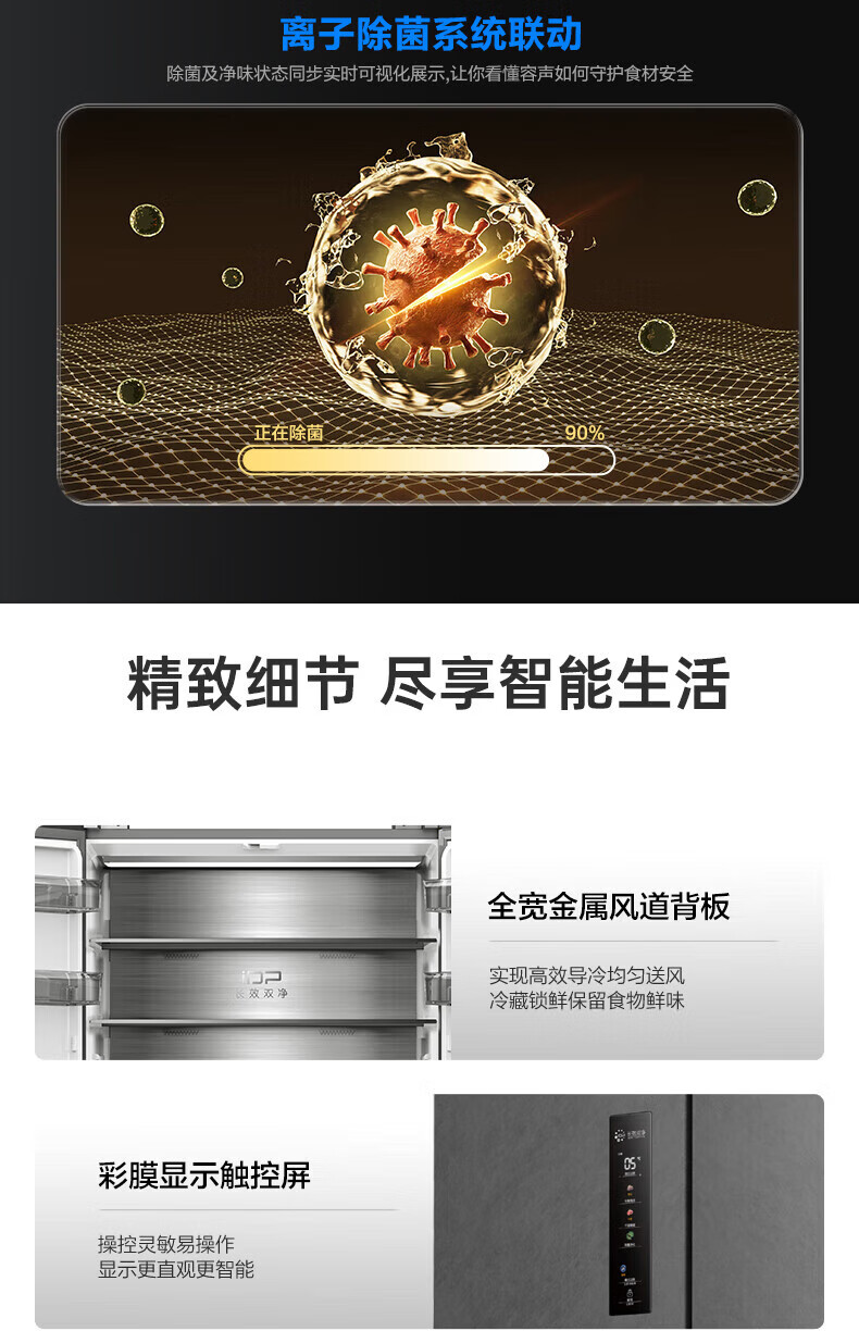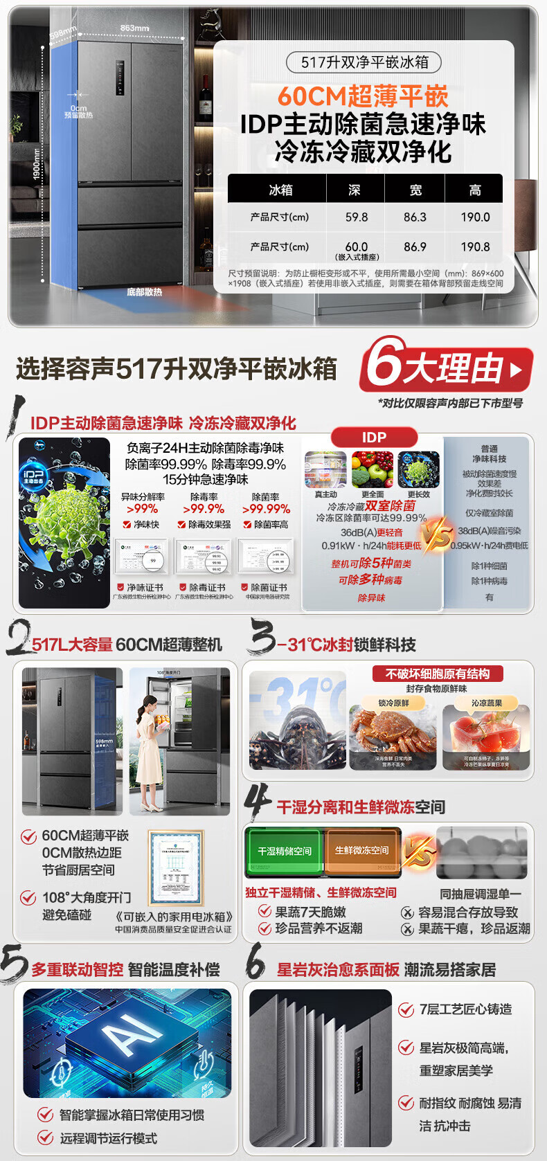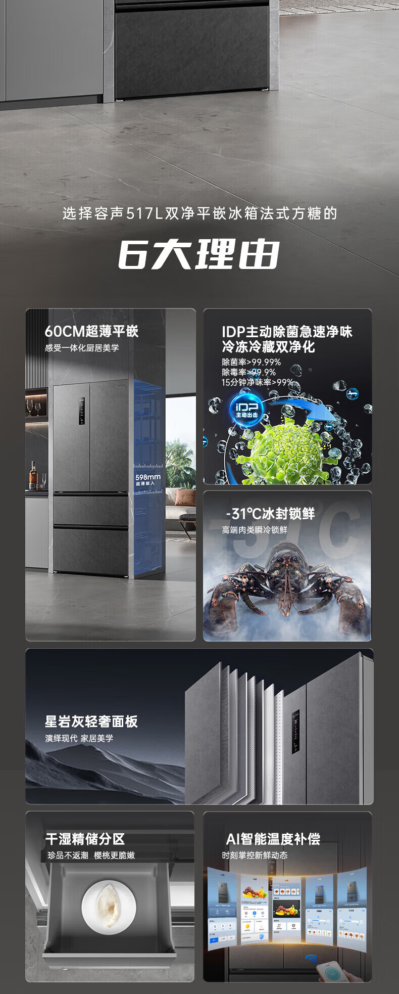 Rongsheng 517 liter double purified French multi-door four-door household refrigerator IDP active sterilization ultra-thin zero embedded first-level energy efficiency air-cooled frost-free trade-in national subsidy IDP double purified BCD-517WD2MPQLA Star Rock Gray